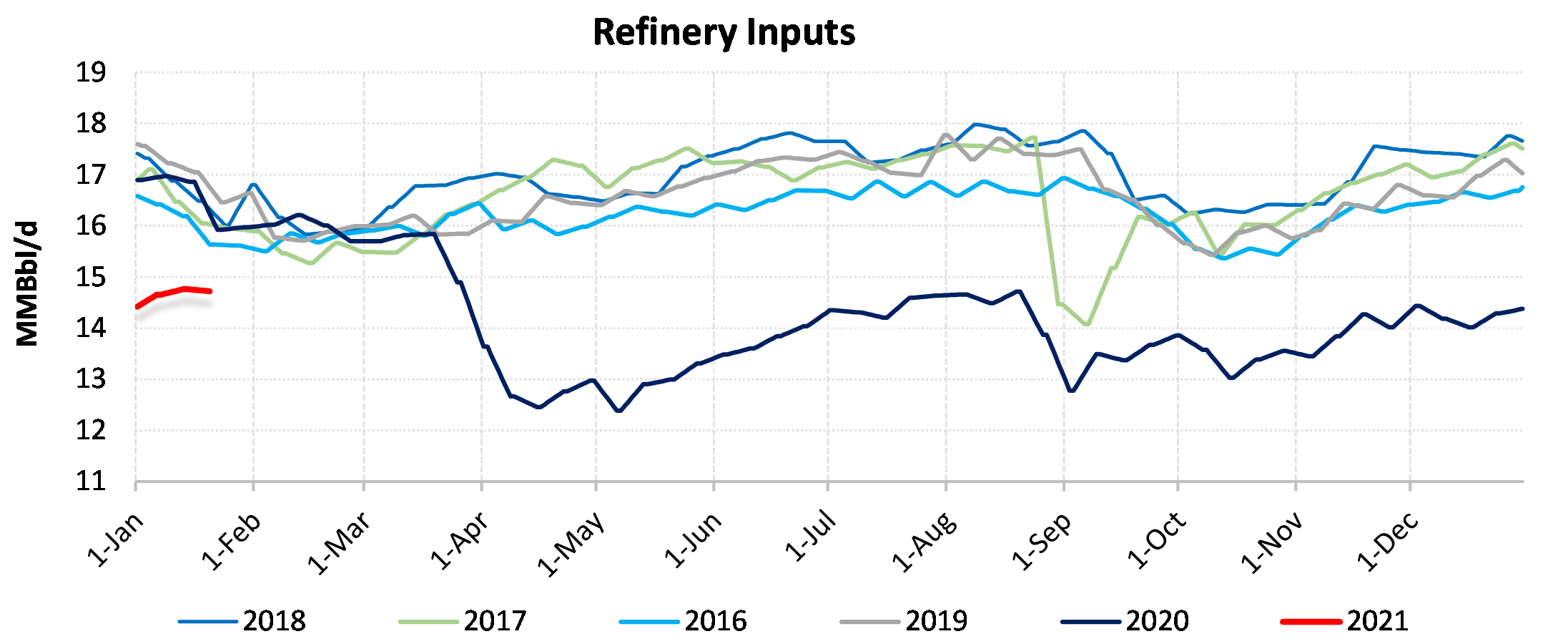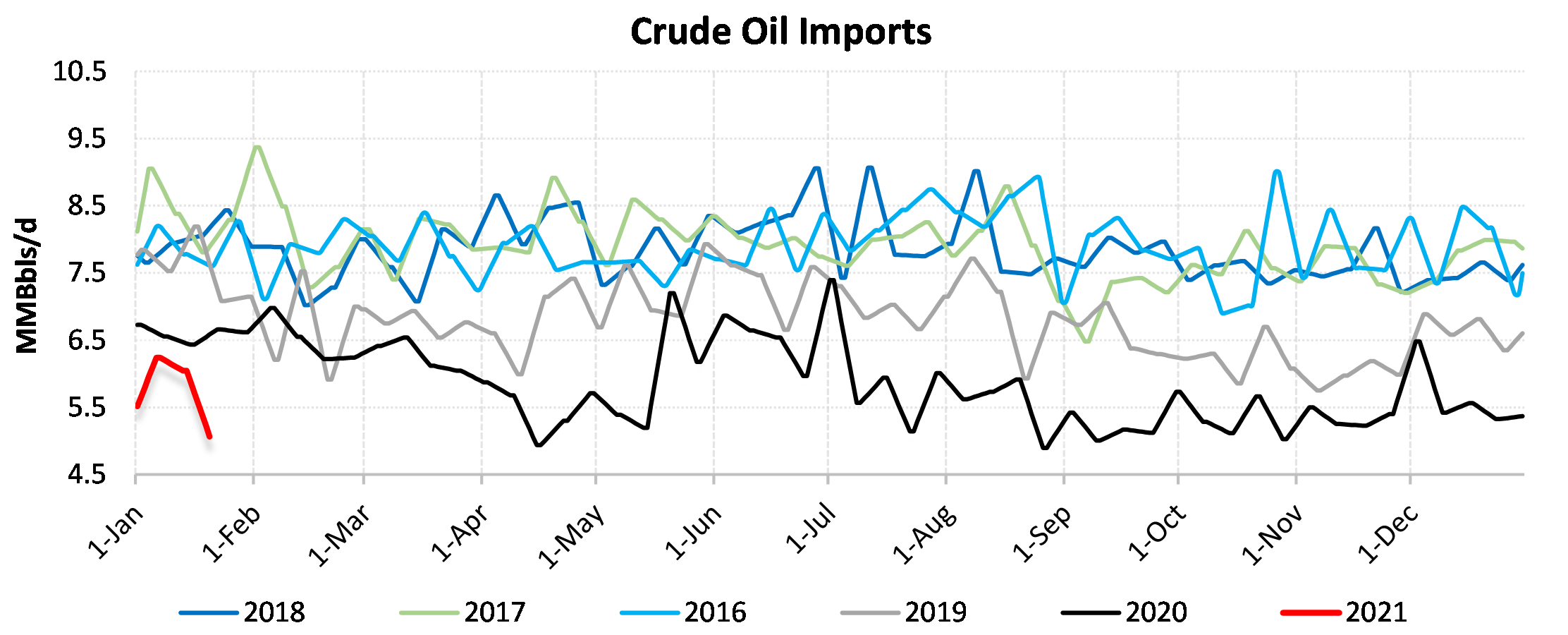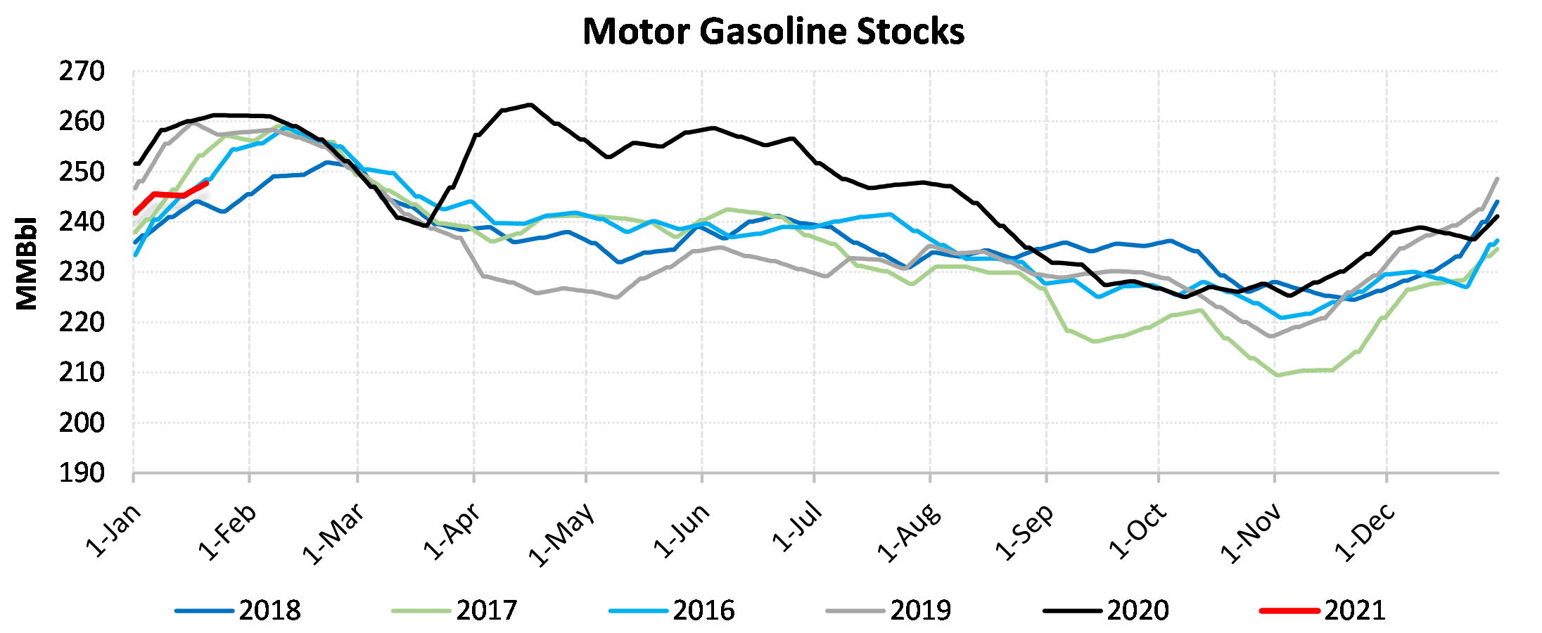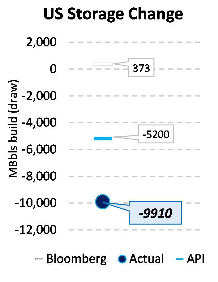 EIA reported a draw of -9910 MBbls in U.S. crude-oil inventories for the week ending 1/22/2021. This was larger than the average estimate of 373 MBbls as reported by Bloomberg.