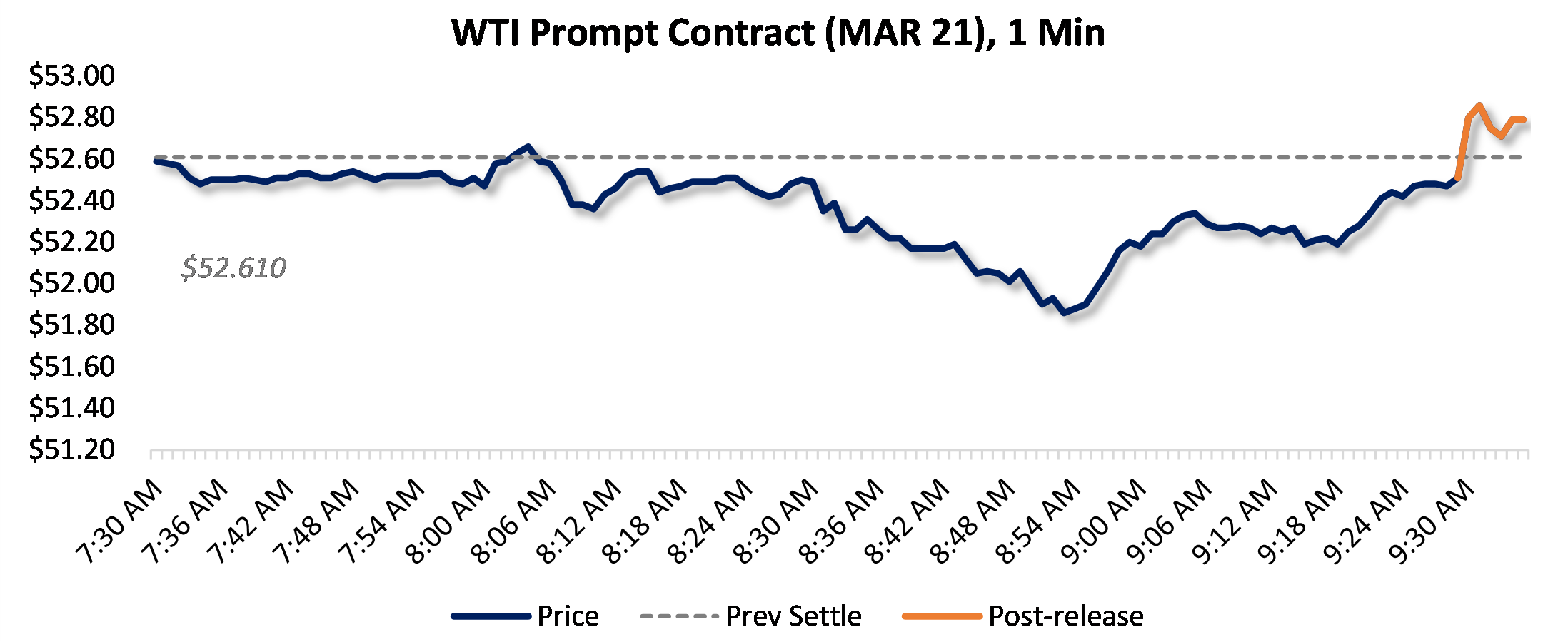 Prices were up five minutes following the announcement, to $52.79, from $52.51 just before 9:30am.