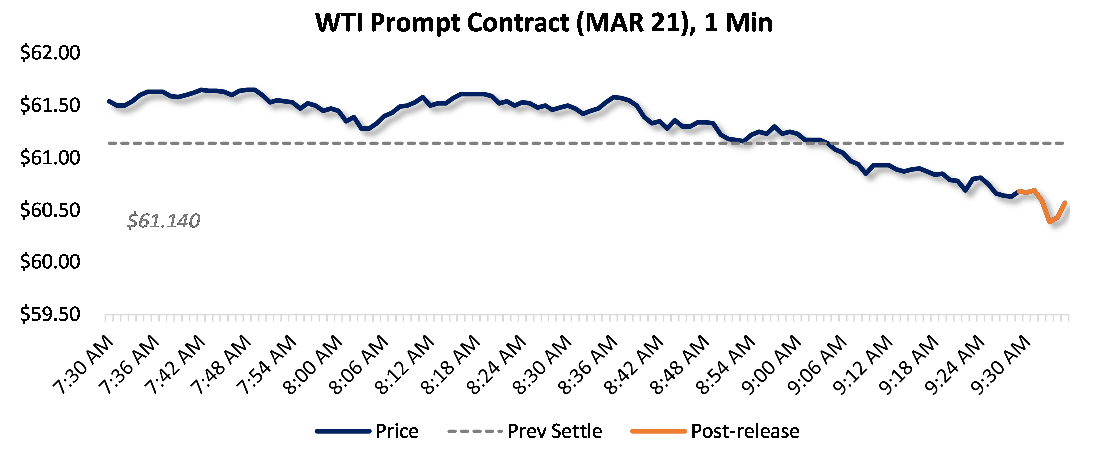 Prices were down five minutes following the announcement, to $60.57, from $60.68 just before 9:30am.