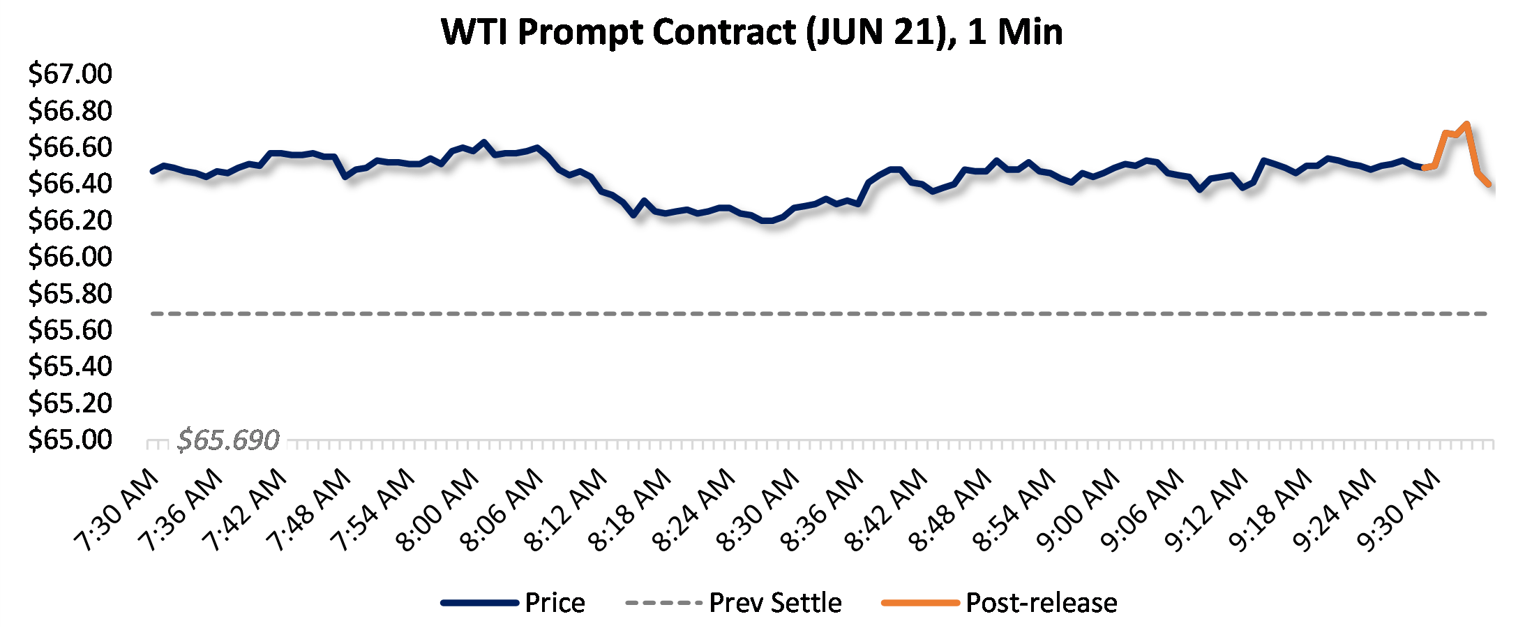 Prices were down five minutes following the announcement, to $66.40, from $66.49 just before 9:30am.
