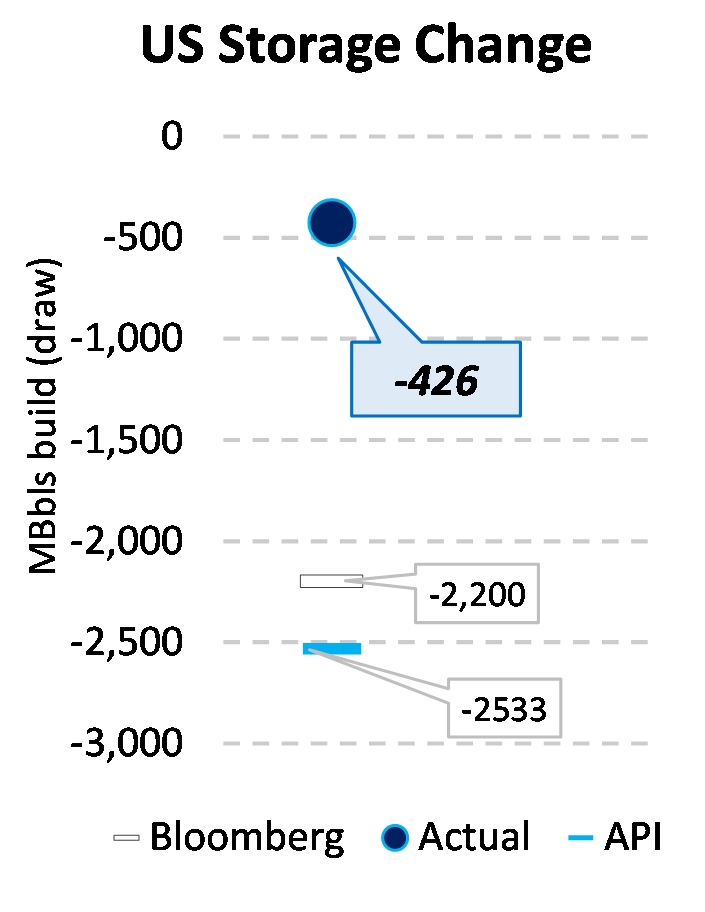 EIA reported a draw of -426 MBbls in U.S. crude-oil inventories for the week ending 5/7/2021. This was smaller than the average estimate of -2200 MBbls as reported by Bloomberg.