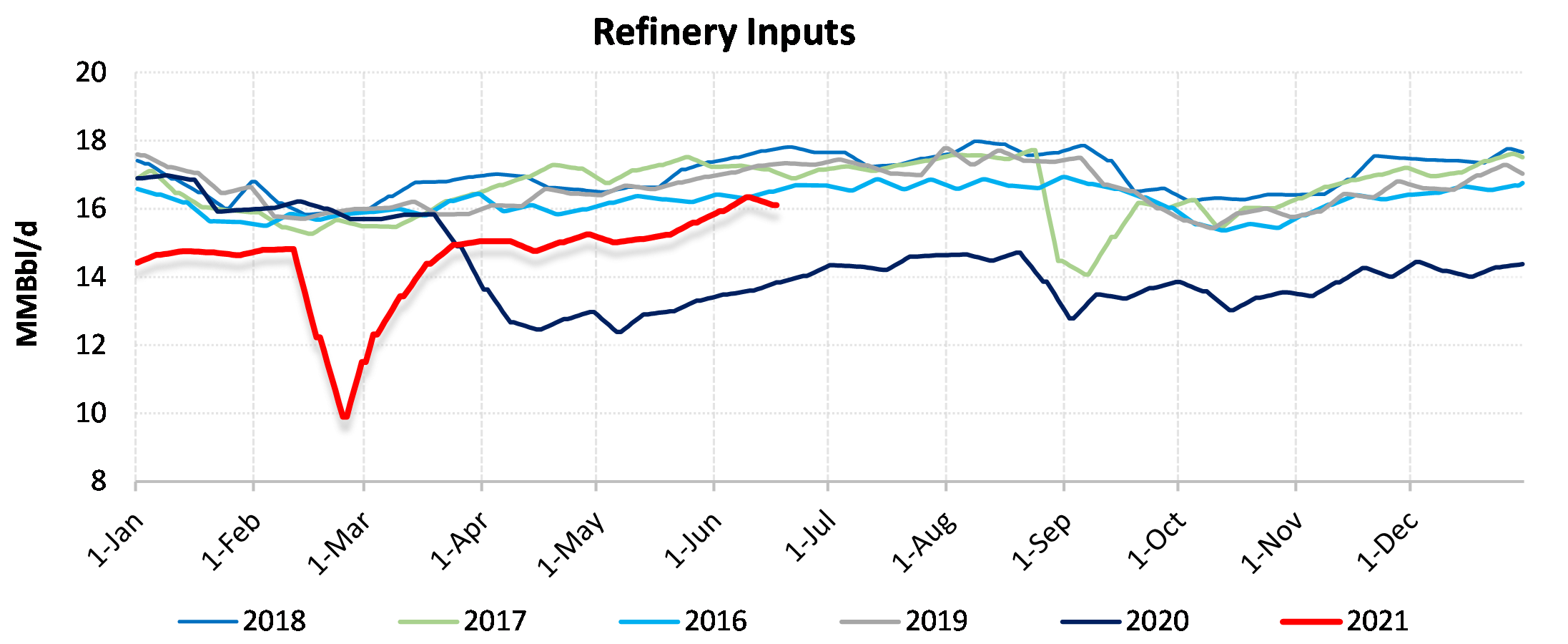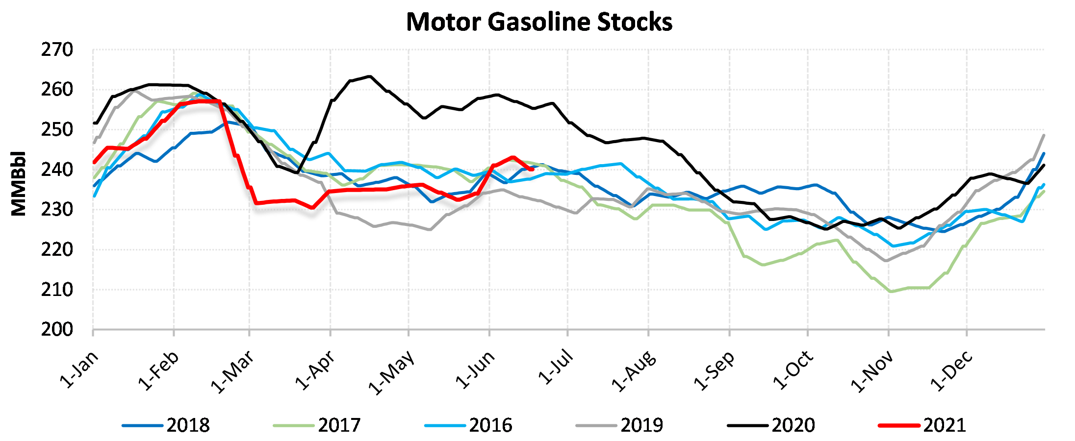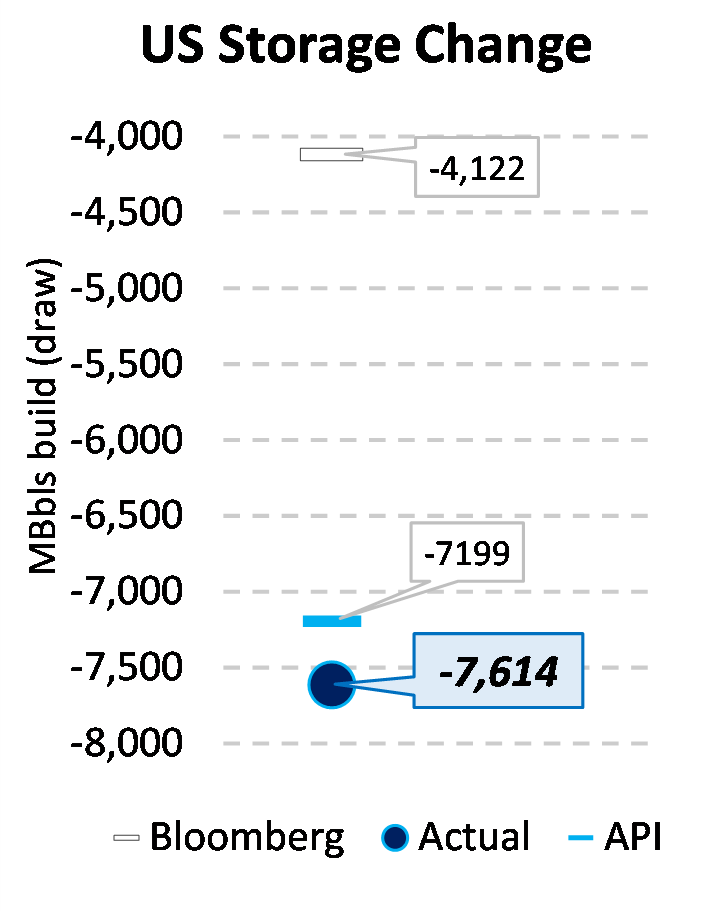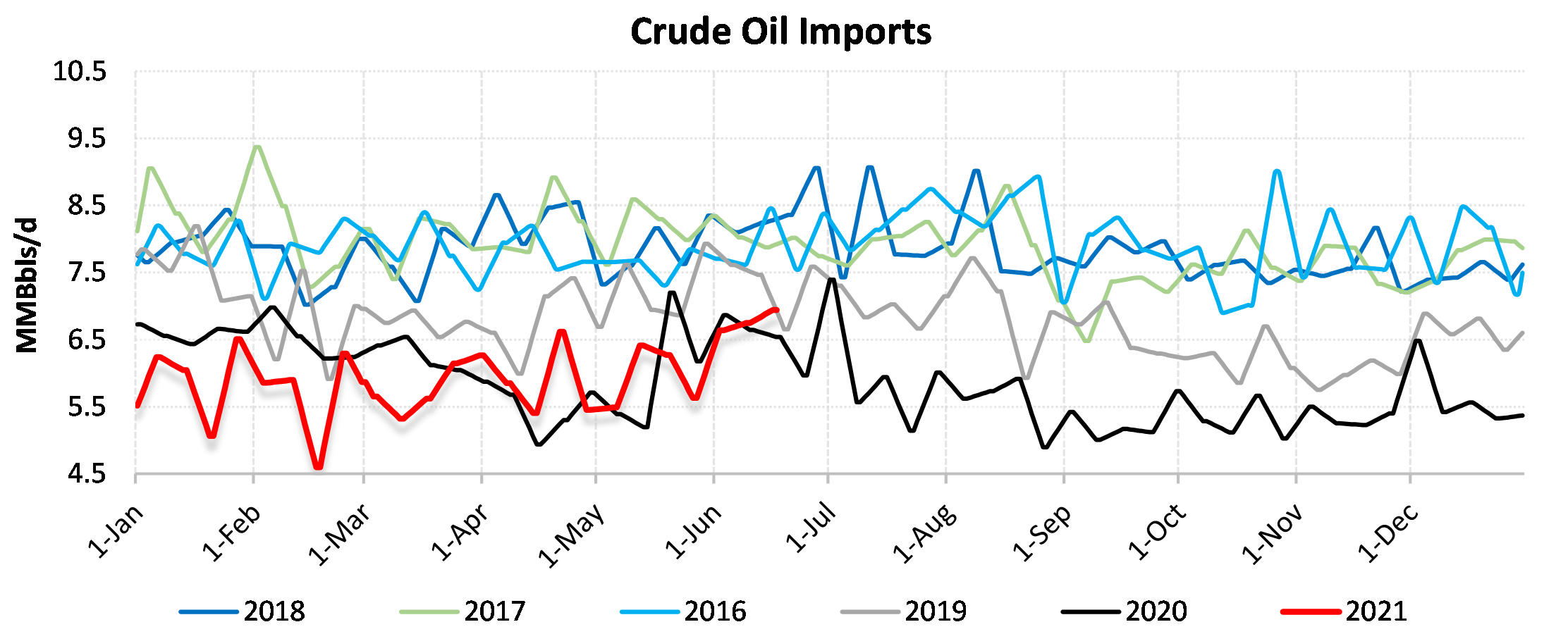 EIA reported a draw of -7614 MBbls in U.S. crude-oil inventories for the week ending 6/18/2021. This was larger than the average estimate of -4122 MBbls as reported by Bloomberg.