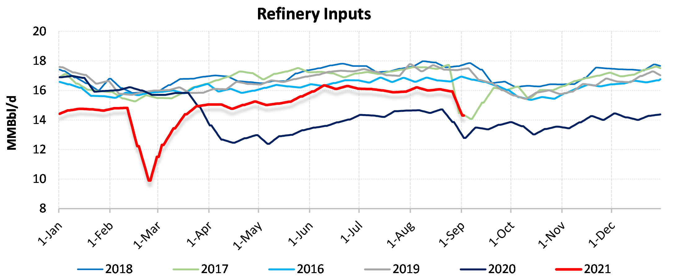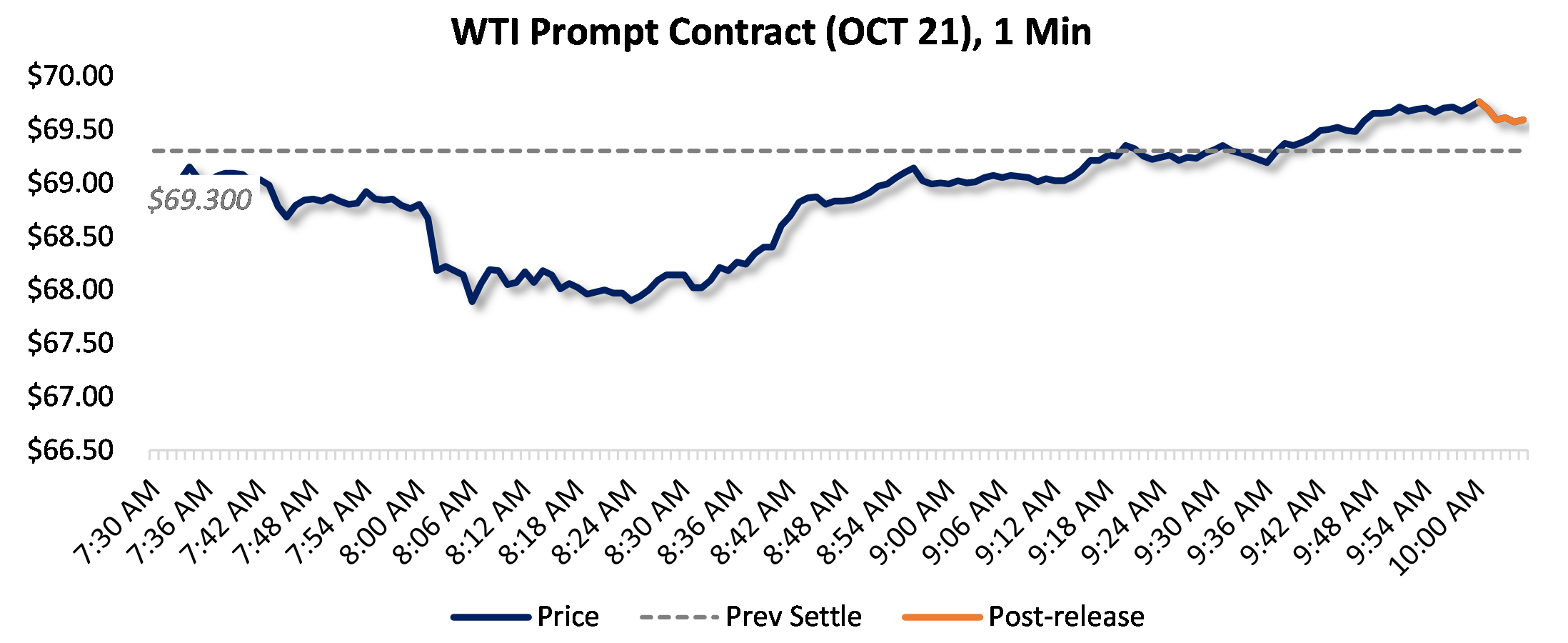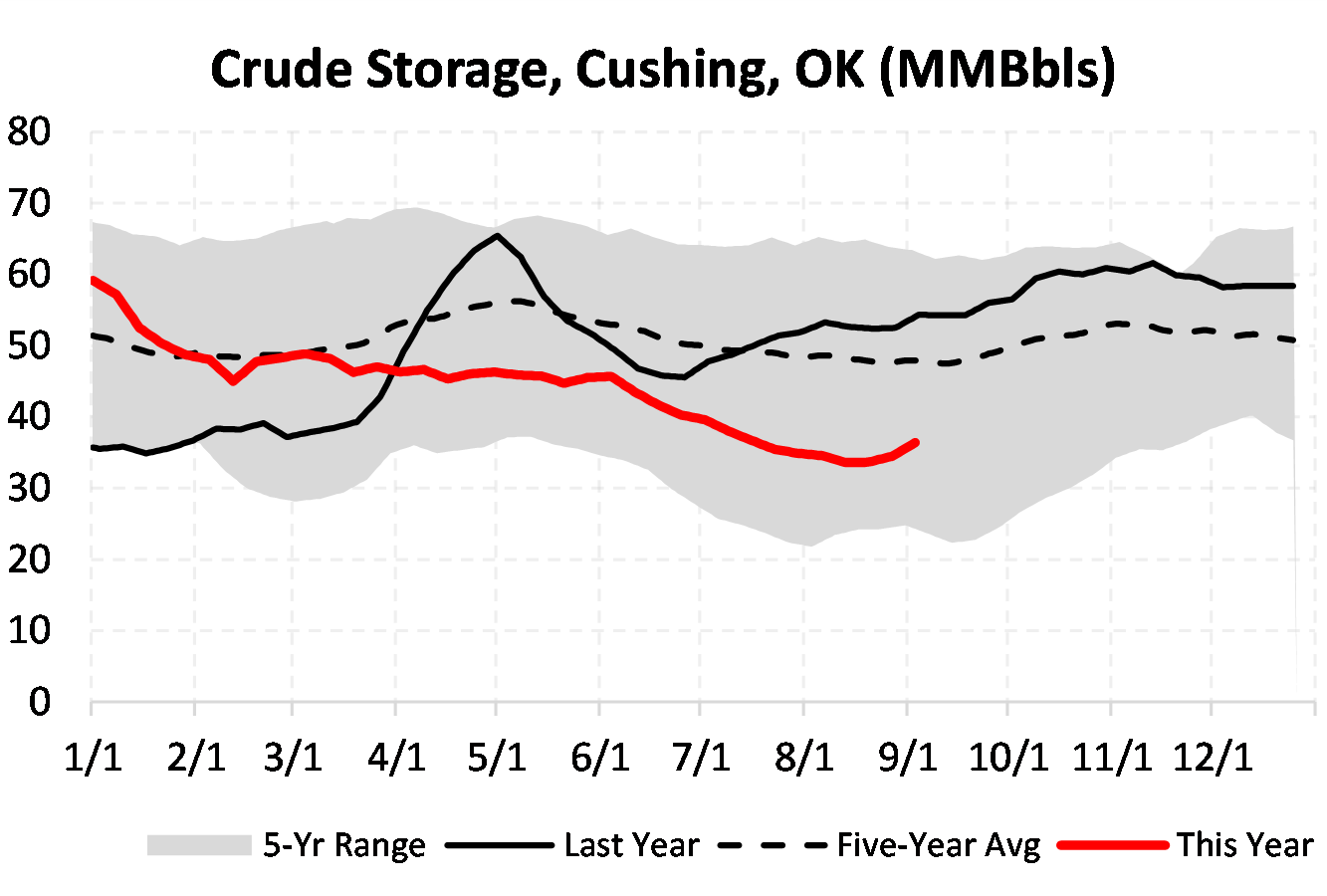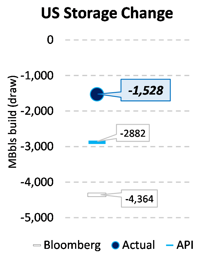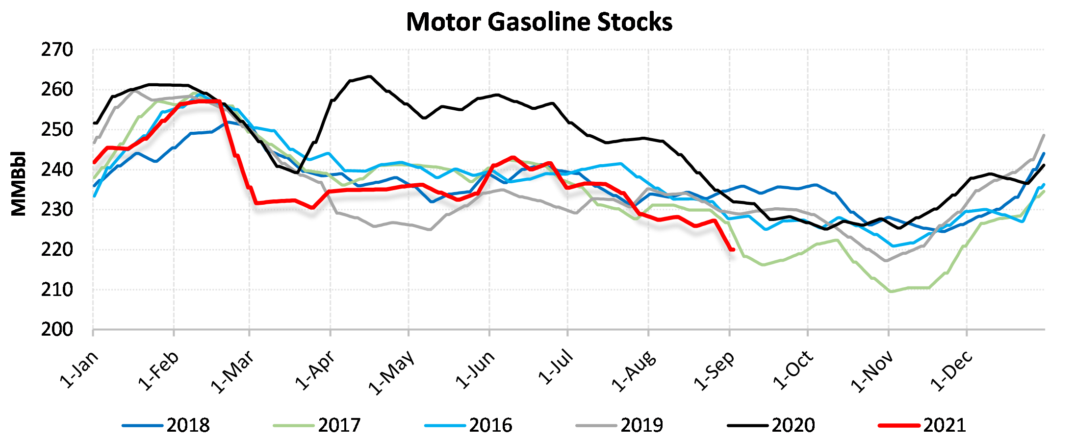 EIA reported a draw of -1528 MBbls in U.S. crude-oil inventories for the week ending 9/3/2021. This was smaller than the average estimate of -4364 MBbls as reported by Bloomberg.
