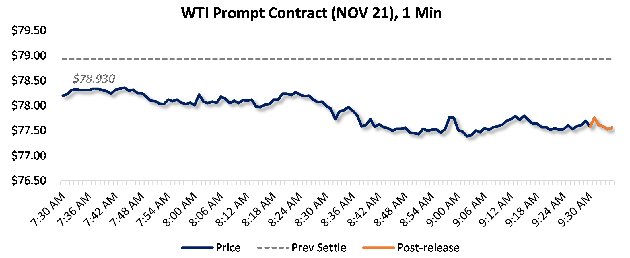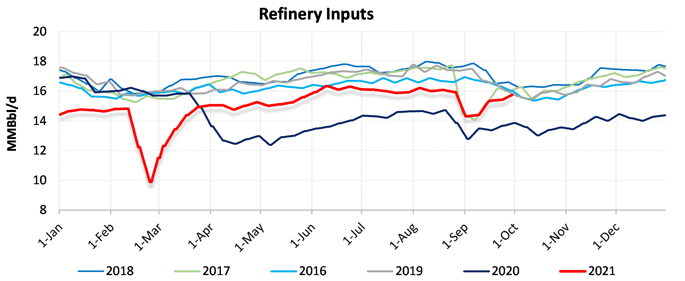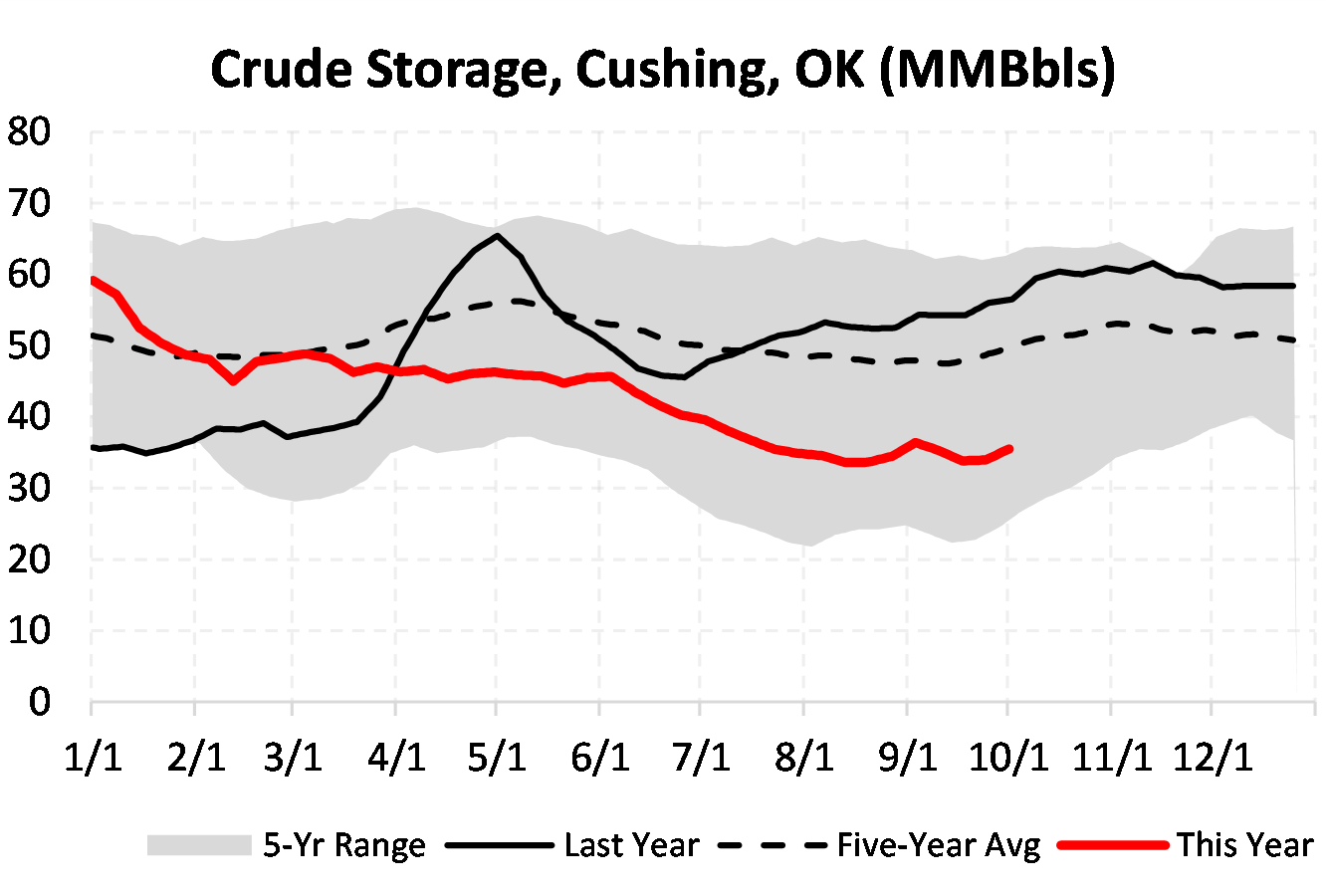 EIA reported a build of 2345 MBbls in U.S. crude-oil inventories for the week ending 10/1/2021. This was larger than the average estimate of 795 MBbls as reported by Bloomberg.