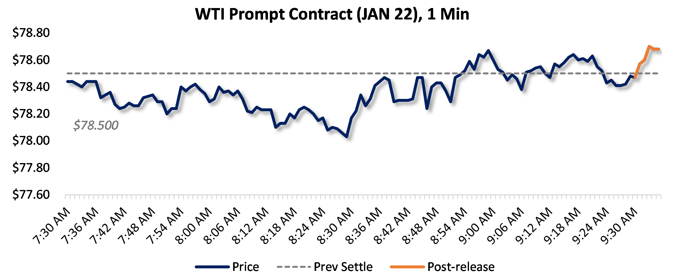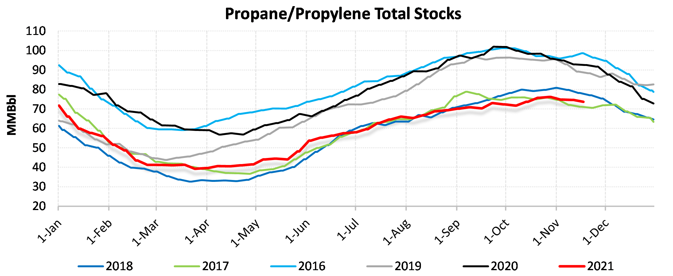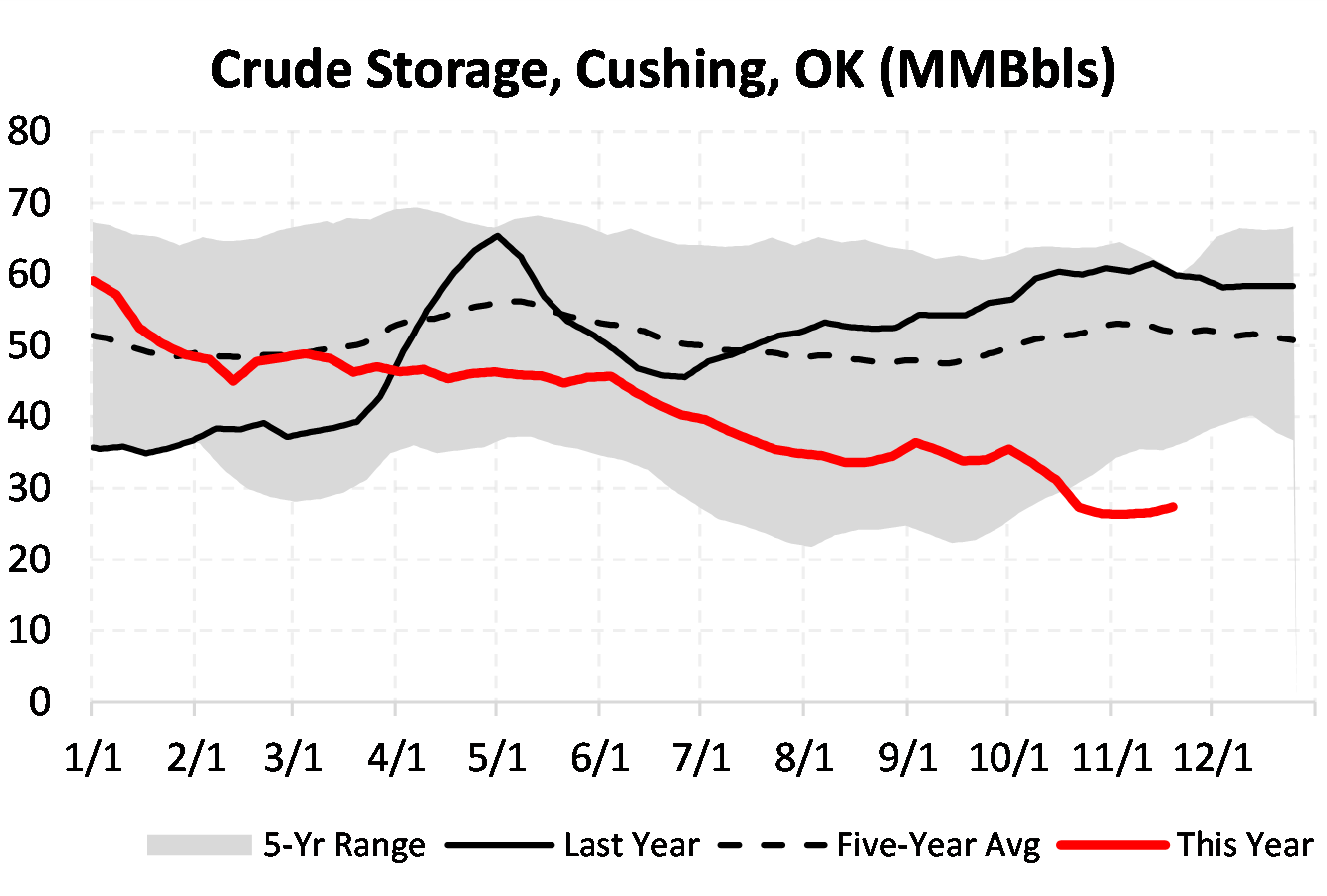 EIA reported a build of 1017 MBbls in U.S. crude-oil inventories for the week ending 11/19/2021. This was smaller than the average estimate of -1526 MBbls as reported by Bloomberg.