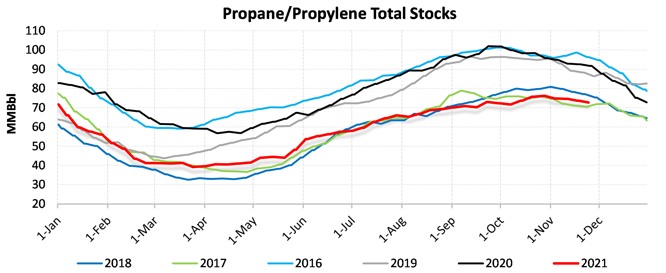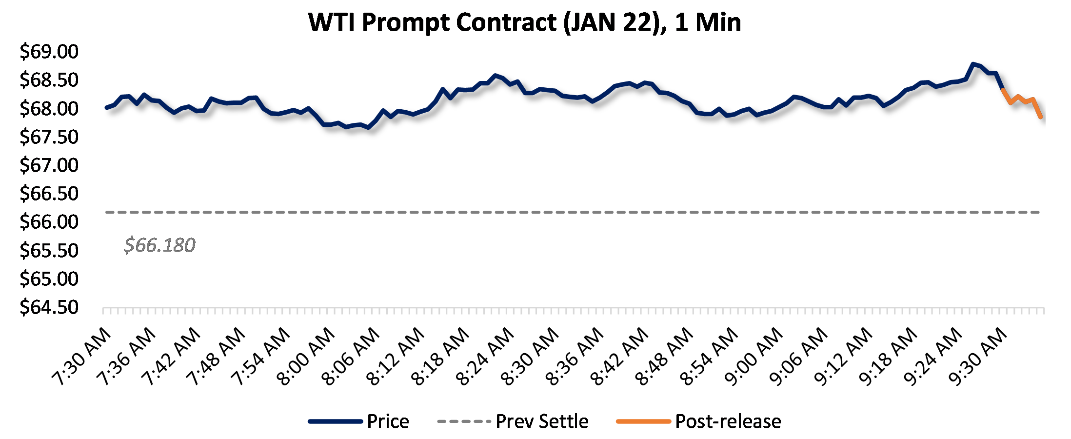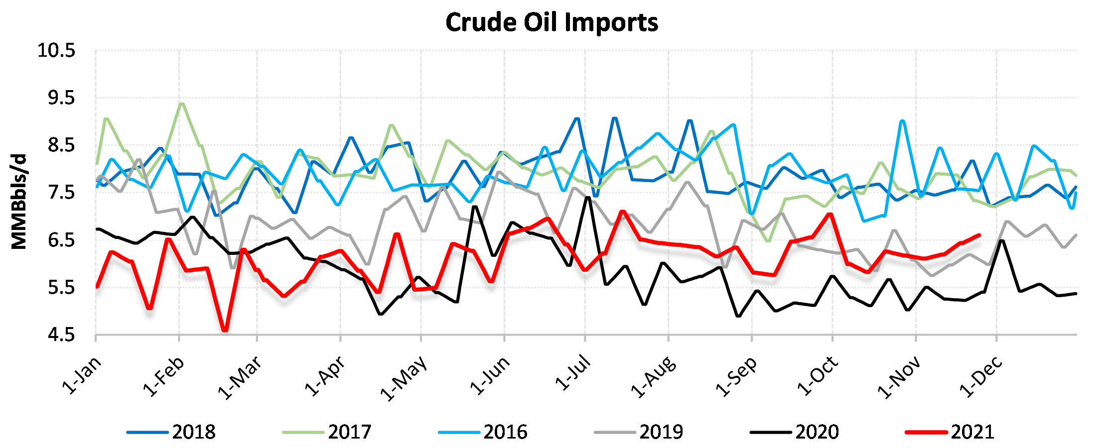 EIA reported a draw of -909 MBbls in U.S. crude-oil inventories for the week ending 11/26/2021. This was smaller than the average estimate of -1054 MBbls as reported by Bloomberg.