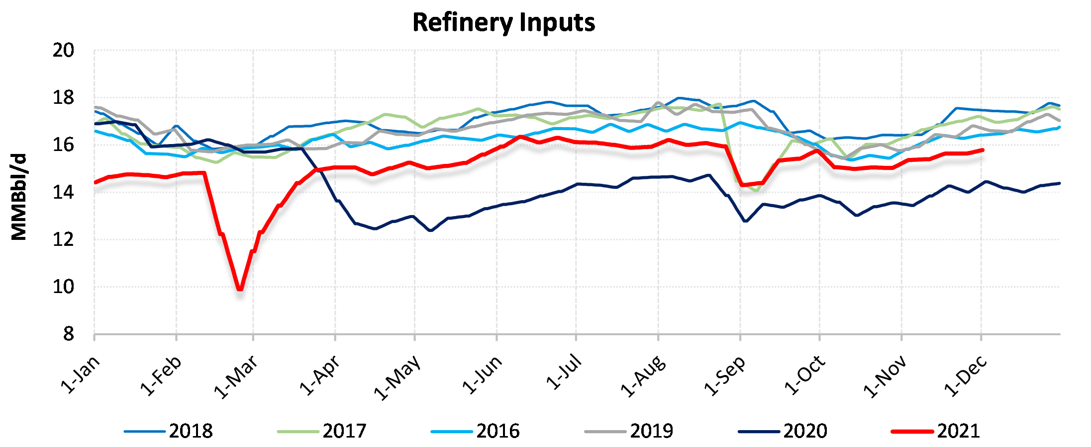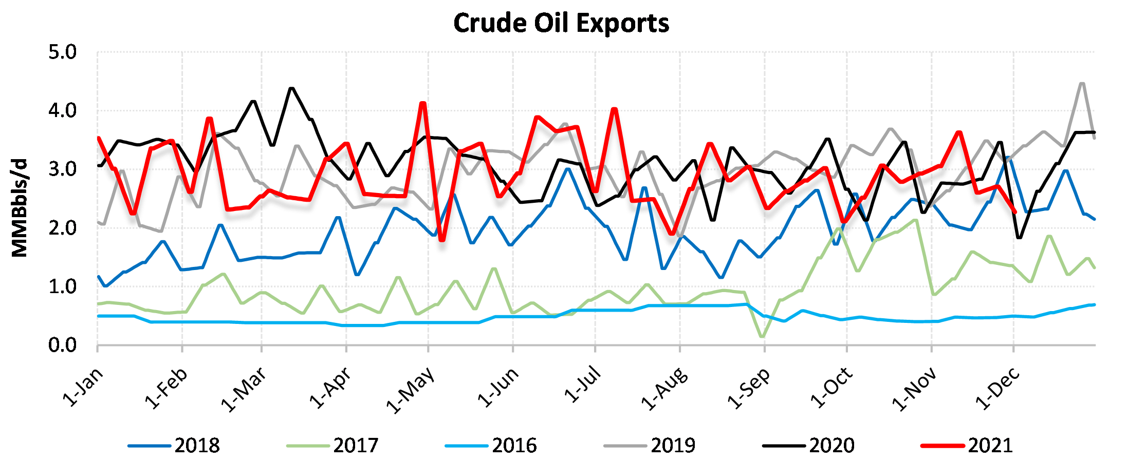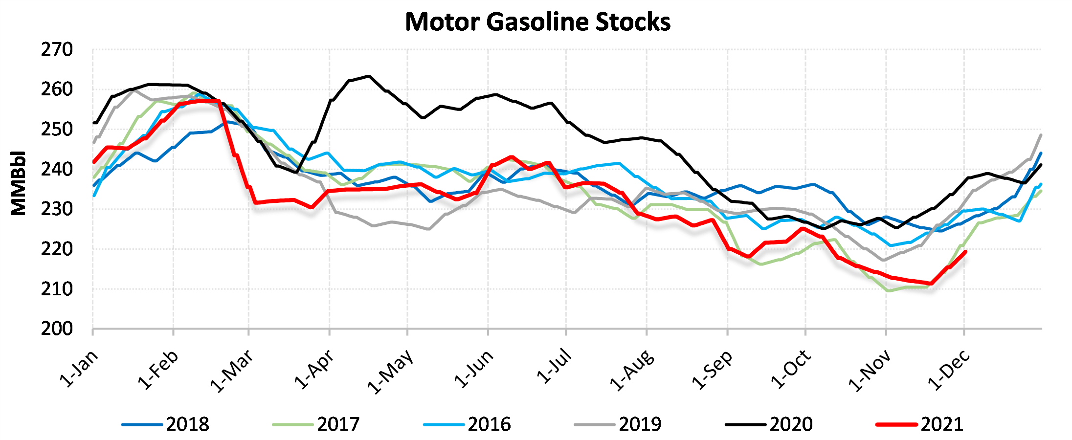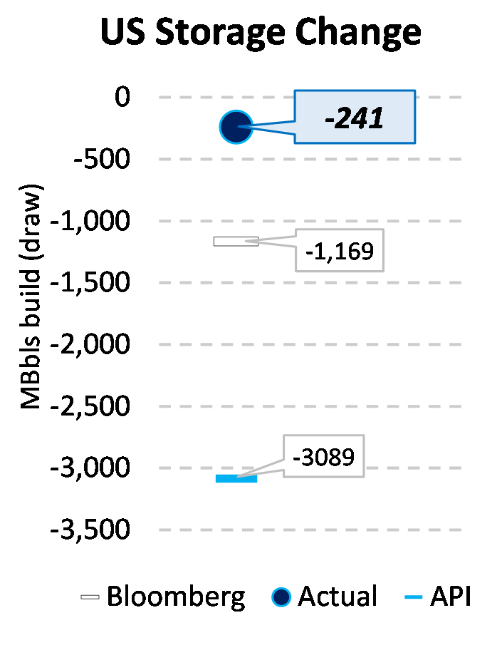 EIA reported a draw of -241 MBbls in U.S. crude-oil inventories for the week ending 12/3/2021. This was smaller than the average estimate of -1169 MBbls as reported by Bloomberg.