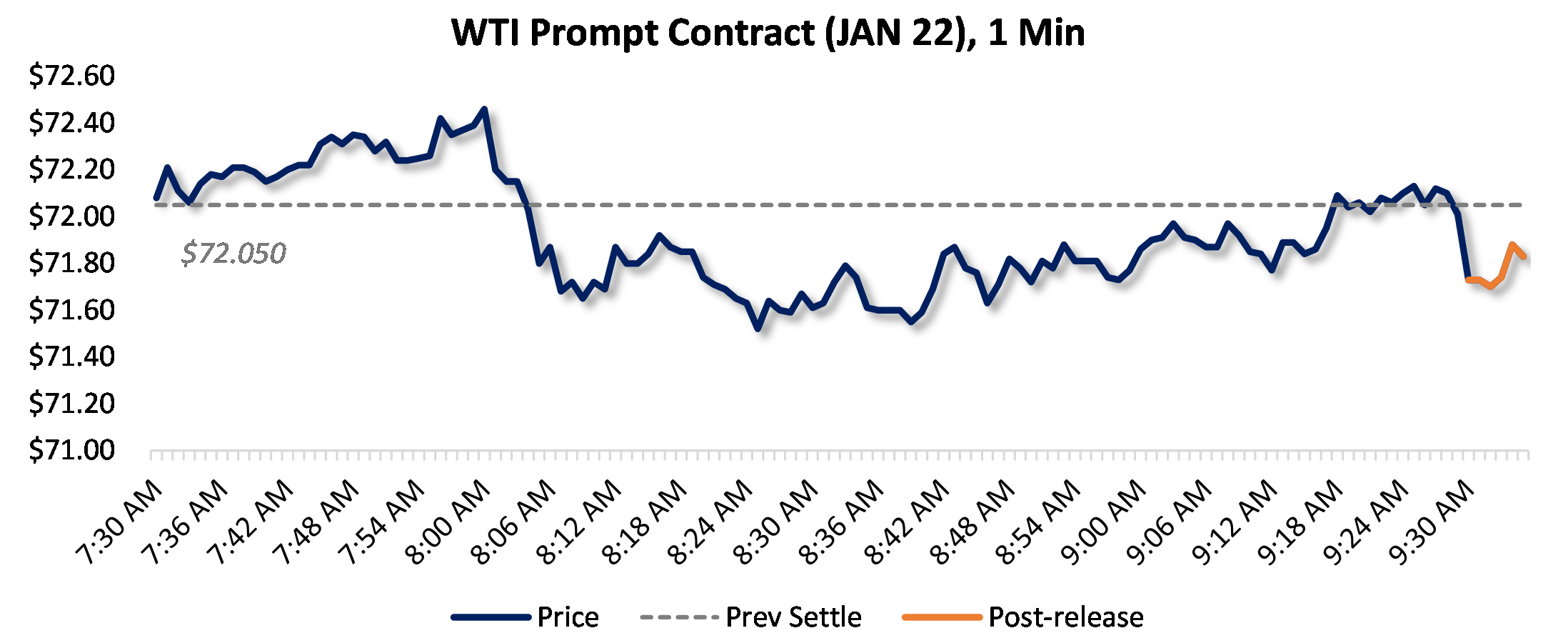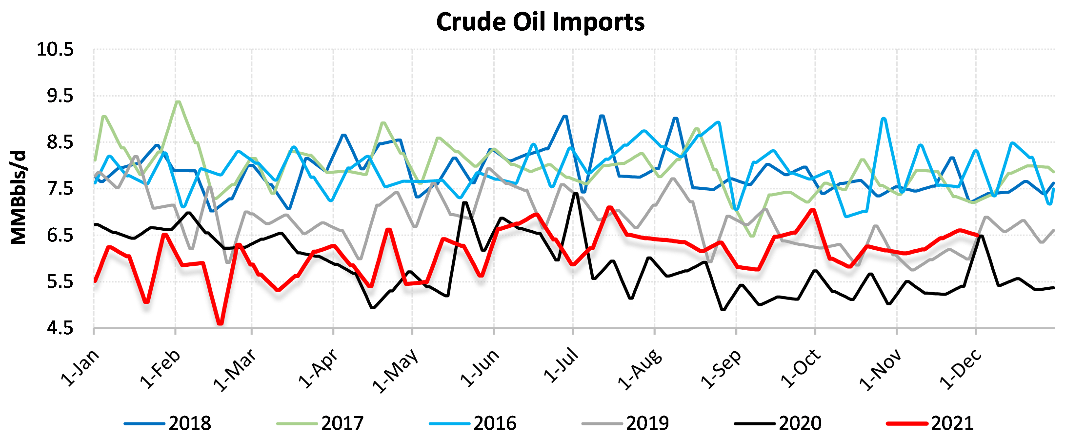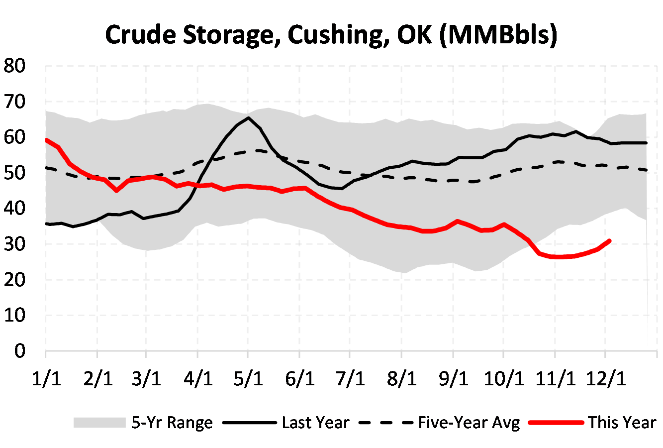 EIA reported a draw of -241 MBbls in U.S. crude-oil inventories for the week ending 12/3/2021. This was smaller than the average estimate of -1169 MBbls as reported by Bloomberg.