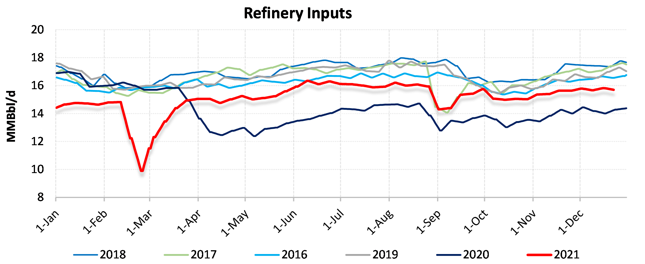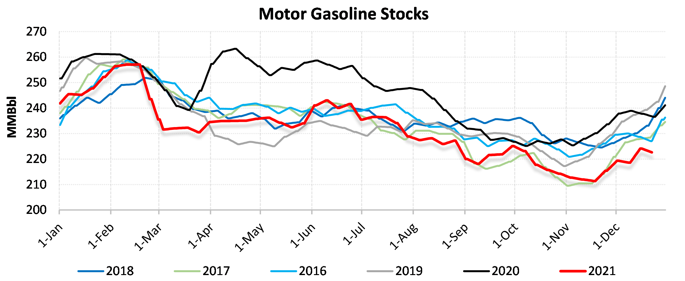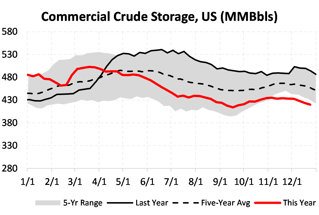 Inventories for the US are now at a deficit of 79.539 MBbls to last year and a deficit of 40.05 MBbls to the five-year average.