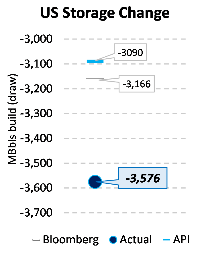 EIA reported a draw of -3576 MBbls in U.S. crude-oil inventories for the week ending 12/24/2021. This was larger than the average estimate of -3166 MBbls as reported by Bloomberg.