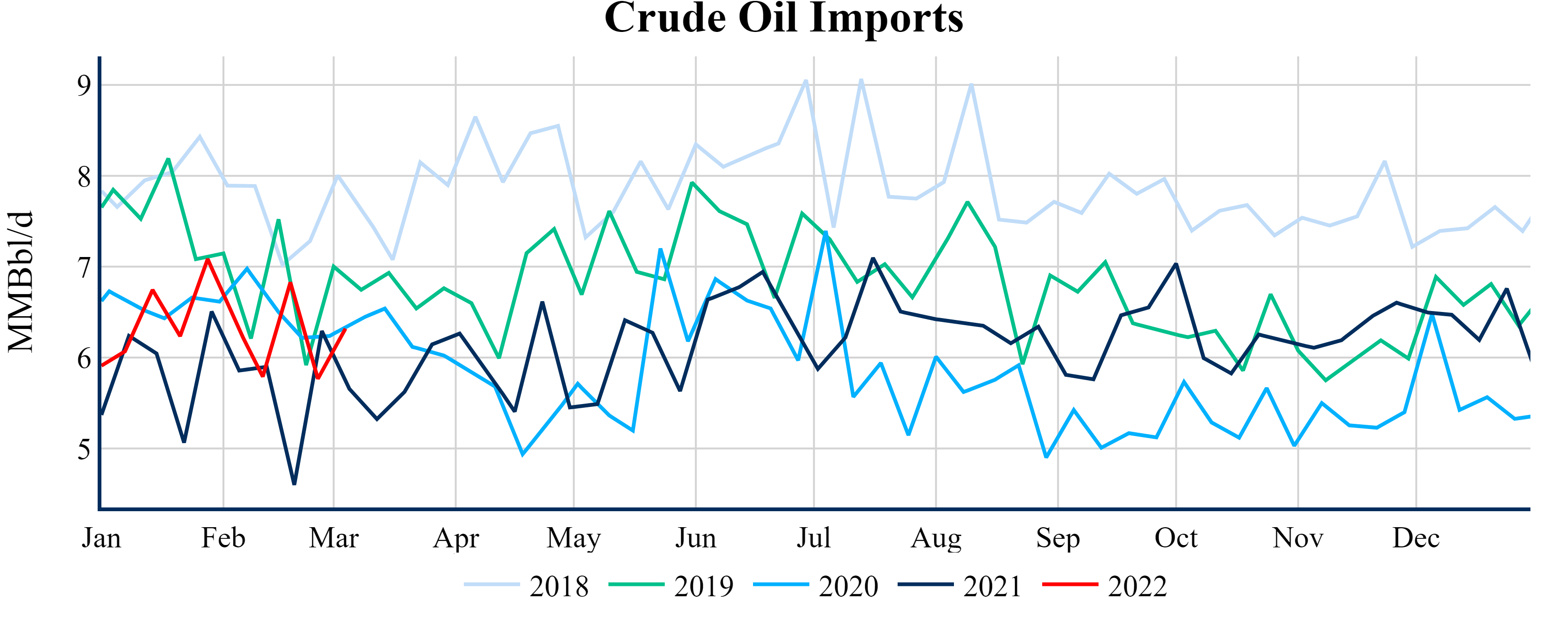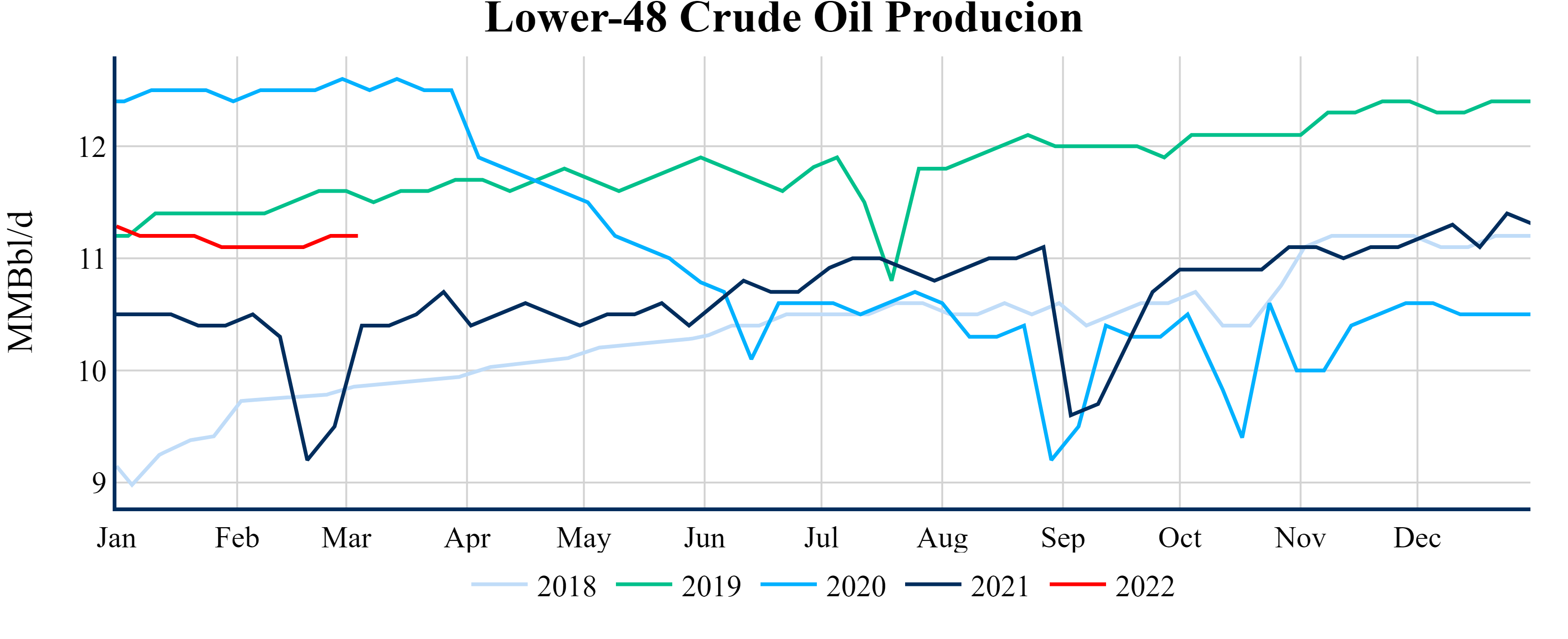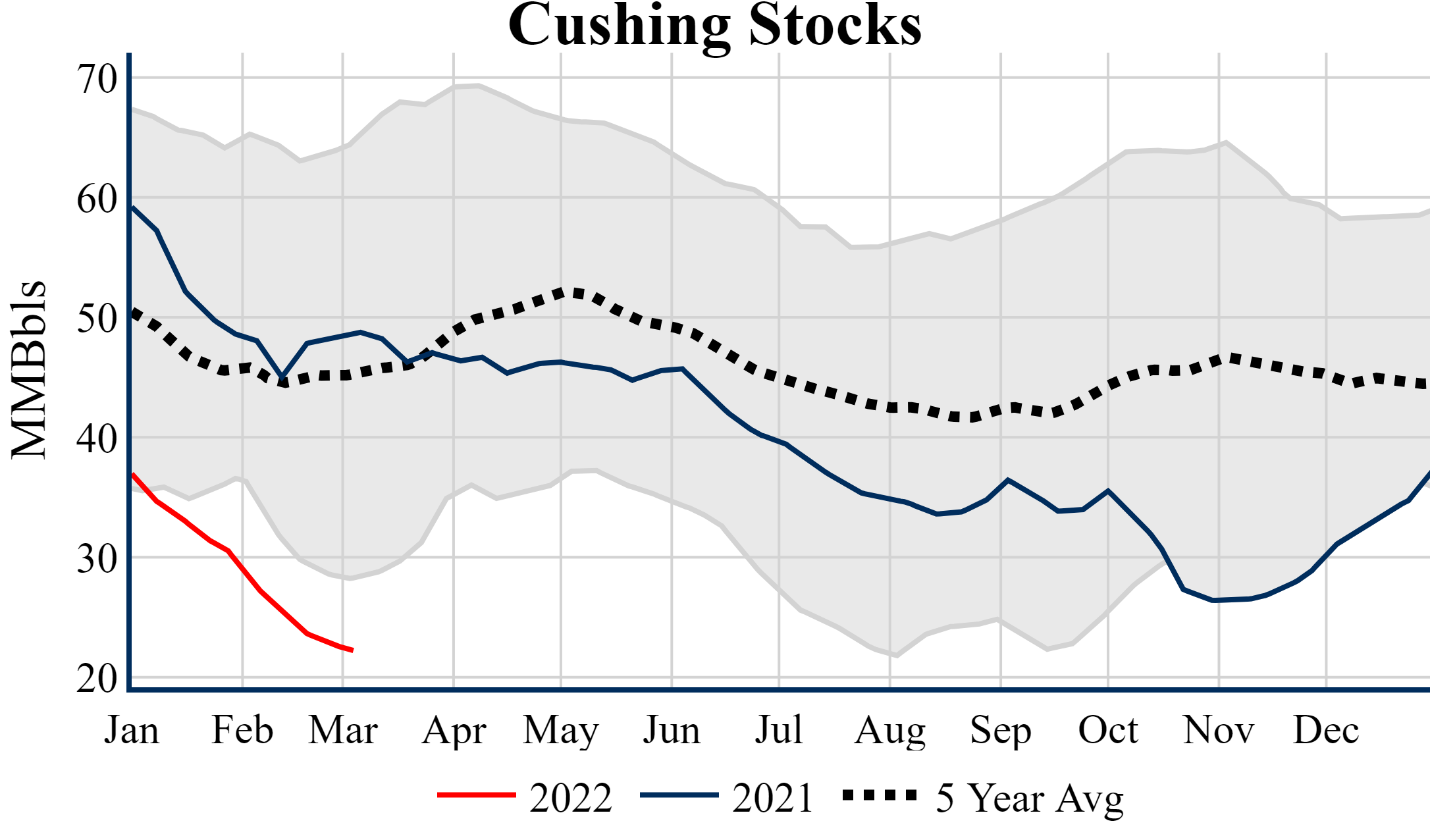 Inventories for the U.S. are now at a deficit of 84.90 MMBbls (-17.1%) to last year, and a deficit of 58.80 MMBbls (-12.5%) to the five-year average.