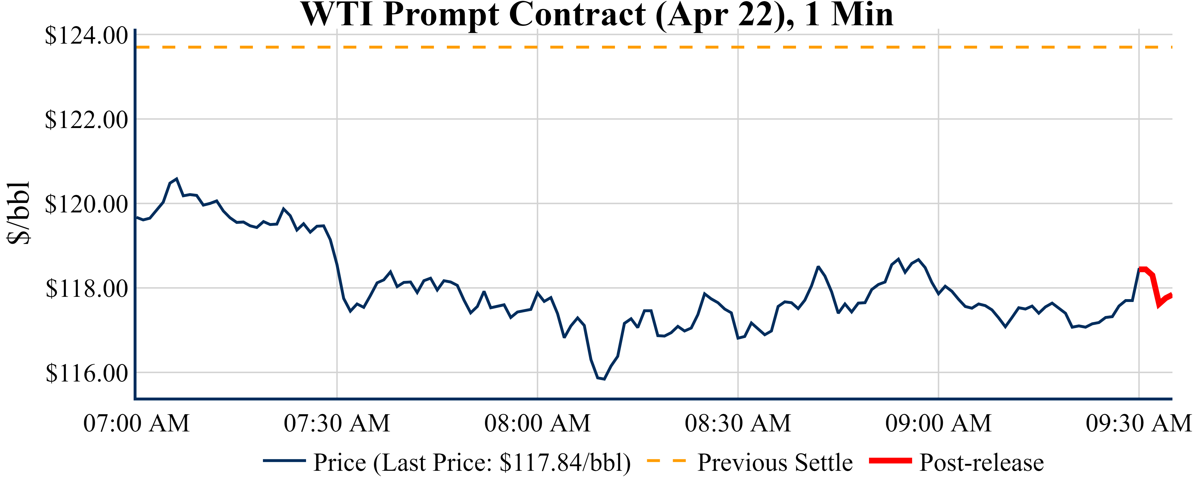 The EIA reported a draw of -1,863 MBbls in U.S. crude-oil inventories. This draw was smaller than the average estimate of 2,811 MBbls as reported by Bloomberg.