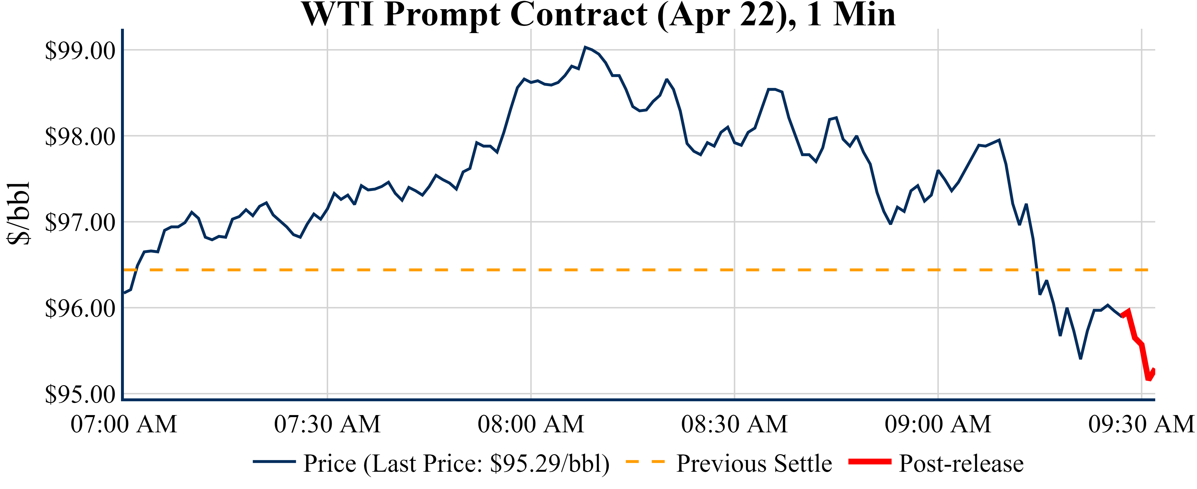 Prices were up in the five minutes following the announcement, to $95.58 from $95.57 just before 09:30 AM.