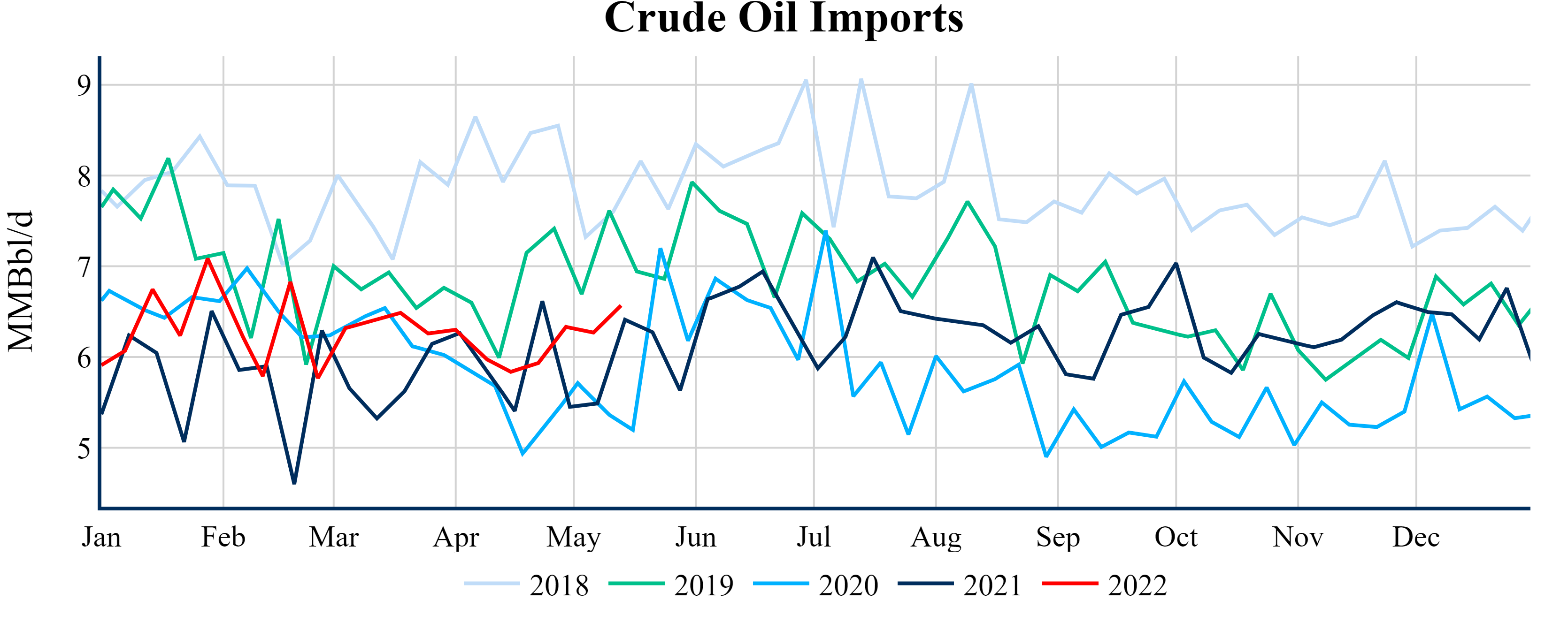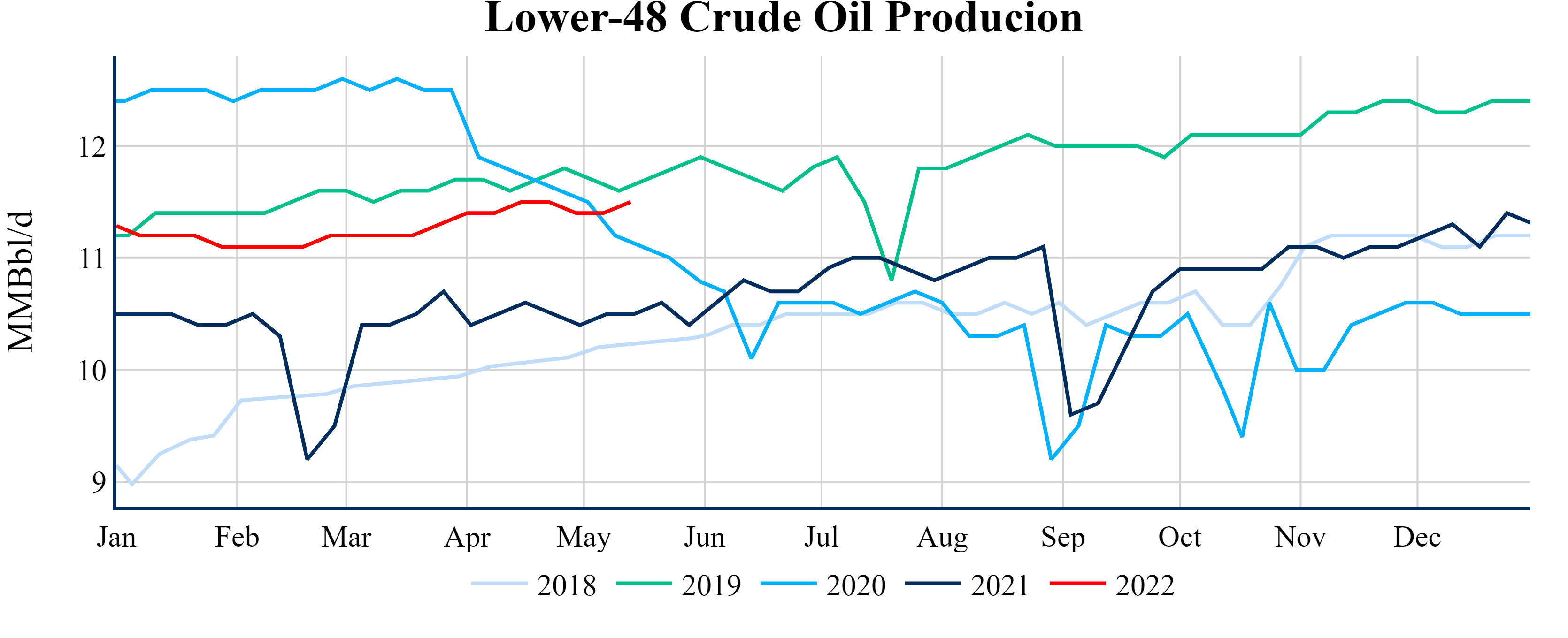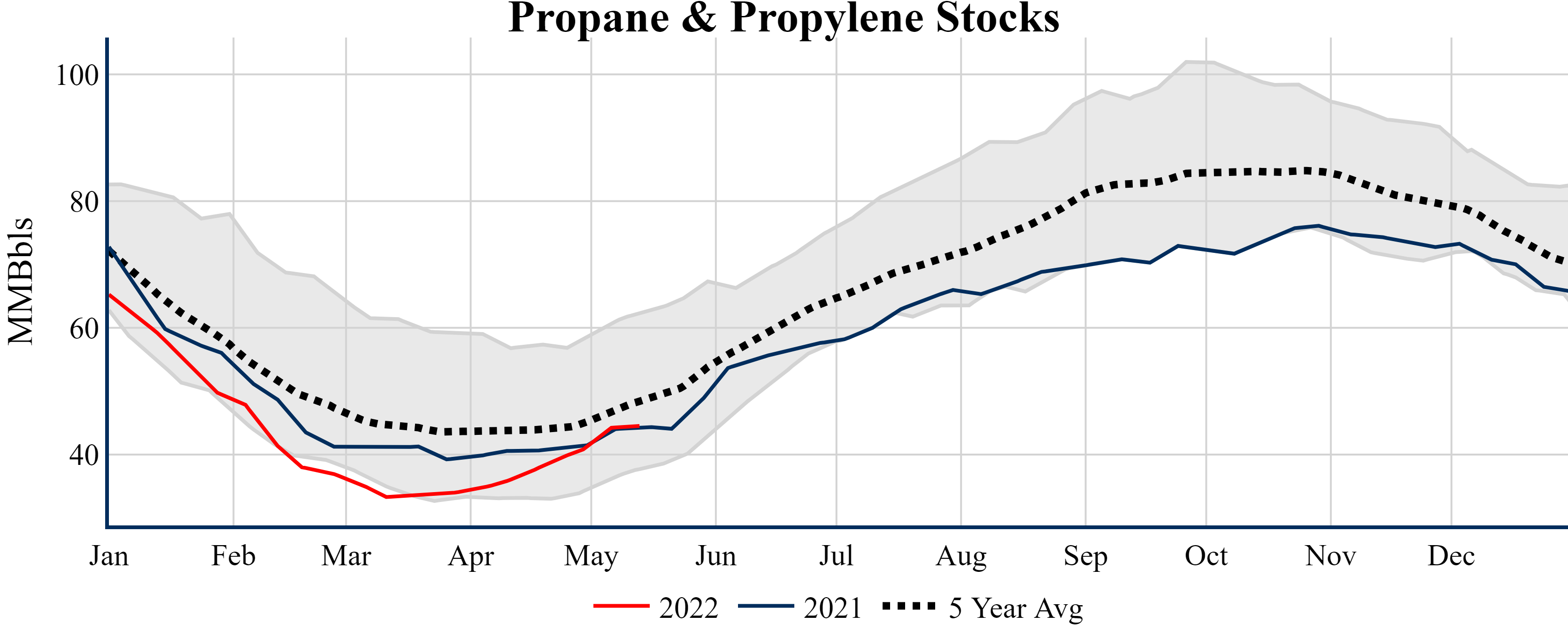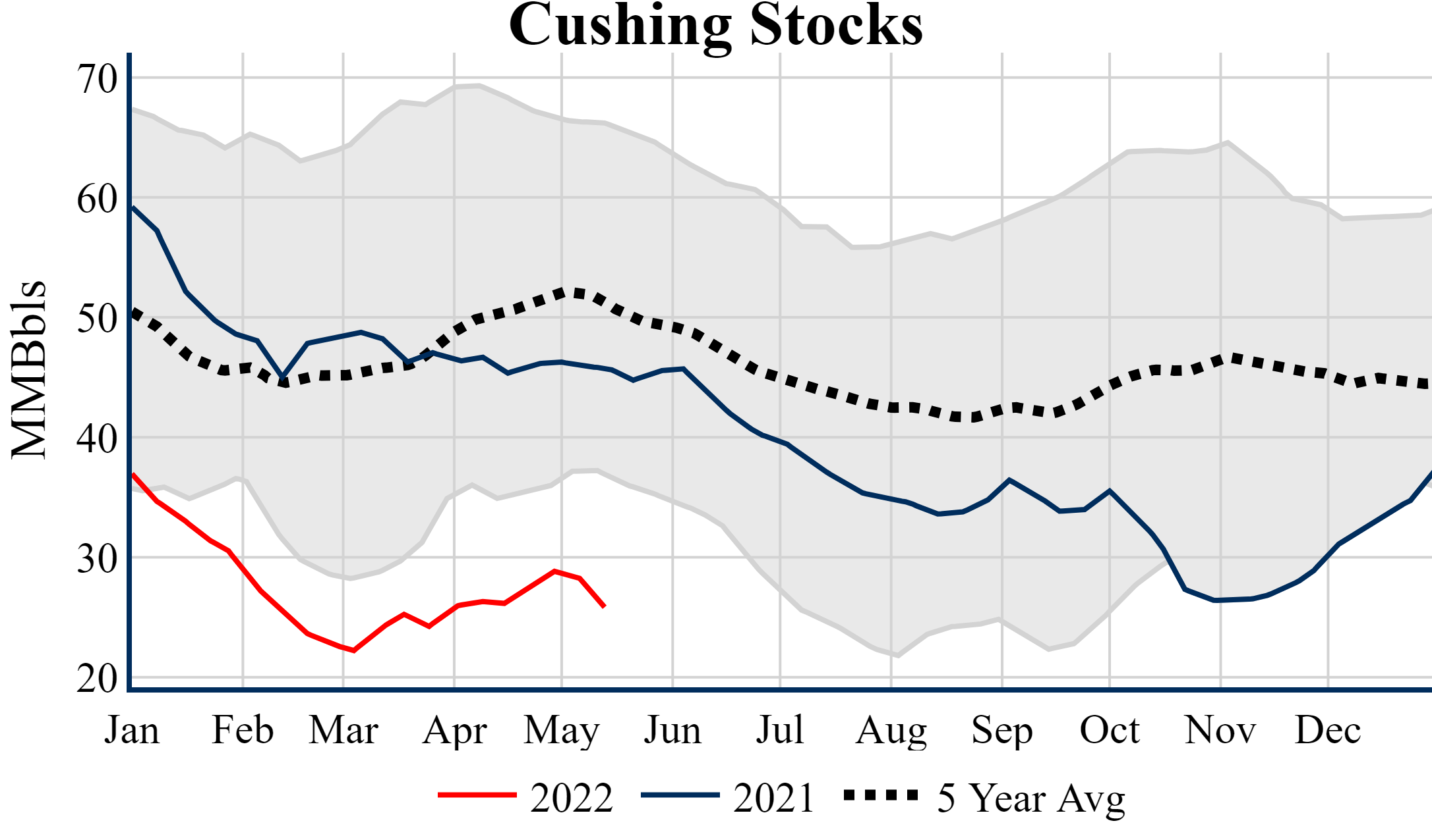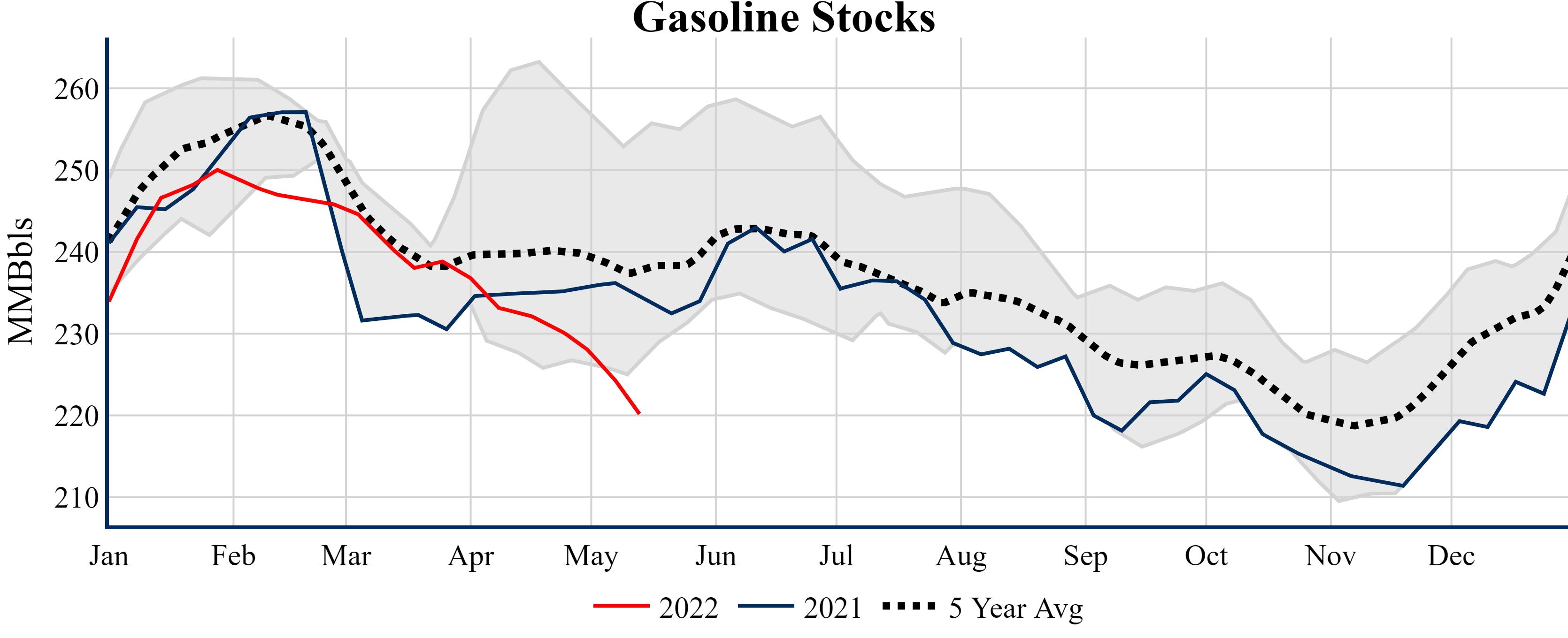 Inventories for the U.S. are now at a deficit of 65.00 MMBbls (-13.4%) to last year, and a deficit of 67.70 MMBbls (-13.9%) to the five-year average.