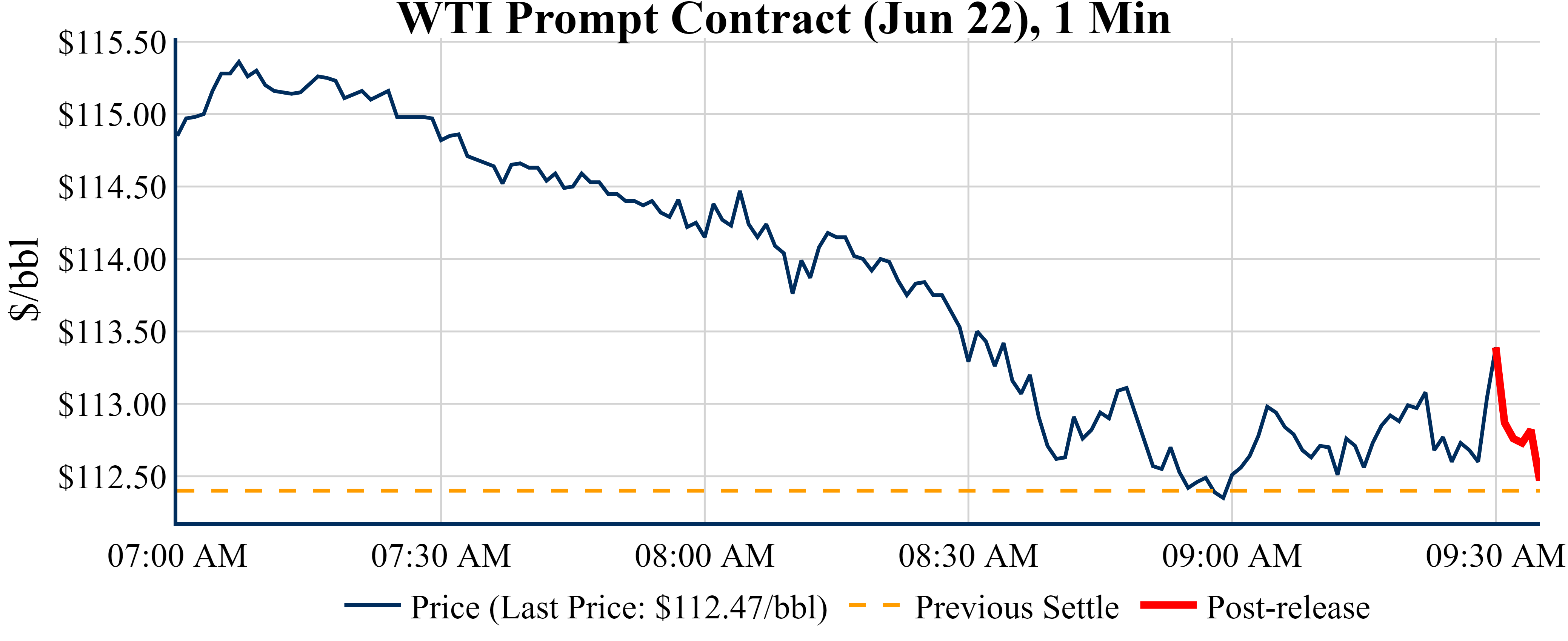 Prices were down in the five minutes following the announcement, to $112.47 from $113.39 just before 09:30 AM.