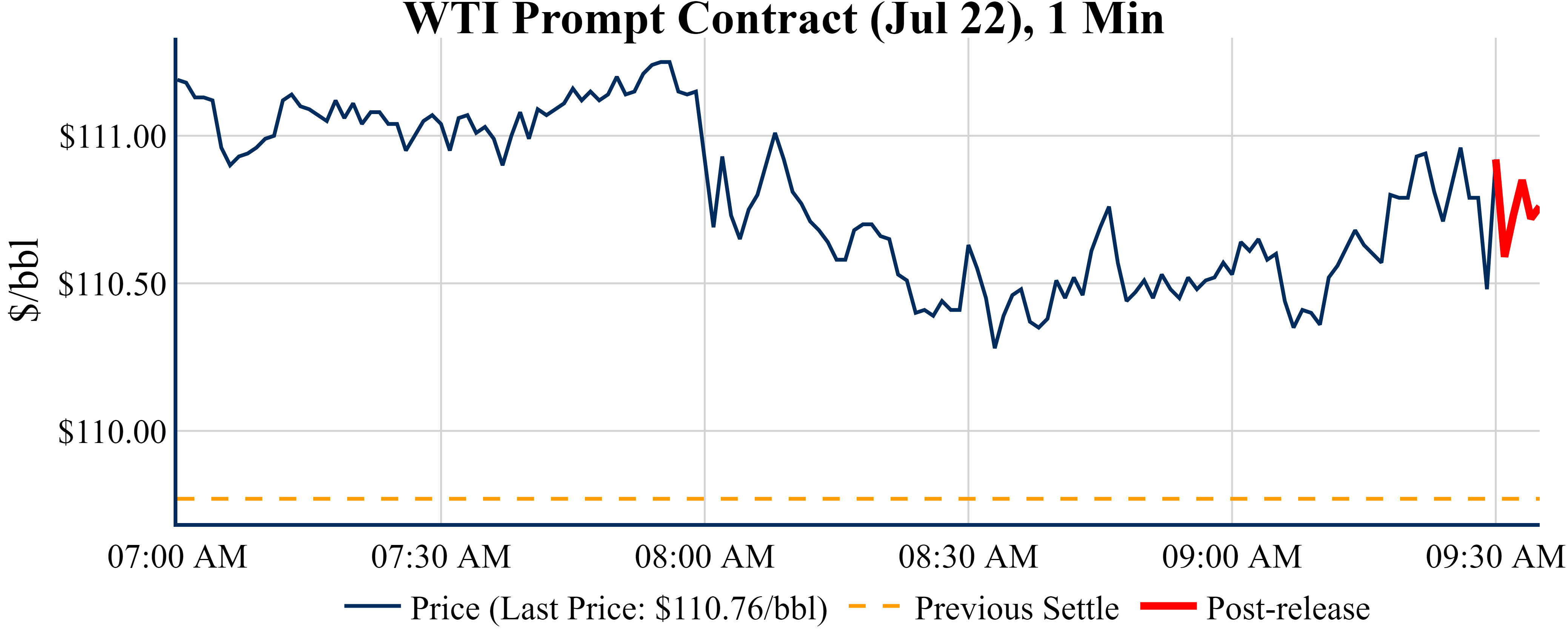 Prices were down in the five minutes following the announcement, to $110.76 from $110.92 just before 09:30 AM.