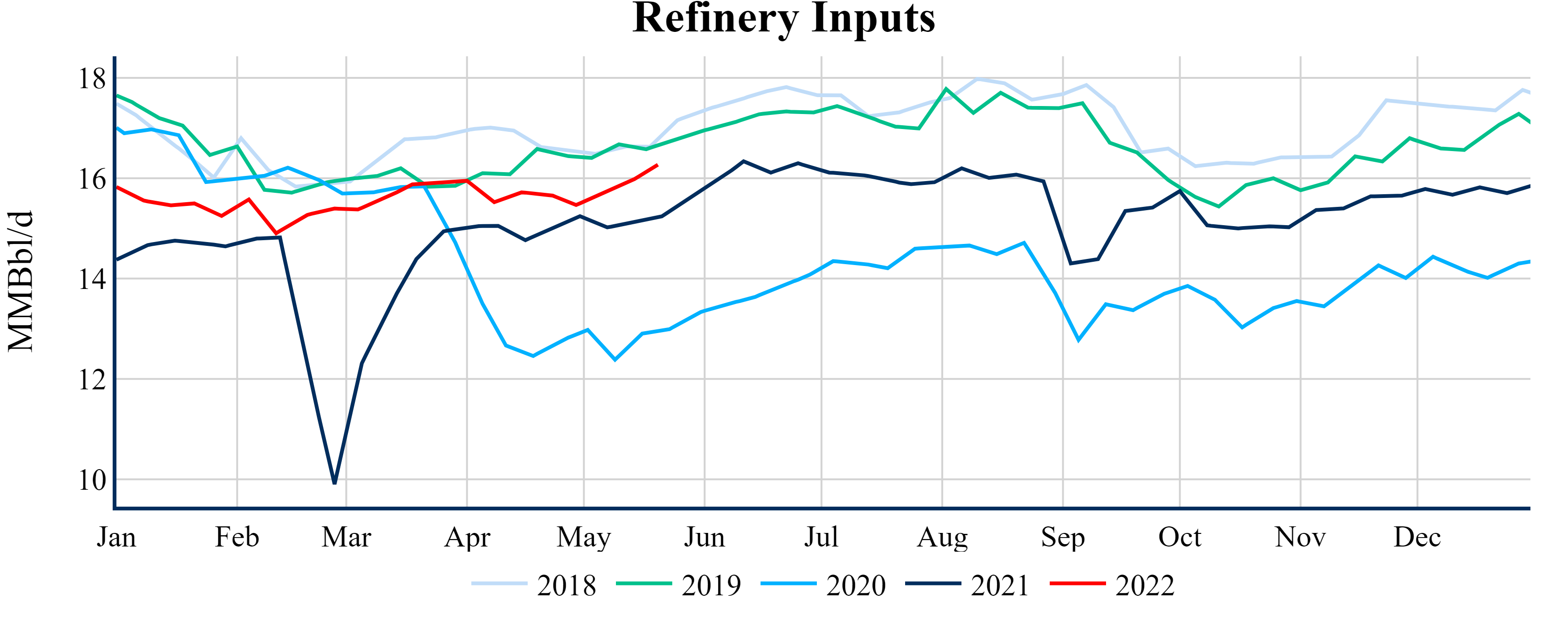 Inventories for the U.S. are now at a deficit of 64.80 MMBbls (-13.4%) to last year, and a deficit of 69.20 MMBbls (-14.1%) to the five-year average.