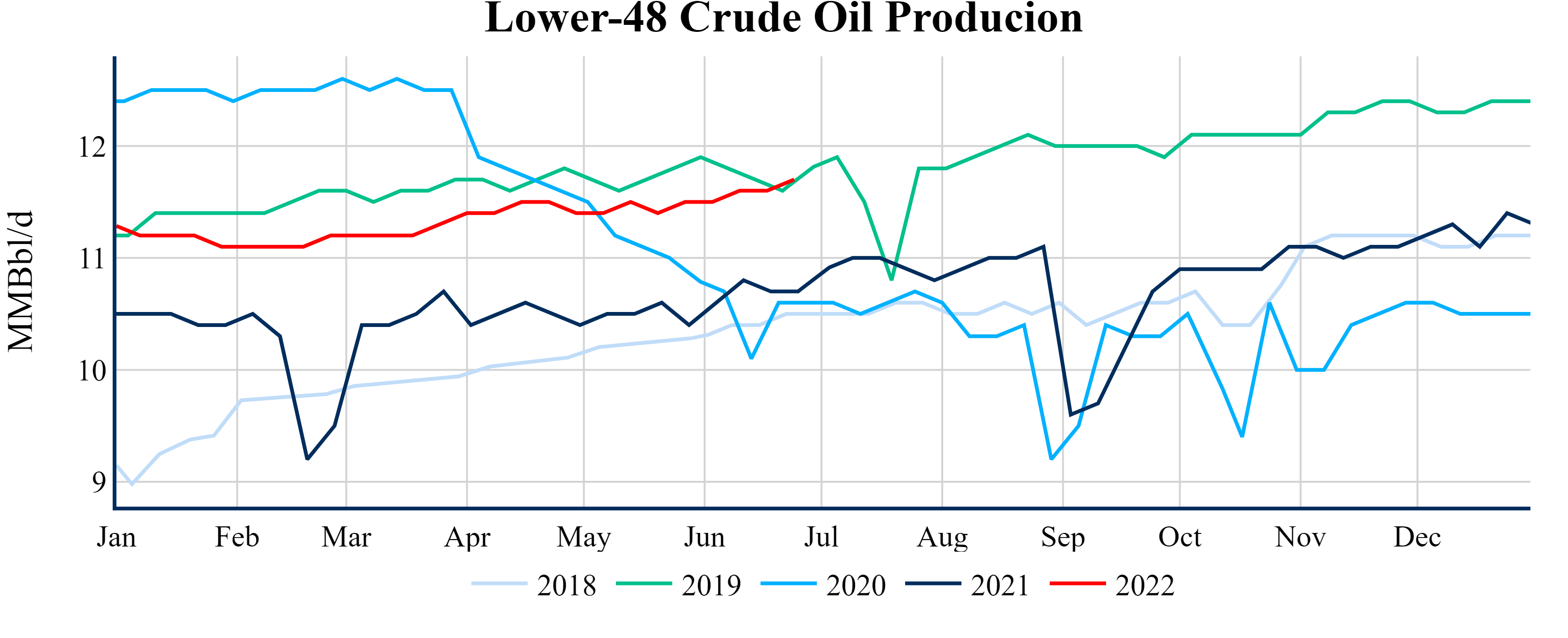 Inventories for the U.S. are now at a deficit of 37.70 MMBbls (-8.3%) to last year, and a deficit of 61.30 MMBbls (-12.9%) to the five-year average.