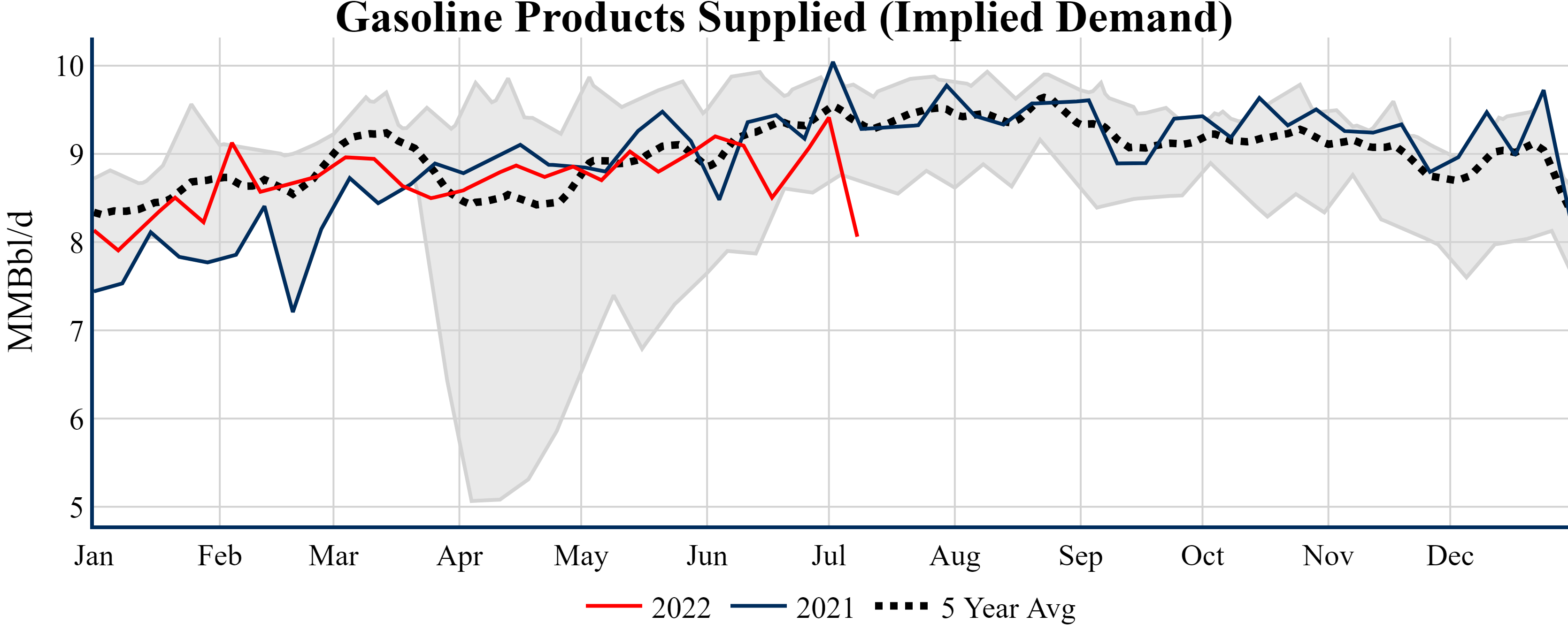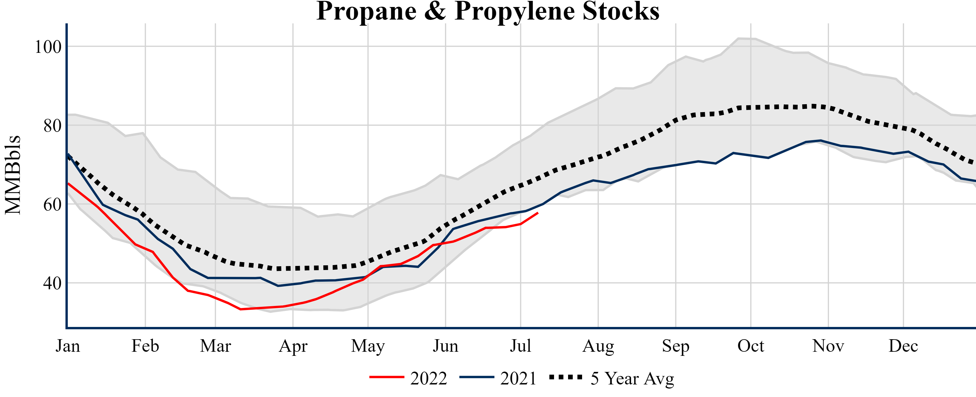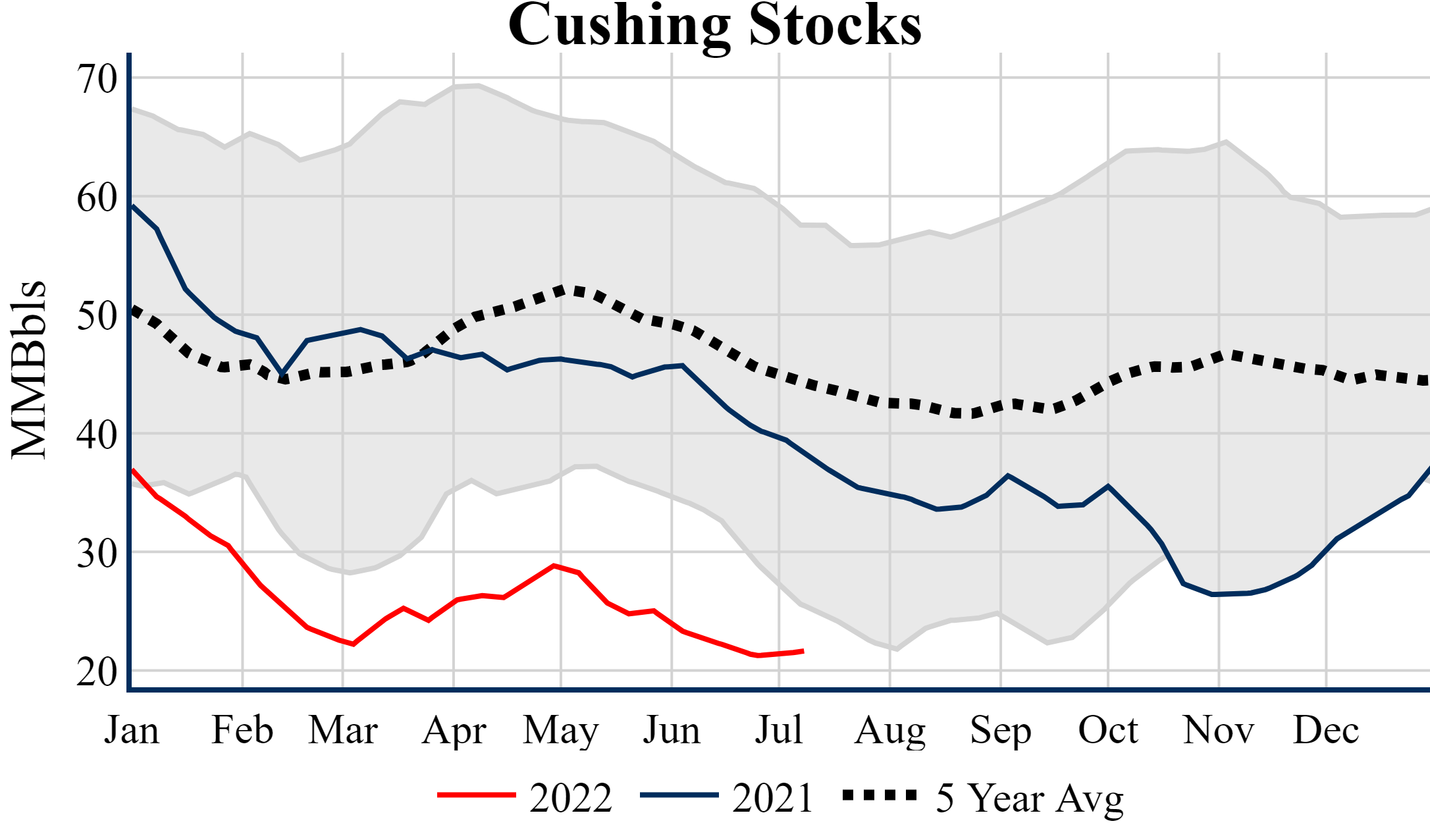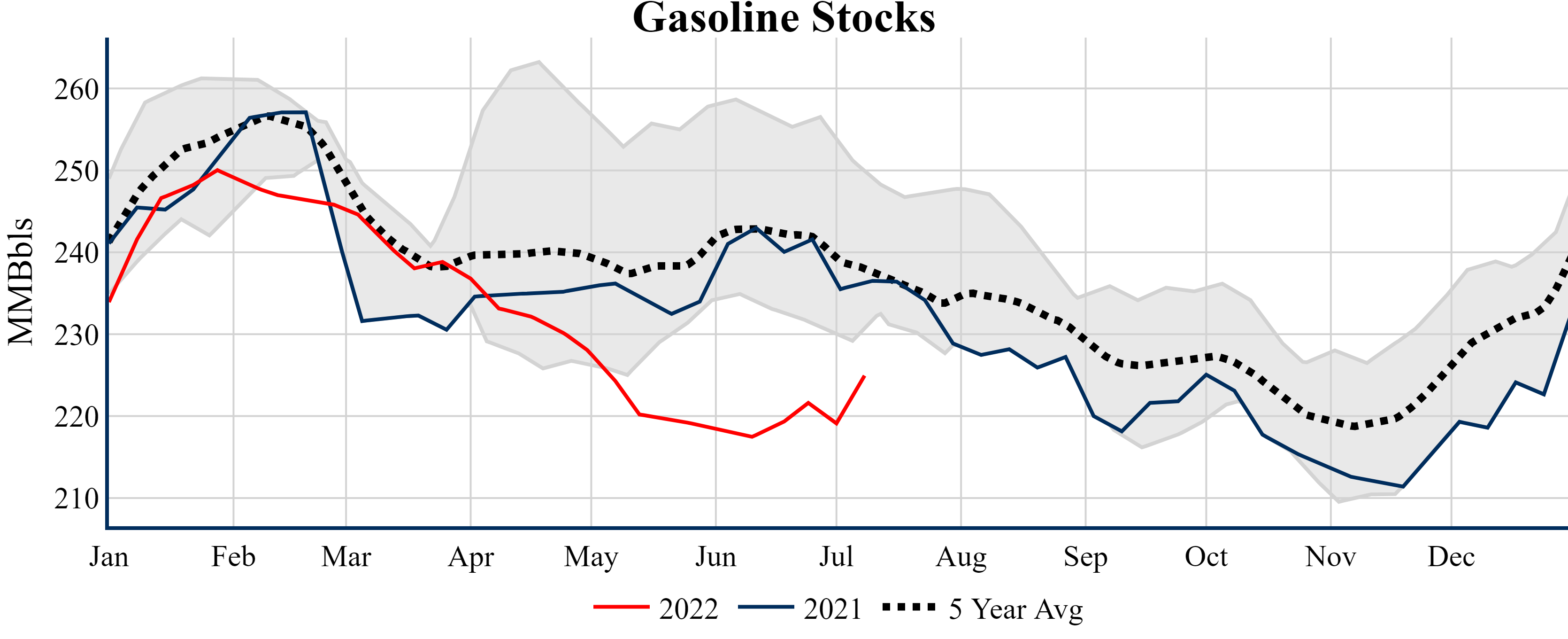 Inventories for the U.S. are now at a deficit of 11.70 MMBbls (-2.7%) to last year, and a deficit of 39.50 MMBbls (-8.5%) to the five-year average.