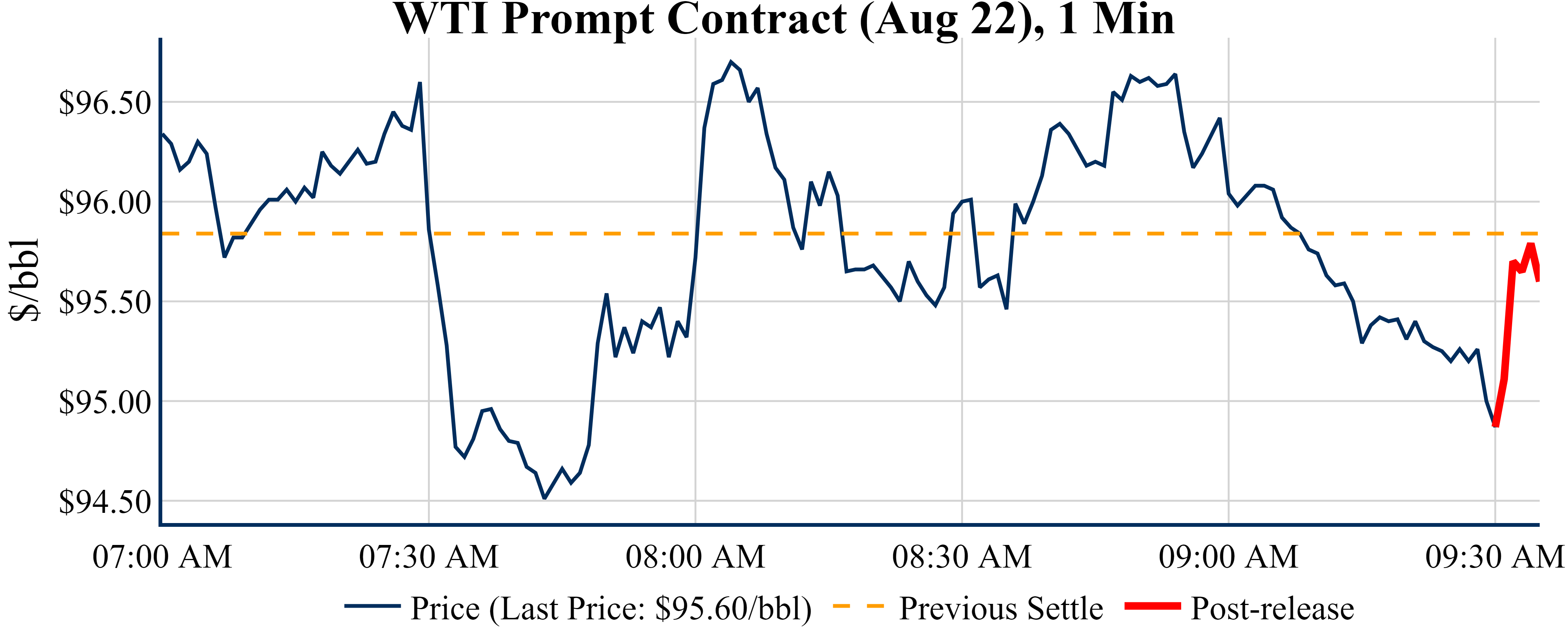 Prices were up in the five minutes following the announcement, to $95.60 from $94.87 just before 09:30 AM.