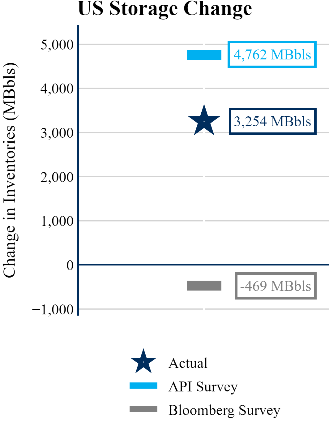 The EIA reported a build of +3,254 MBbls in U.S. crude-oil inventories. In contrast, the market expected a draw of -469 MBbls as reported by Bloomberg.