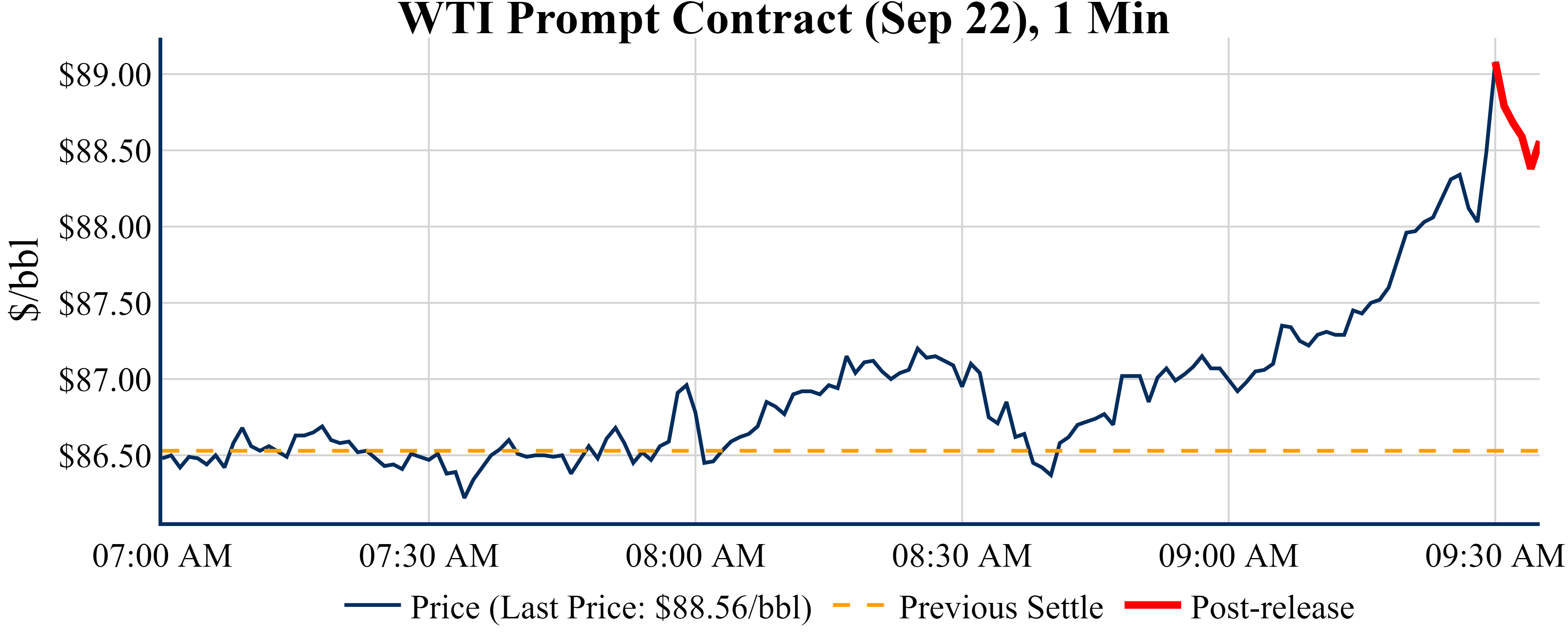Prices were up in the five minutes following the announcement, to $88.56 from $89.08 just before 09:30 AM.