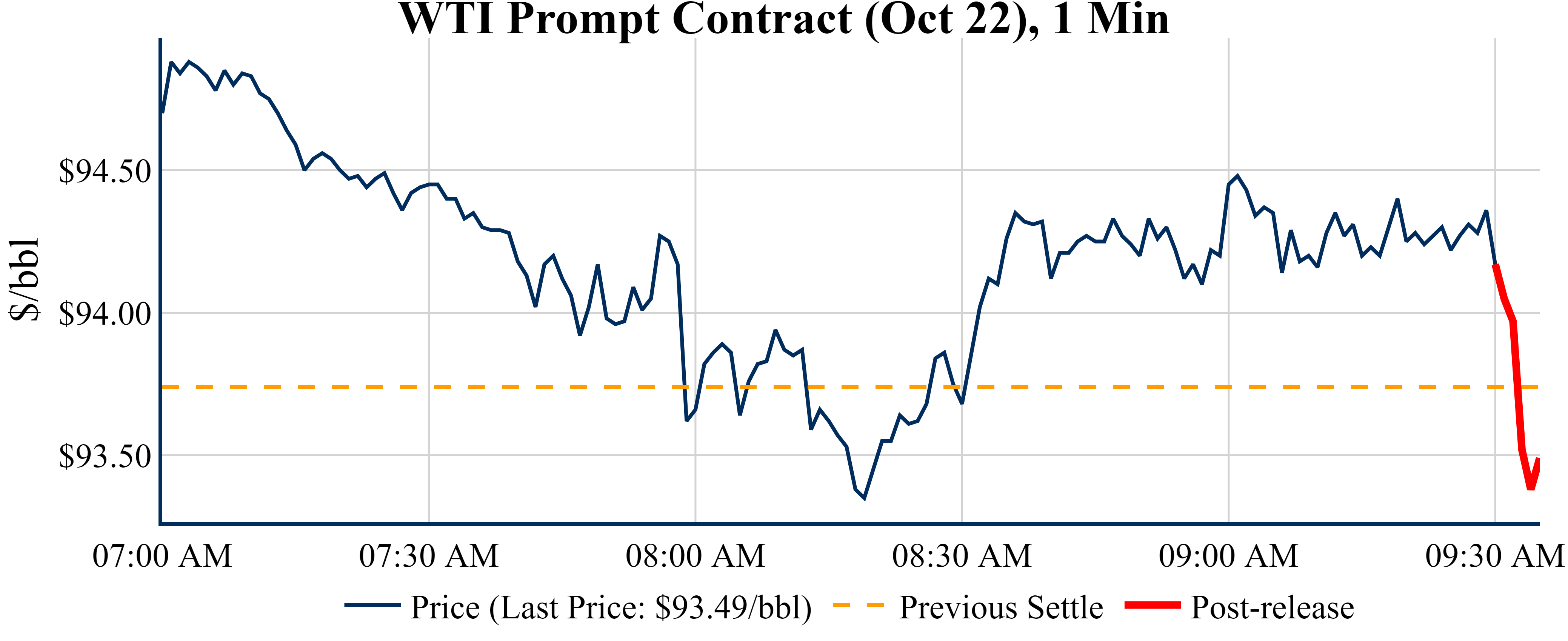 Prices were down in the five minutes following the announcement, to $93.53 from $94.17 just before 09:30 AM.