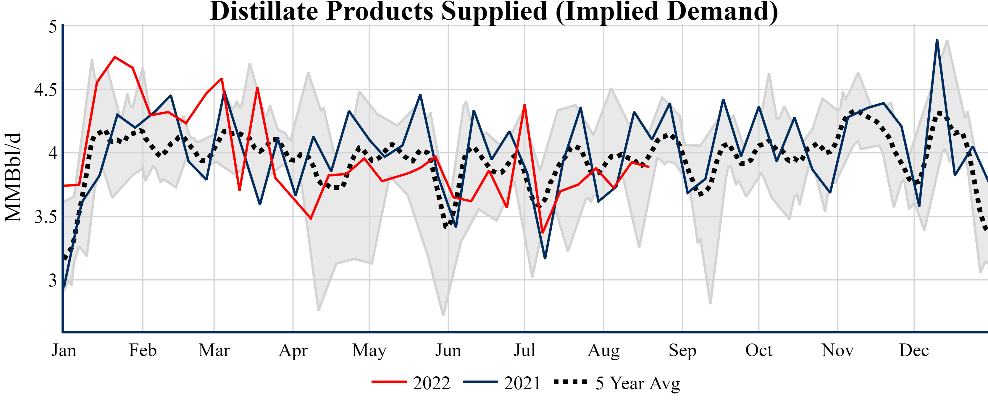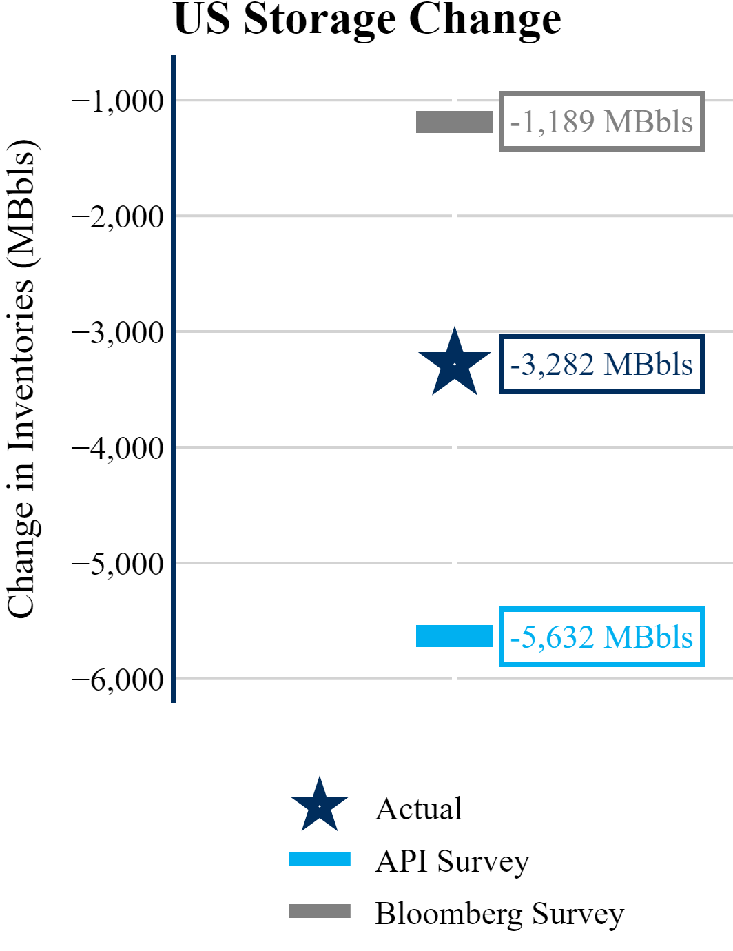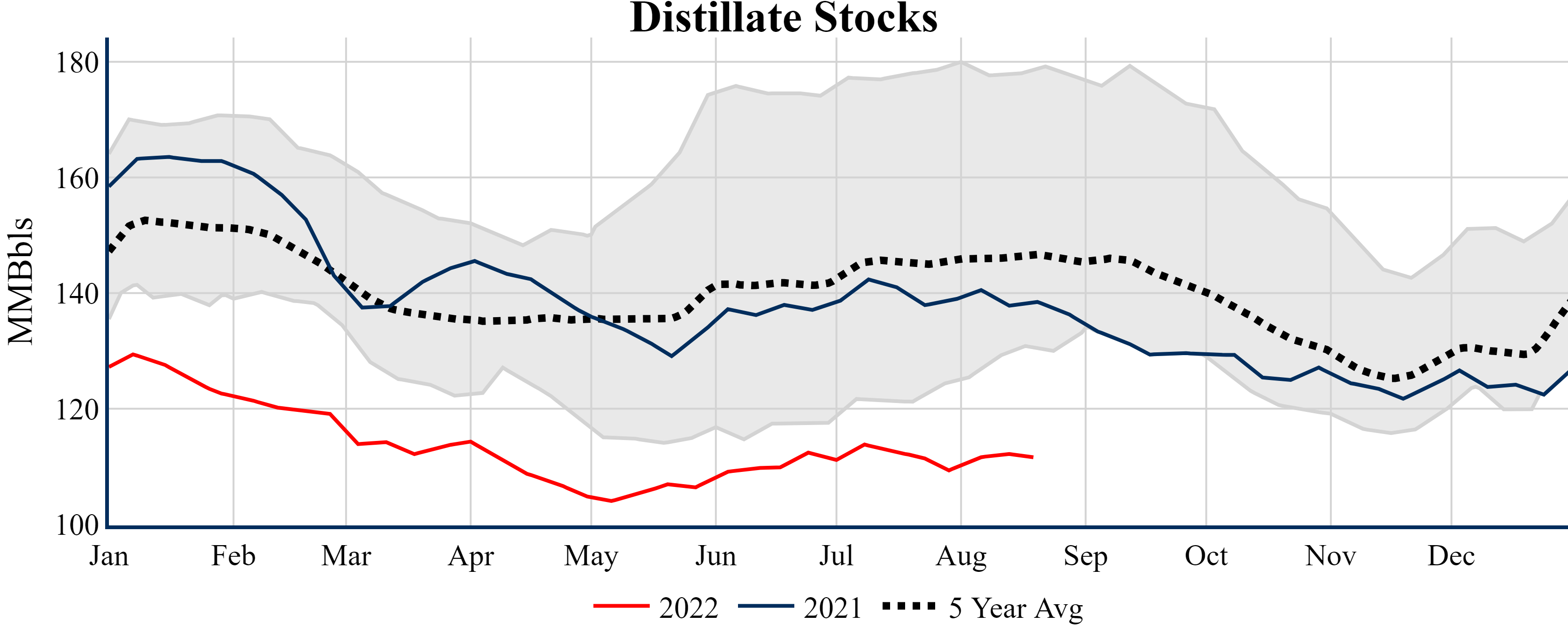 Inventories for the U.S. are now at a down of 11.30 MMBbls (-2.6%) to last year, and a deficit of 27.60 MMBbls (-6.1%) to the five-year average.