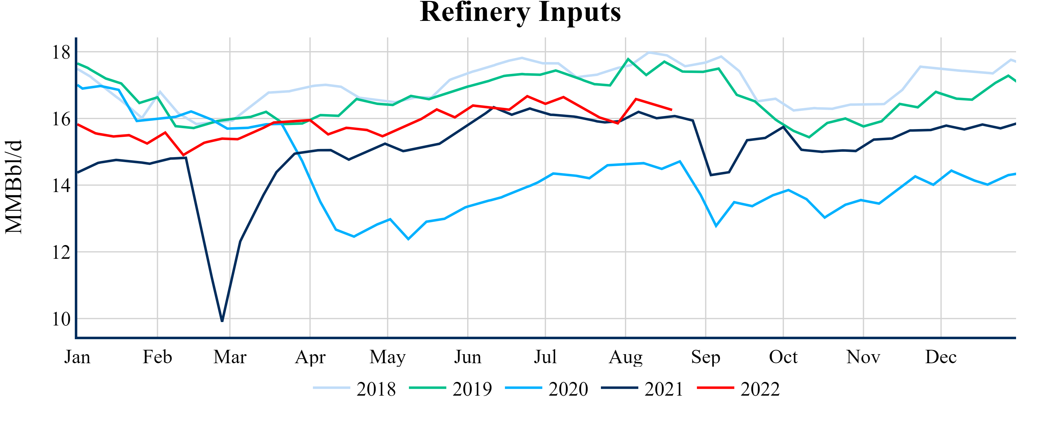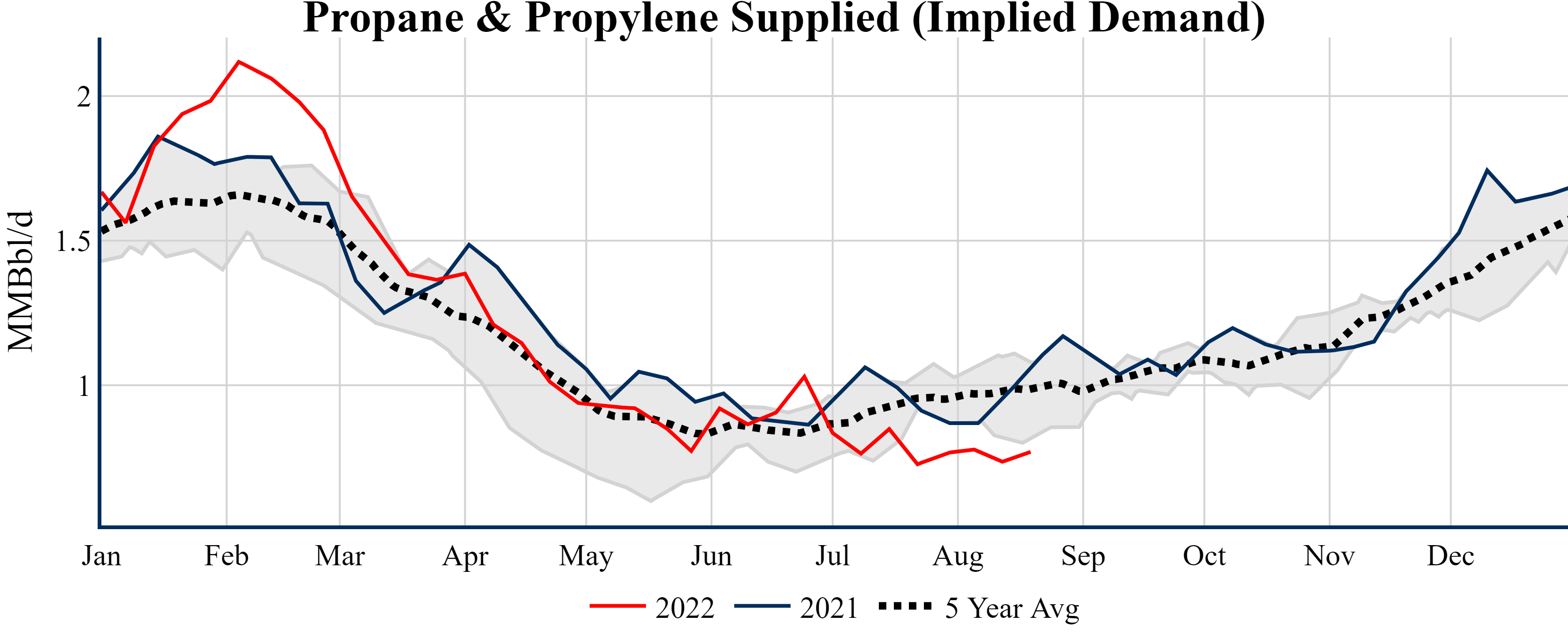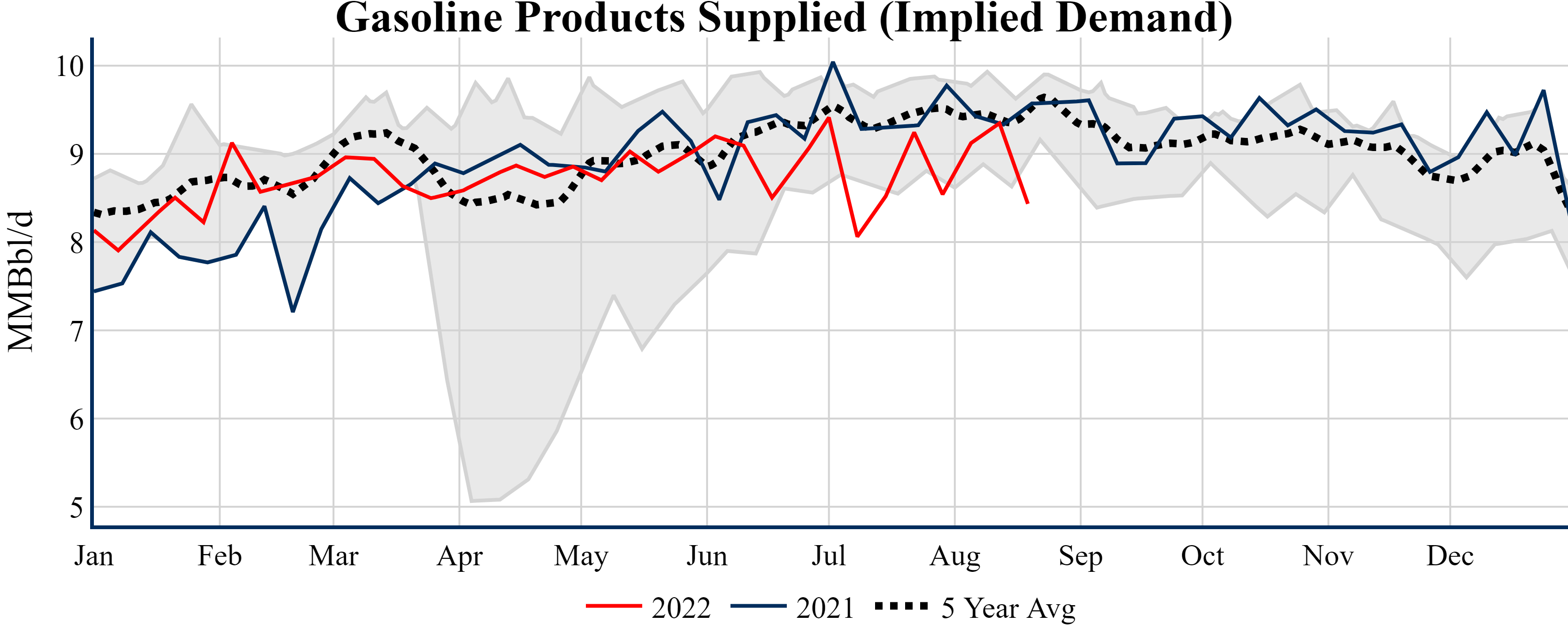 Inventories for the U.S. are now at a down of 11.30 MMBbls (-2.6%) to last year, and a deficit of 27.60 MMBbls (-6.1%) to the five-year average.