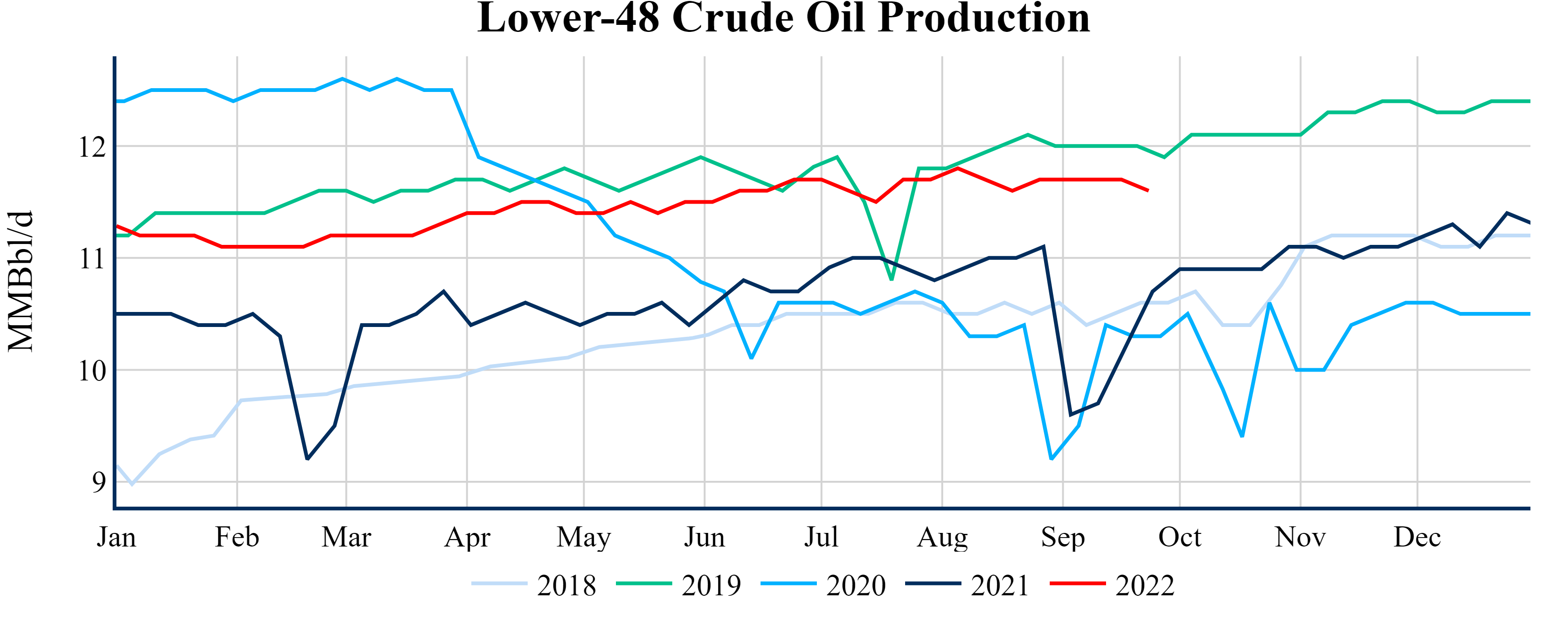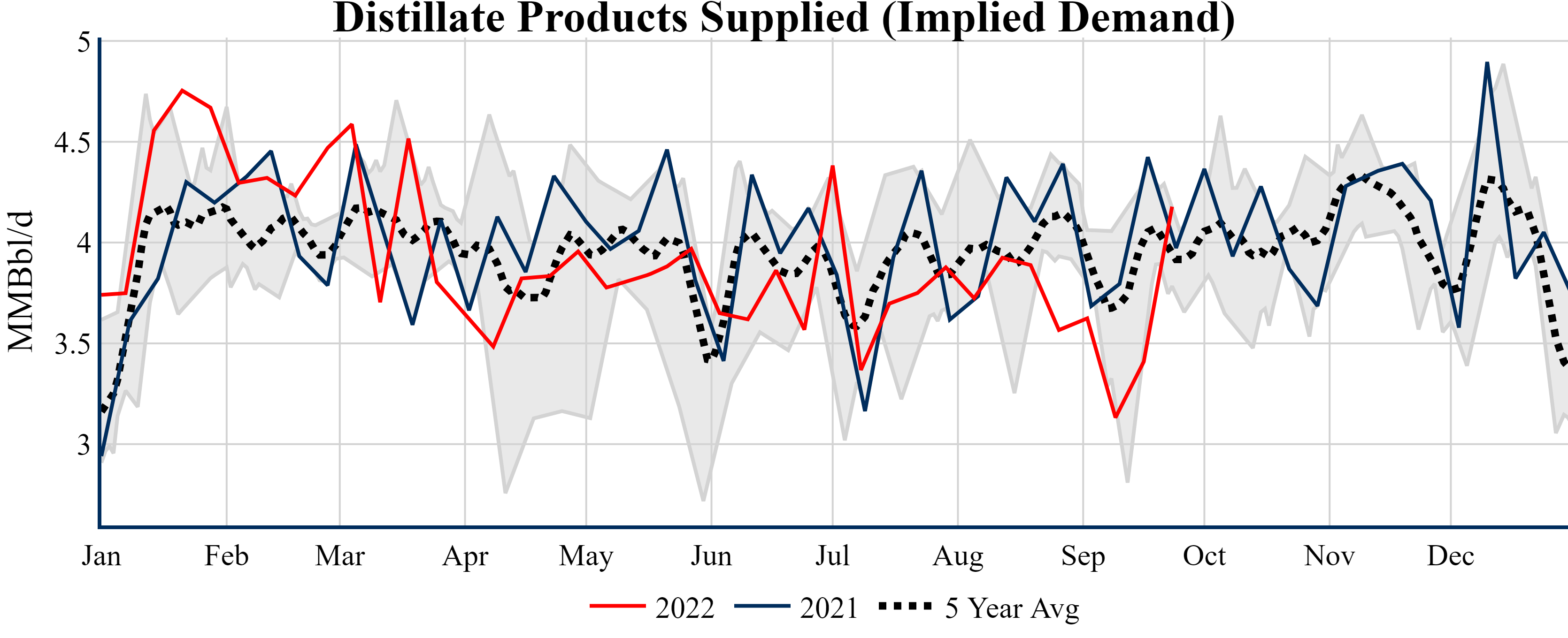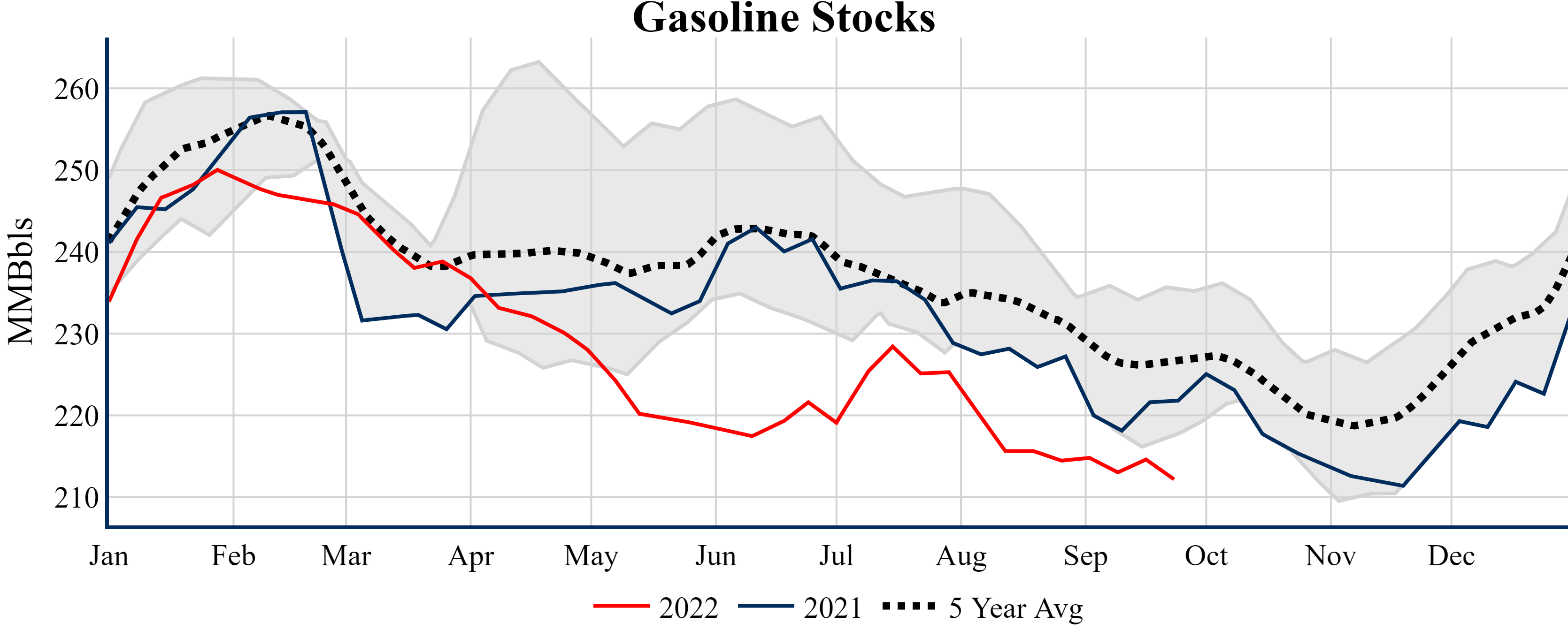 Inventories for the U.S. are now at a surplus of 12.70 MMBbls (3.0%) to last year, and a deficit of 9.50 MMBbls (-2.2%) to the five-year average.