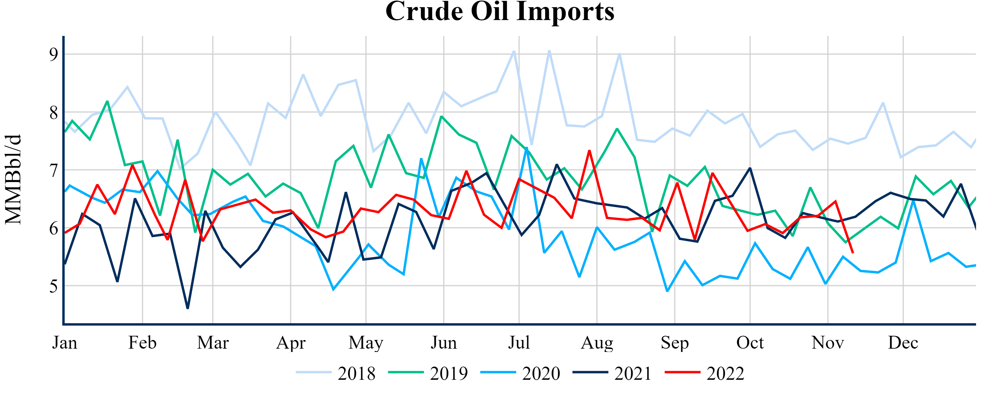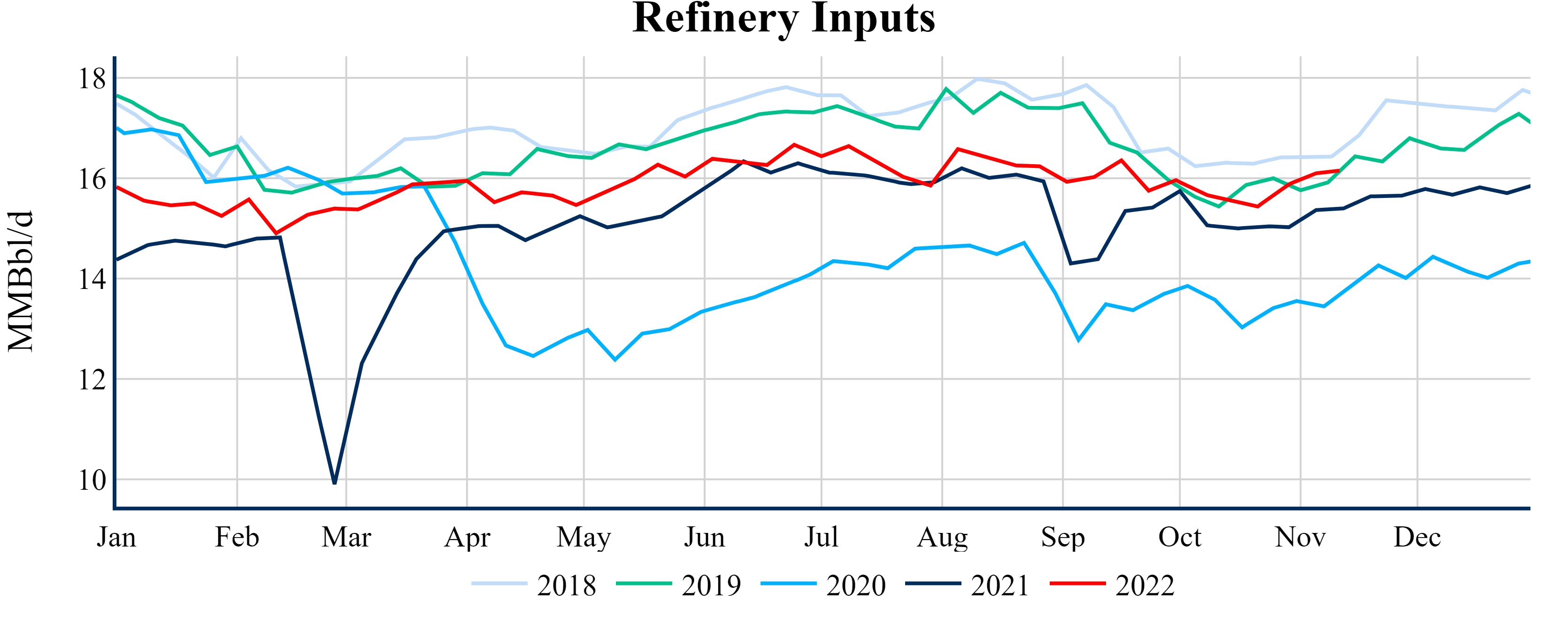 Inventories for the U.S. are now at a surplus of 2.10 MMBbls (0.5%) to last year, and a deficit of 19.50 MMBbls (-4.3%) to the five-year average.