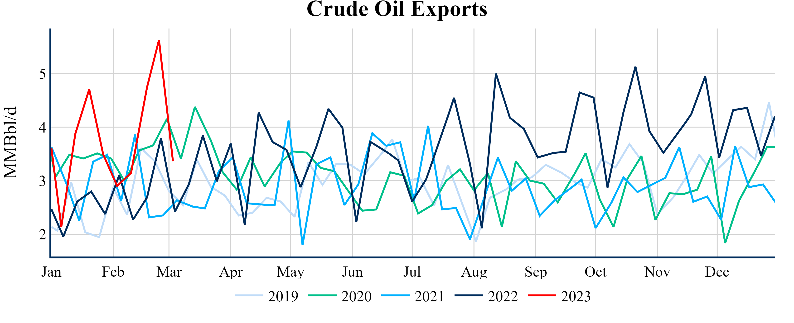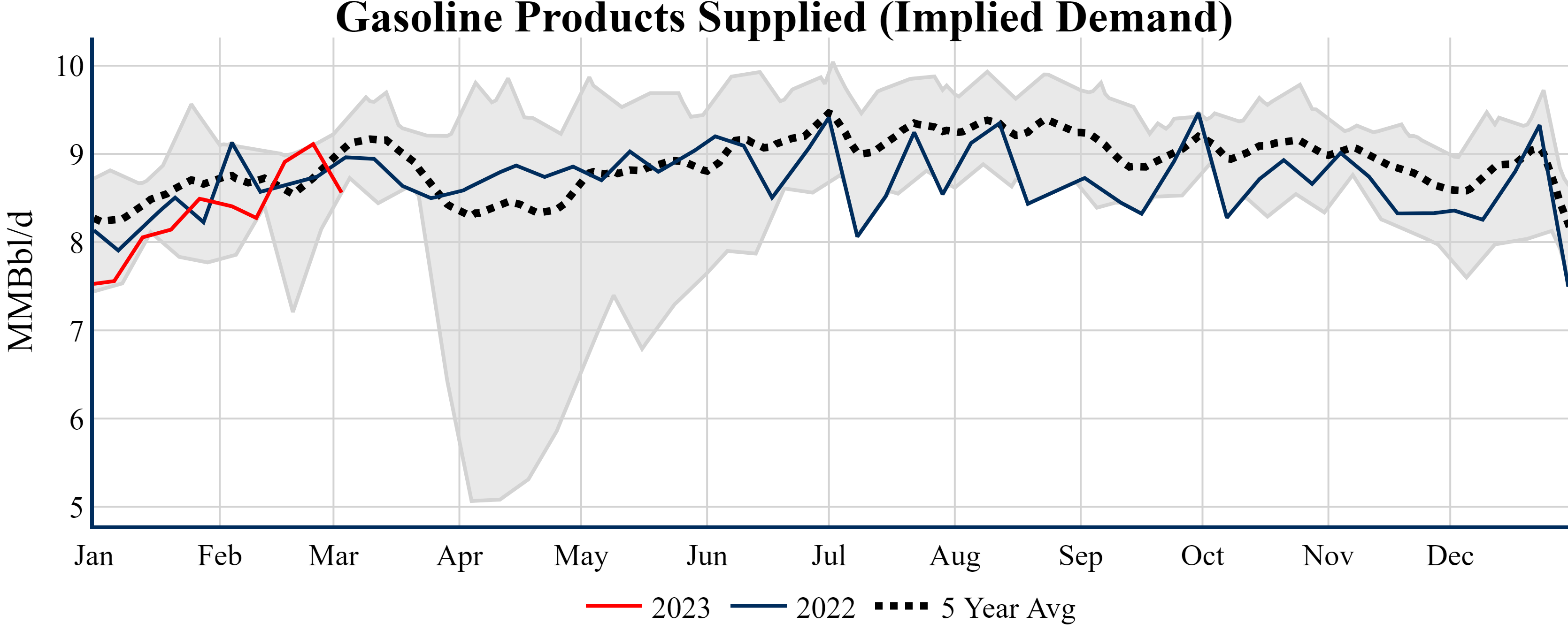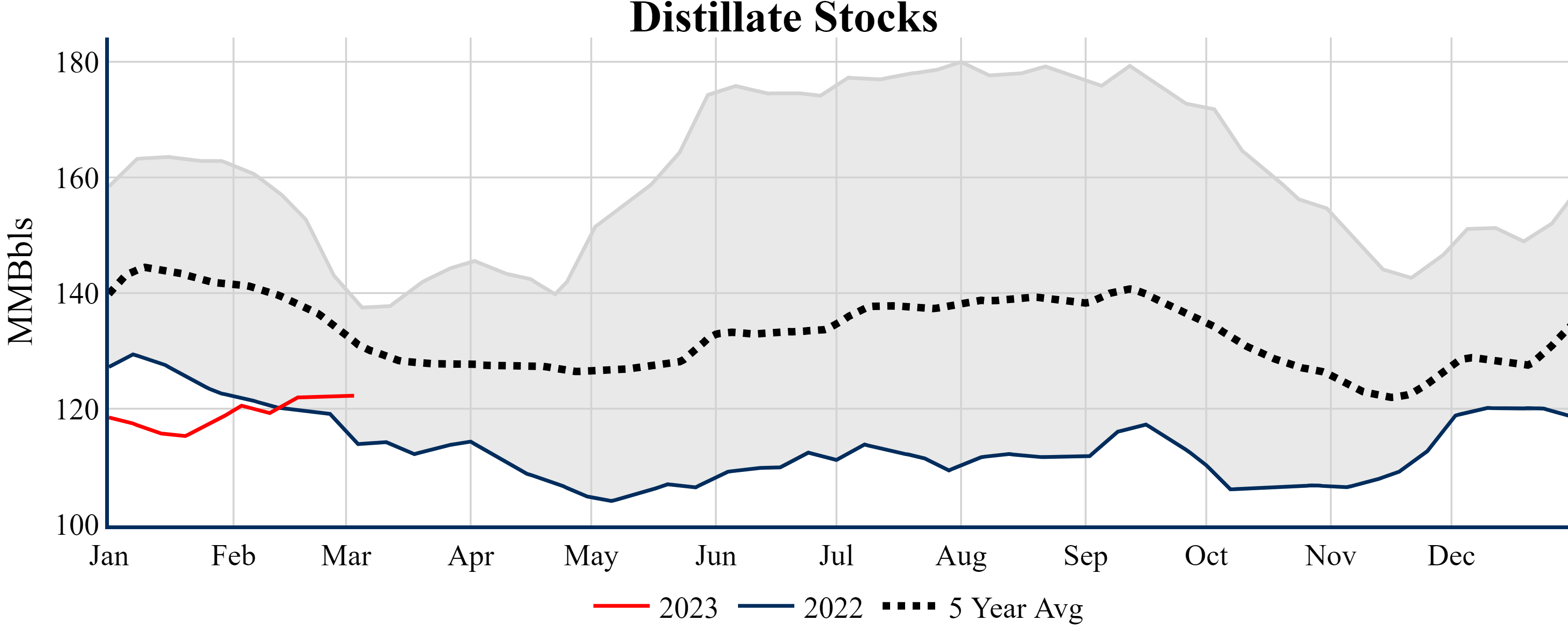 Inventories for the U.S. are now at a surplus of 66.70 MMBbls (16.2%) to last year, and a surplus of 32.10 MMBbls (7.2%) to the five-year average.