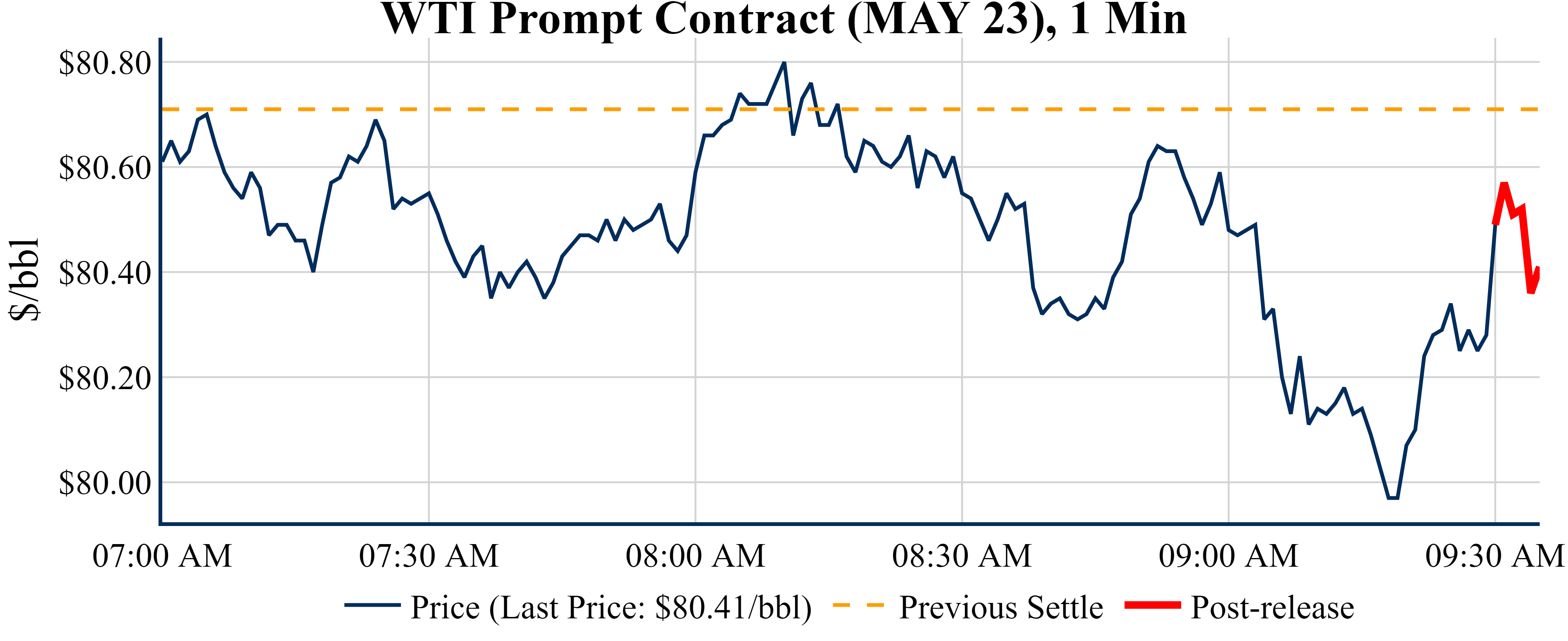 Prices were down in the five minutes following the announcement, to $80.41 from $80.49 just before 09:30 AM.