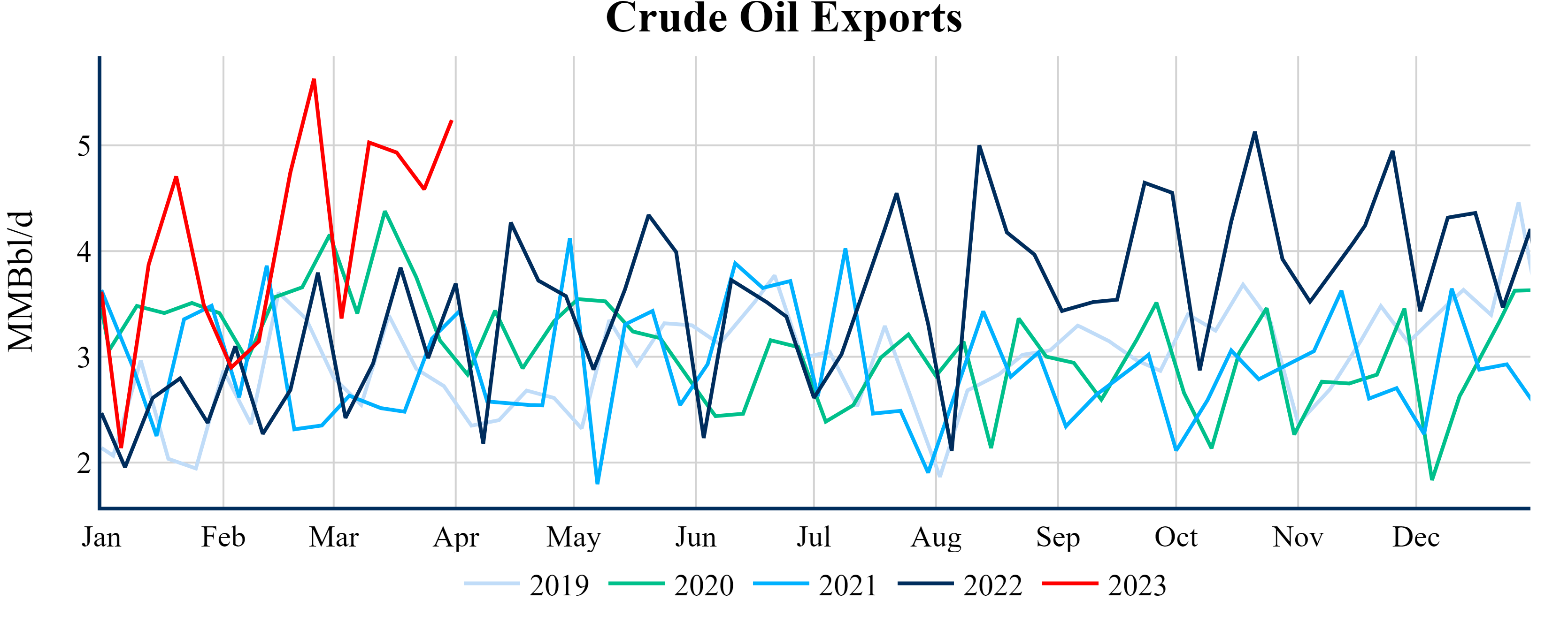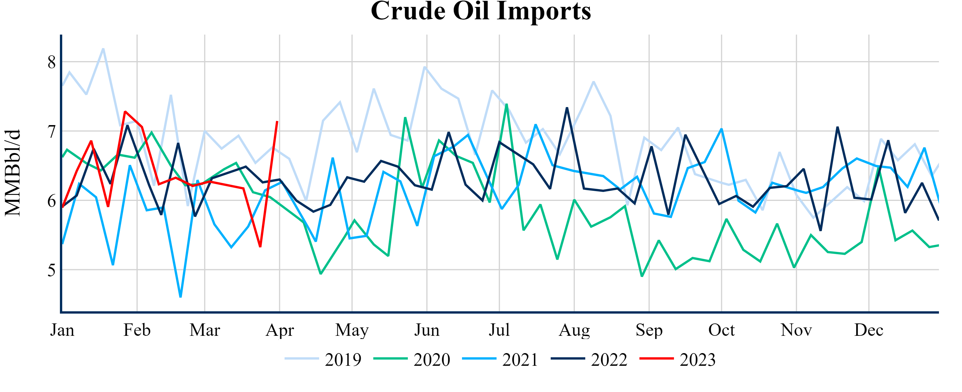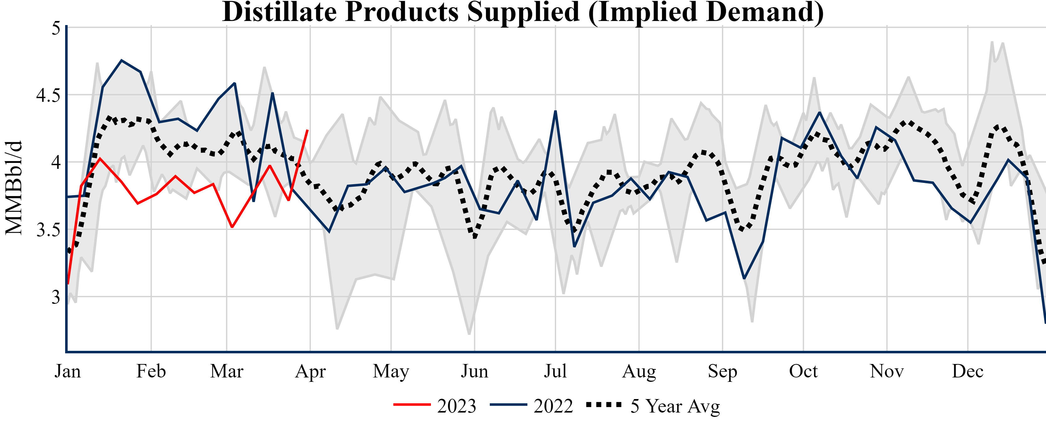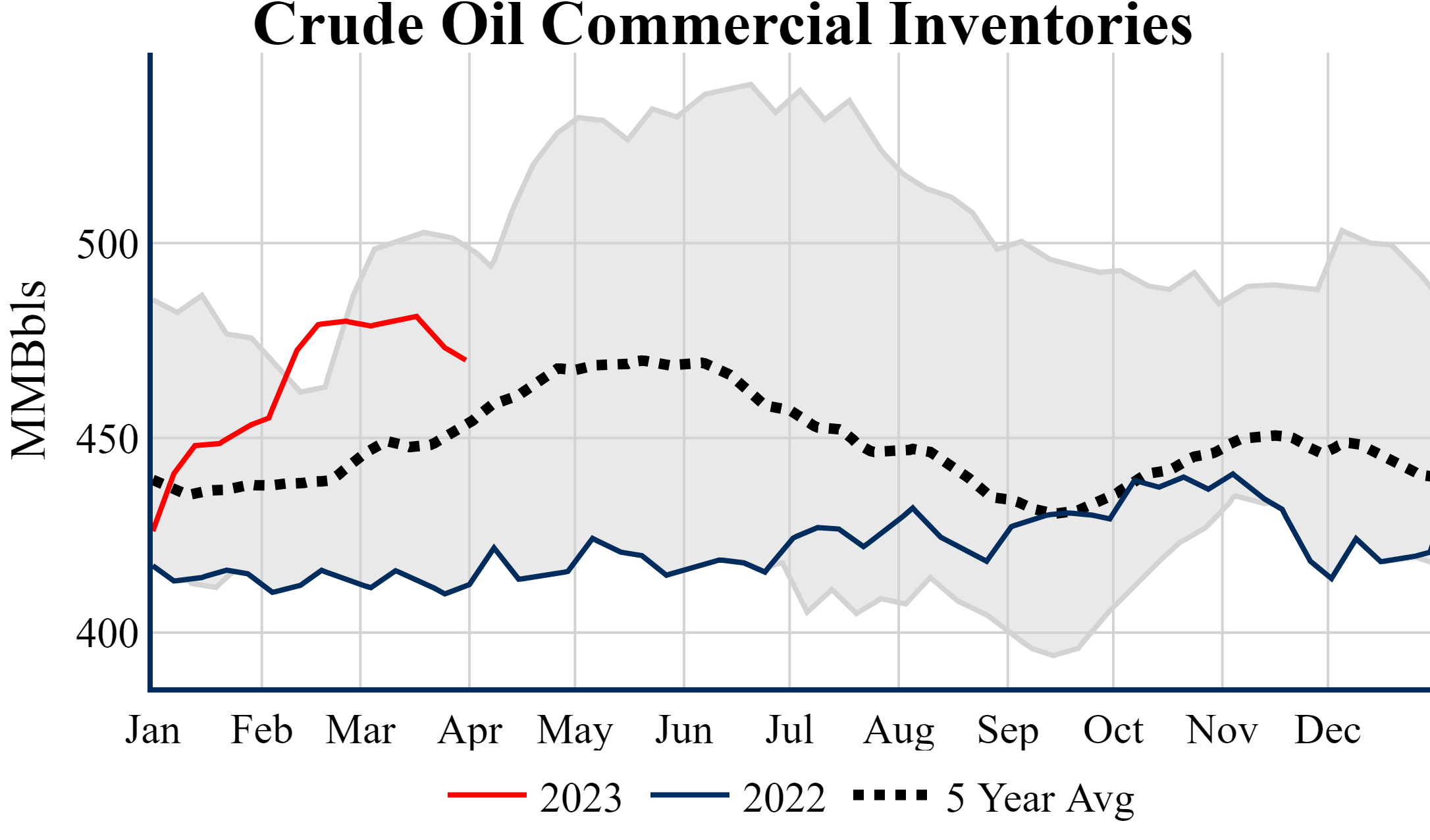 Inventories for the U.S. are now at a surplus of 57.90 MMBbls (14.1%) to last year, and a surplus of 17.10 MMBbls (3.8%) to the five-year average.