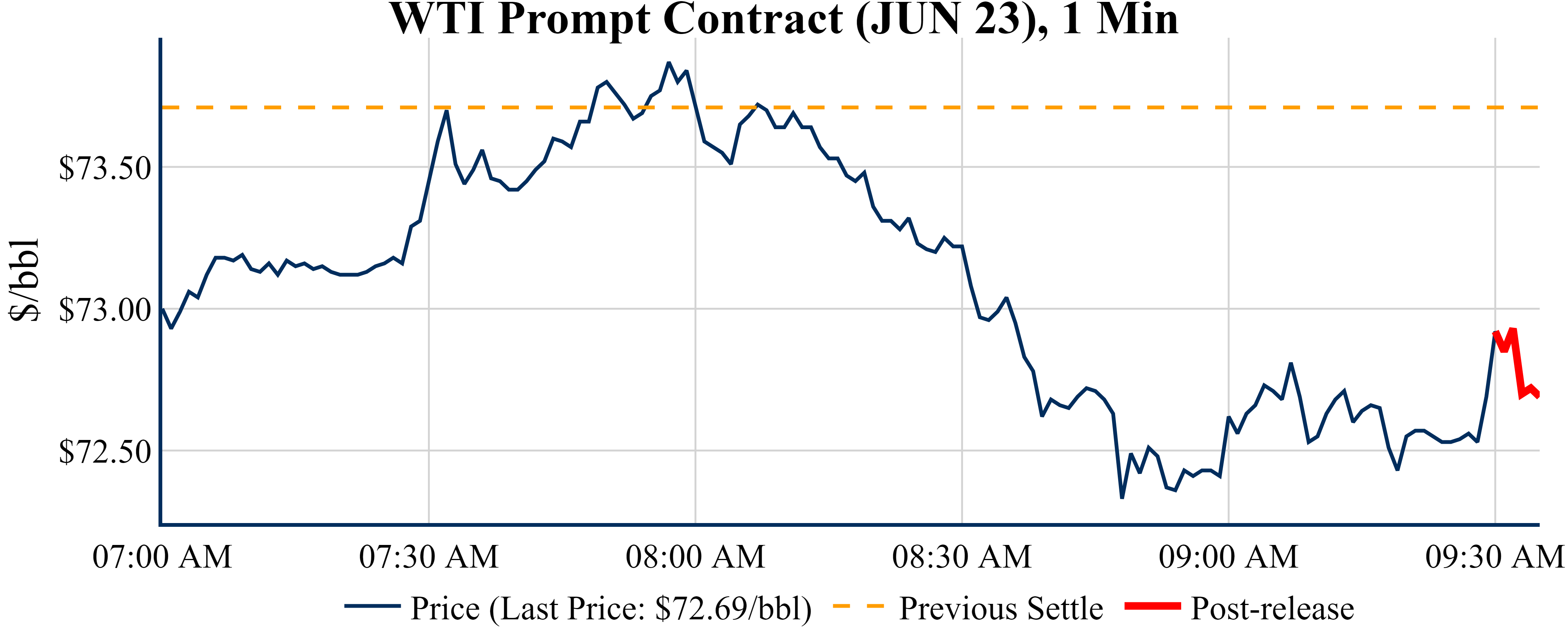 Prices were down in the five minutes following the announcement, to $72.69 from $72.92 just before 09:30 AM.