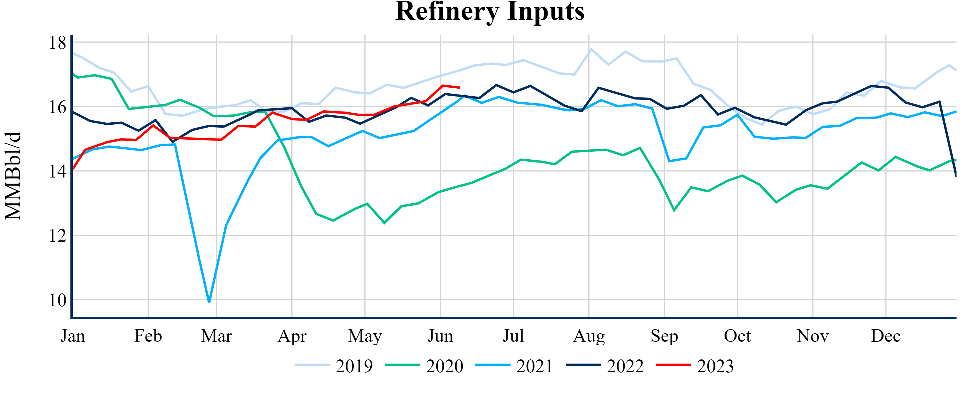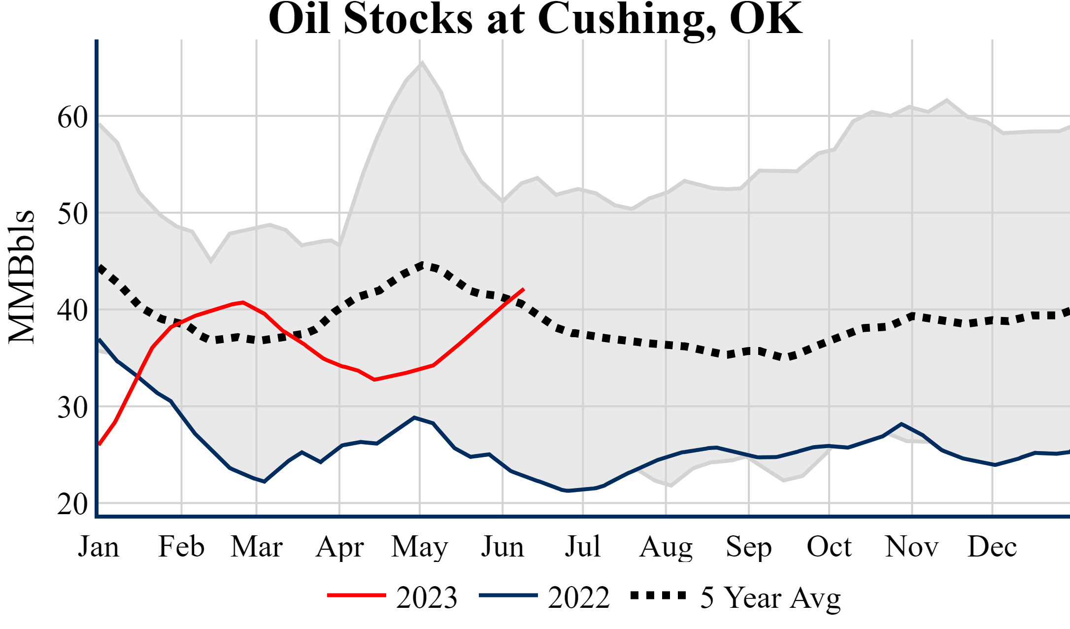 Inventories for the U.S. are now at a surplus of 48.70 MMBbls (11.6%) to last year, and a deficit of 1.30 MMBbls (-0.3%) to the five-year average.