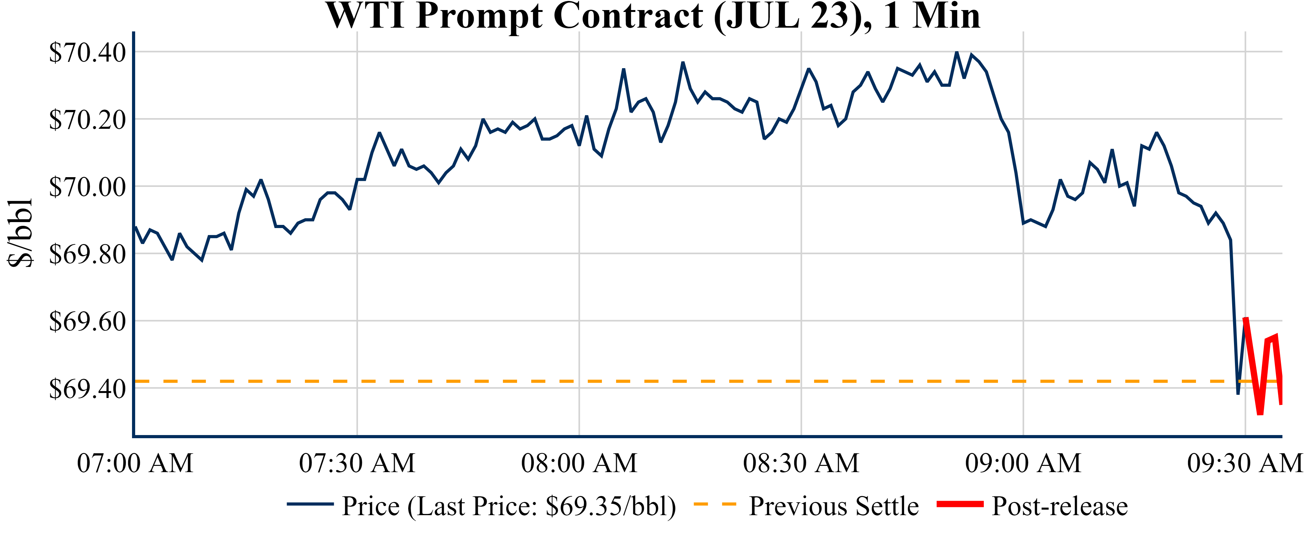 Prices were down in the five minutes following the announcement, to $69.35 from $69.61 just before 09:30 AM.
