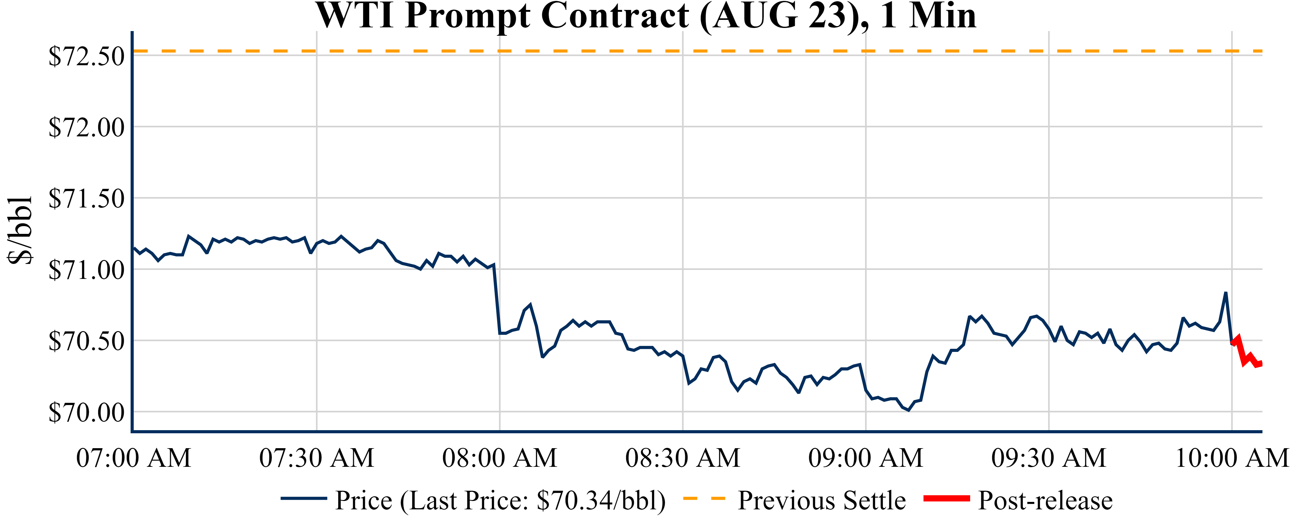 Prices were down in the five minutes following the announcement, to $70.34 from $70.47 just before 10:00 AM.