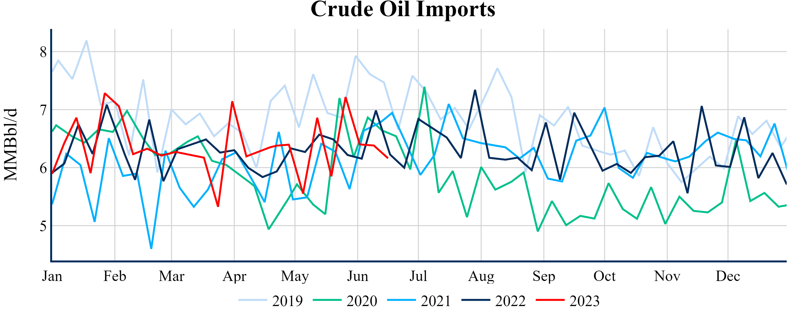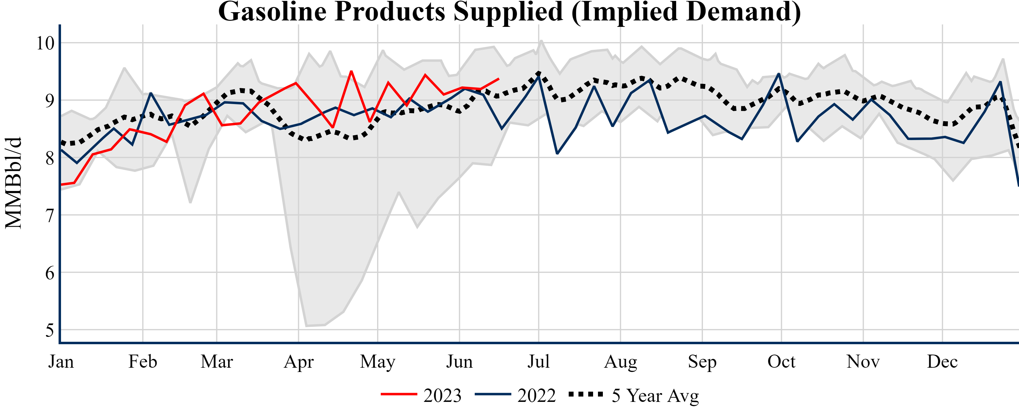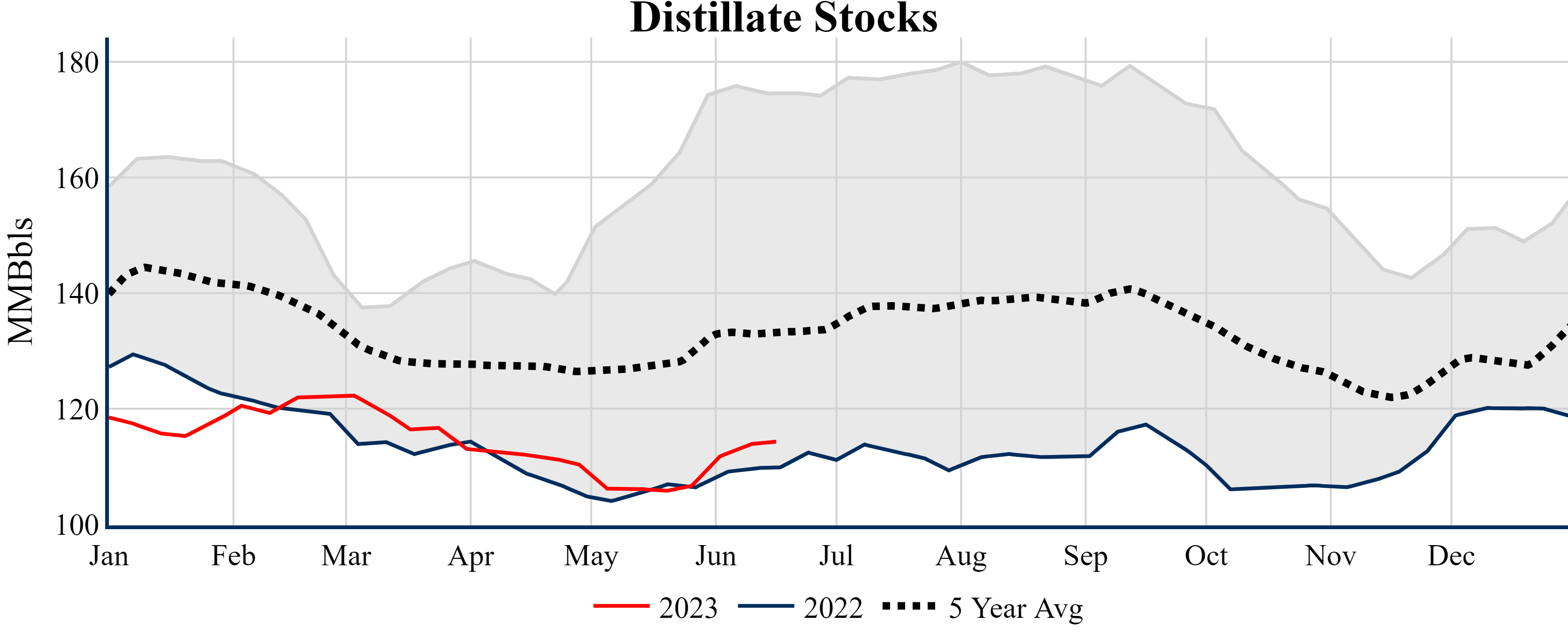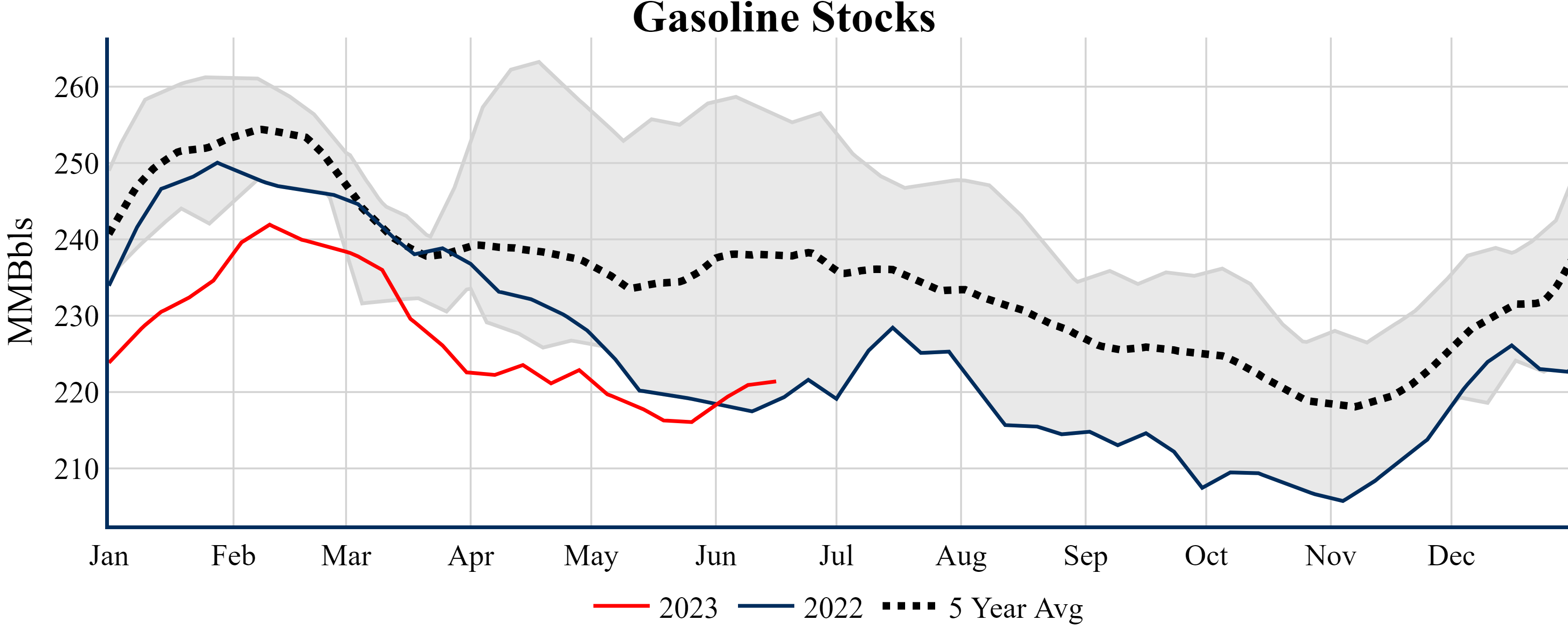 Inventories for the U.S. are now at a surplus of 44.90 MMBbls (10.7%) to last year, and a deficit of 1.40 MMBbls (-0.3%) to the five-year average.