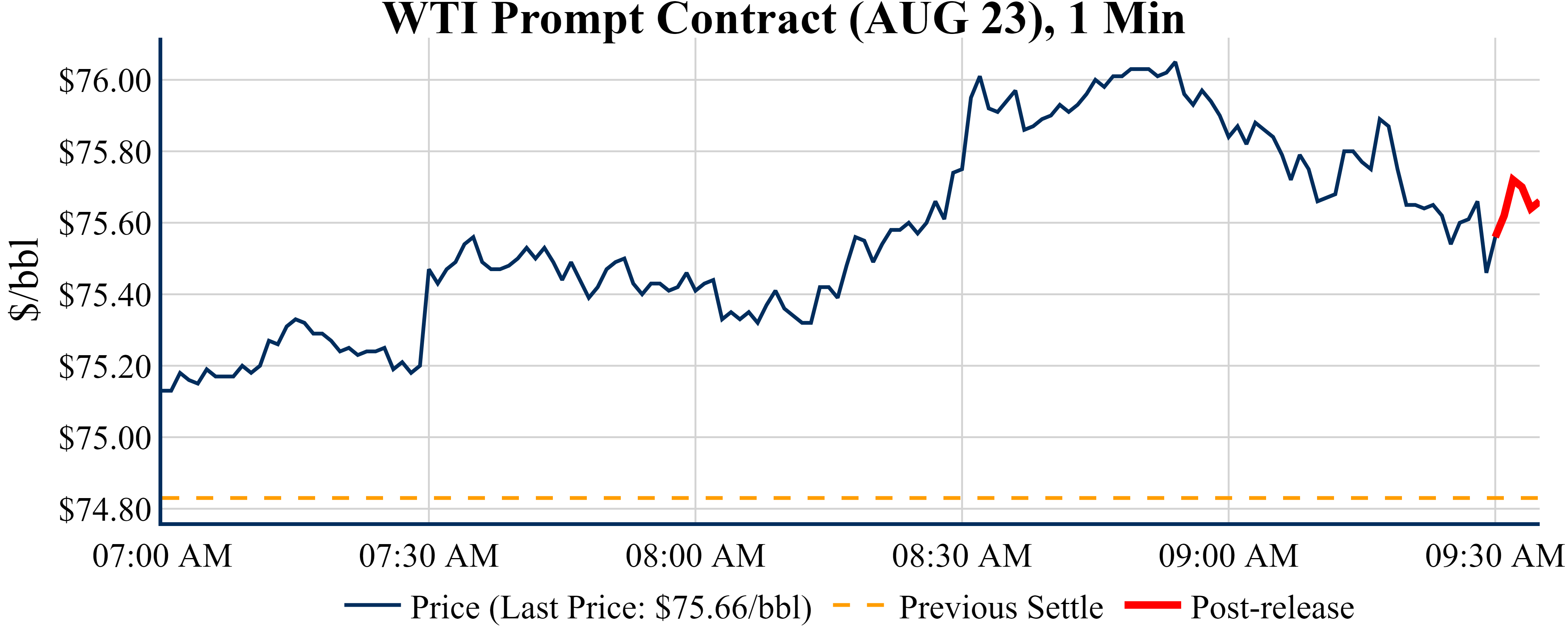 Prices were up in the five minutes following the announcement, to $75.66 from $75.56 just before 09:30 AM.
