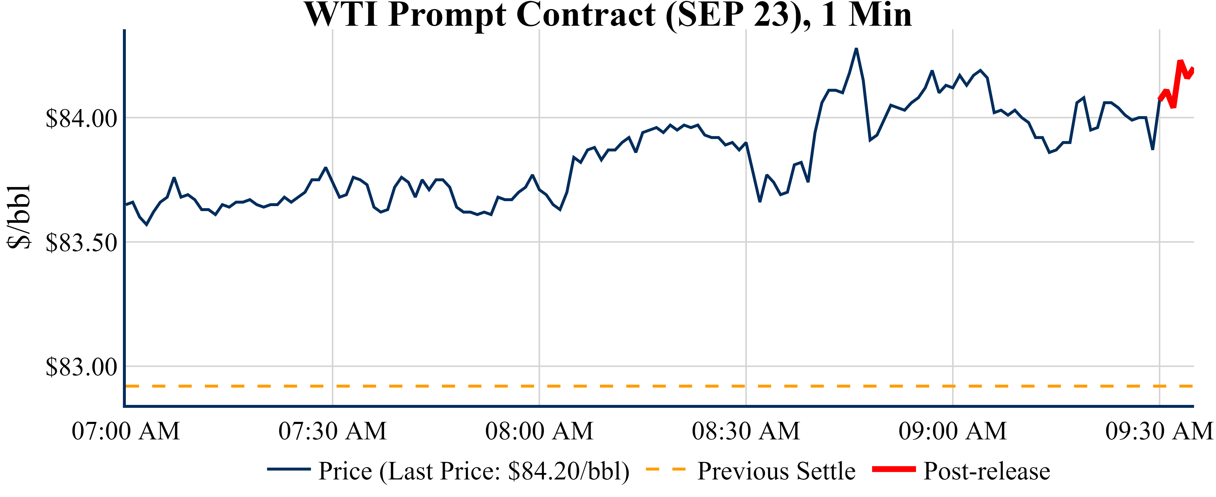 Prices were up in the five minutes following the announcement, to $84.20 from $84.07 just before 09:30 AM.