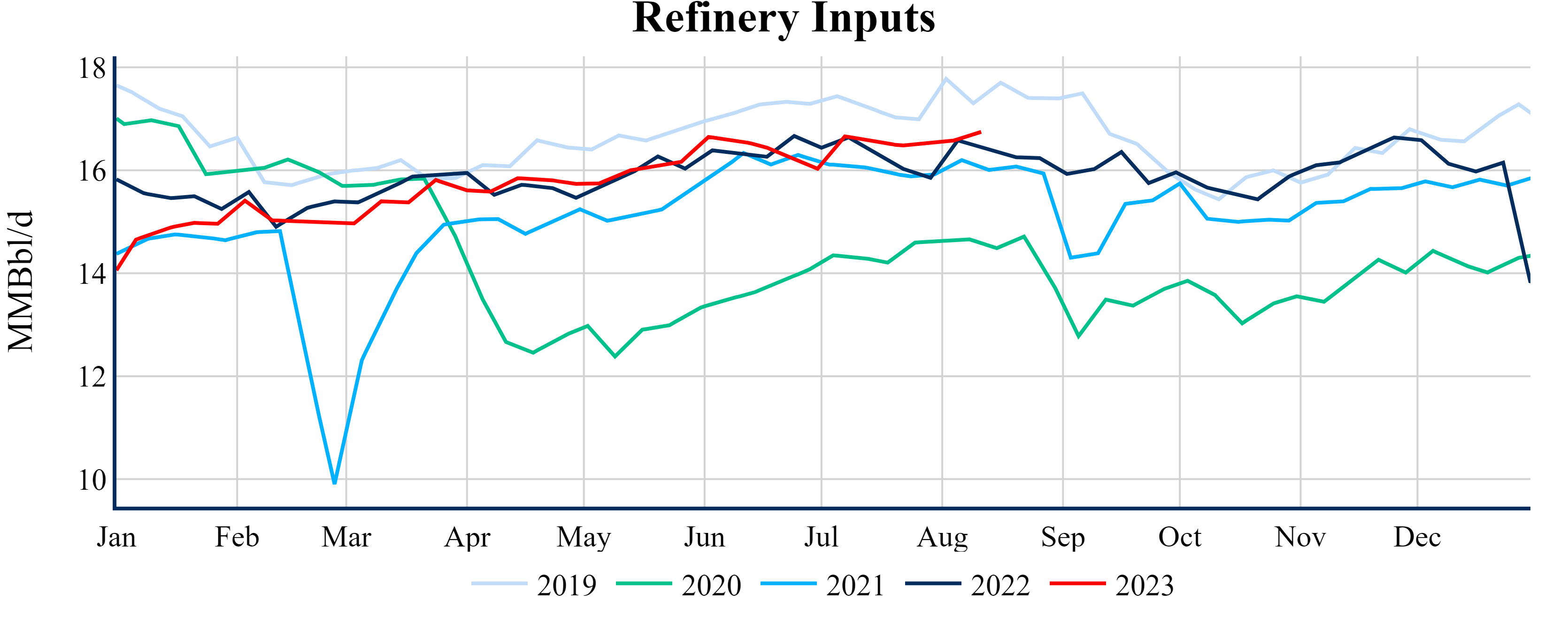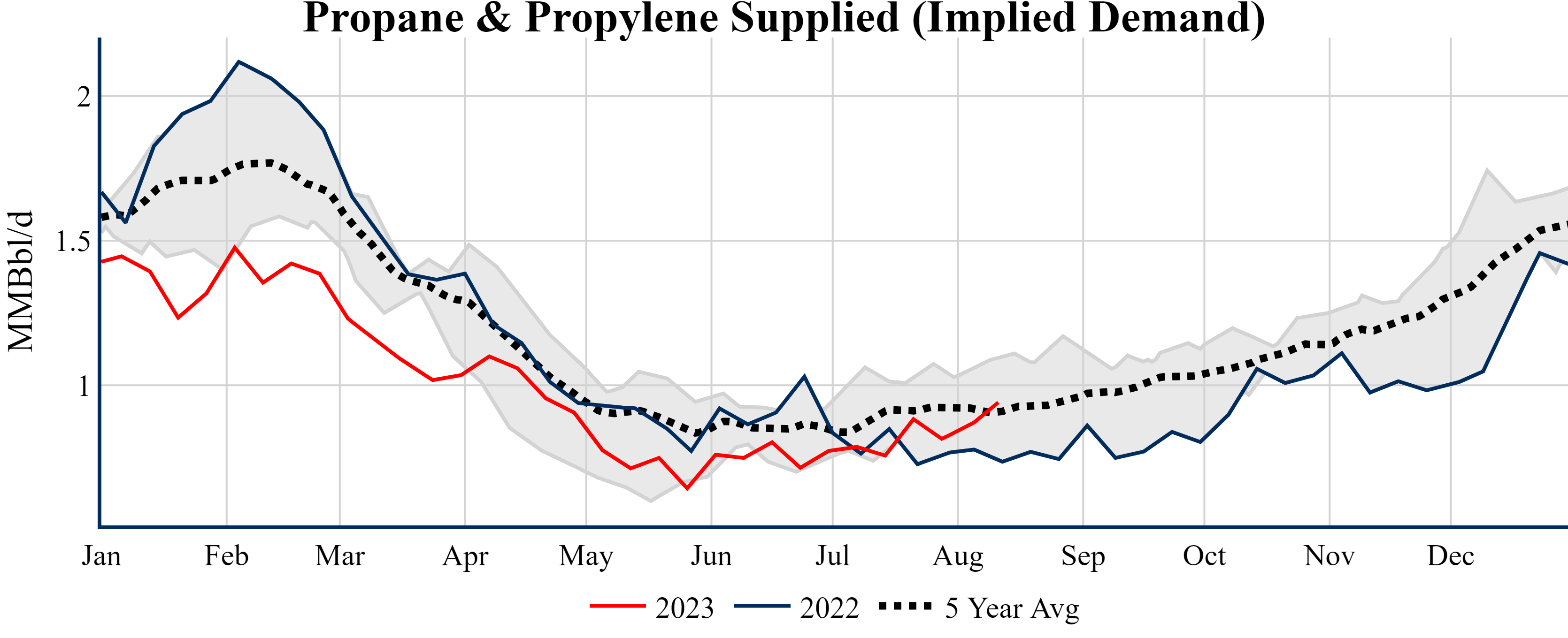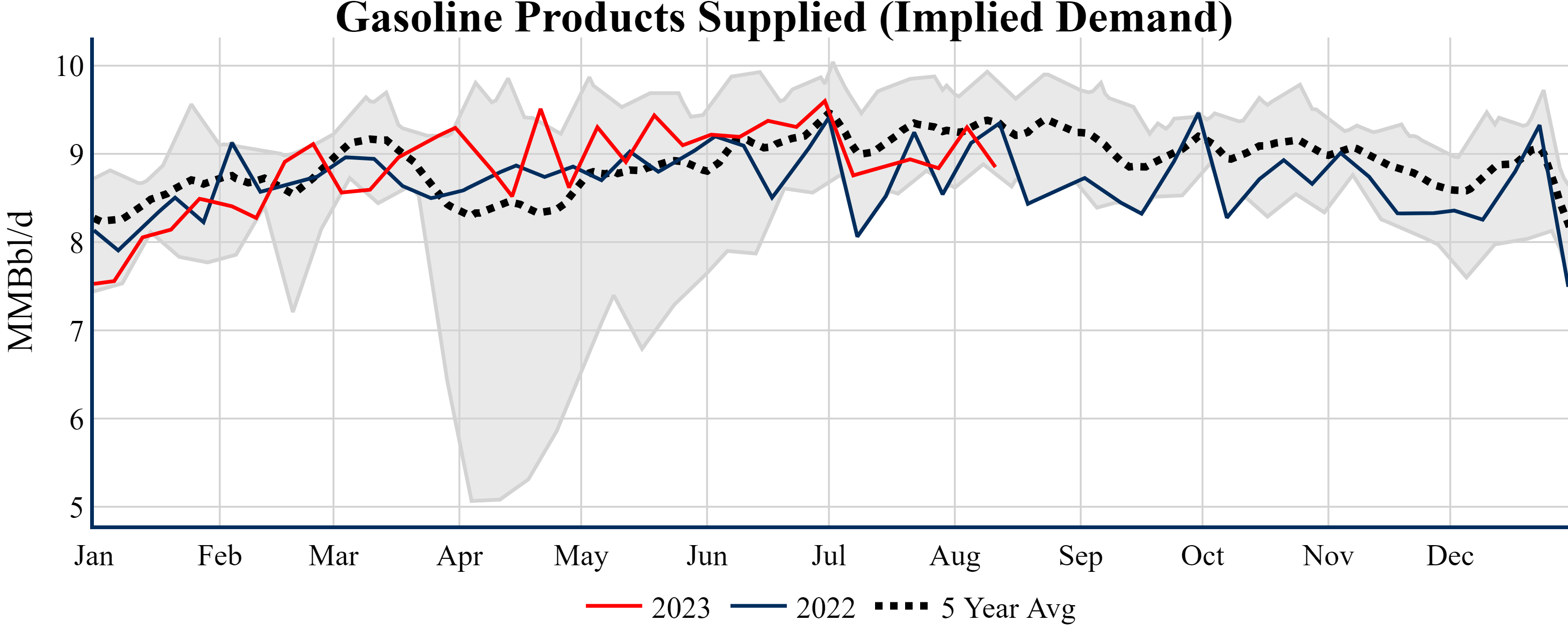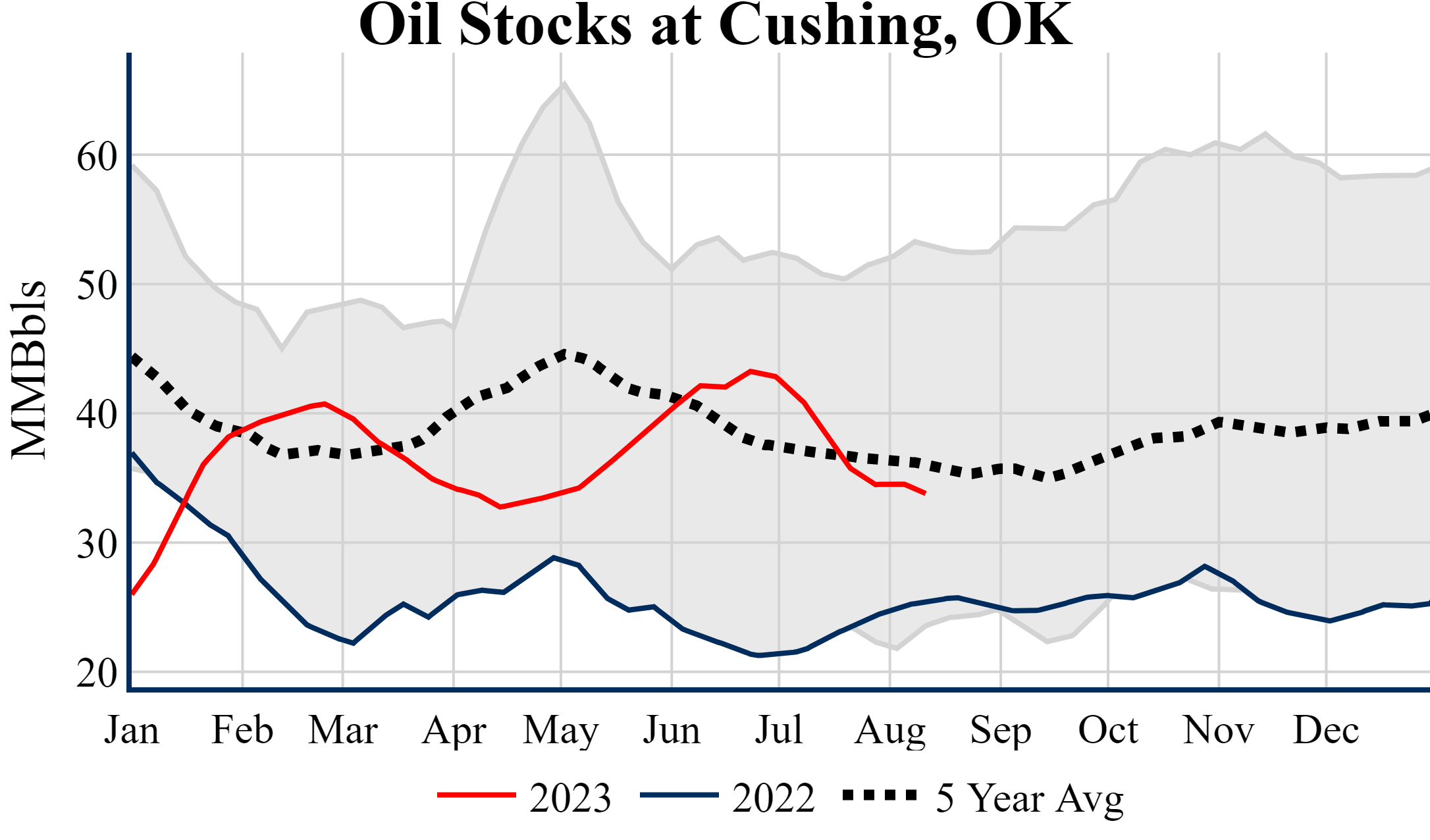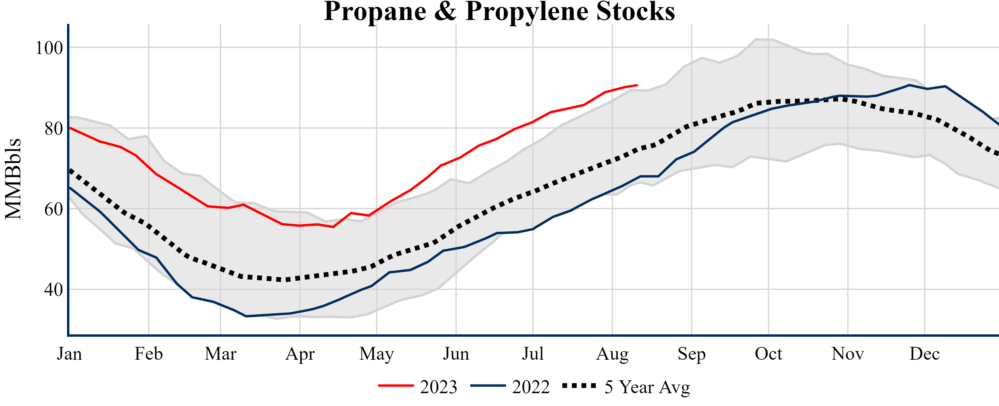 Inventories for the U.S. are now at a surplus of 13.70 MMBbls (3.2%) to last year, and a deficit of 6.10 MMBbls (-1.4%) to the five-year average.
