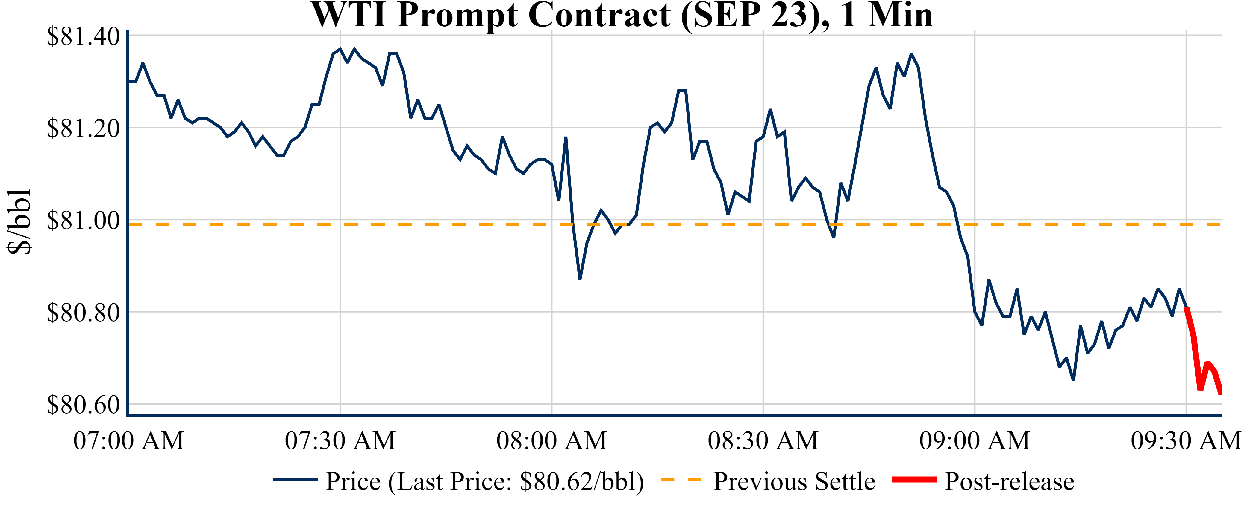 Prices were down in the five minutes following the announcement, to $80.62 from $80.81 just before 09:30 AM.
