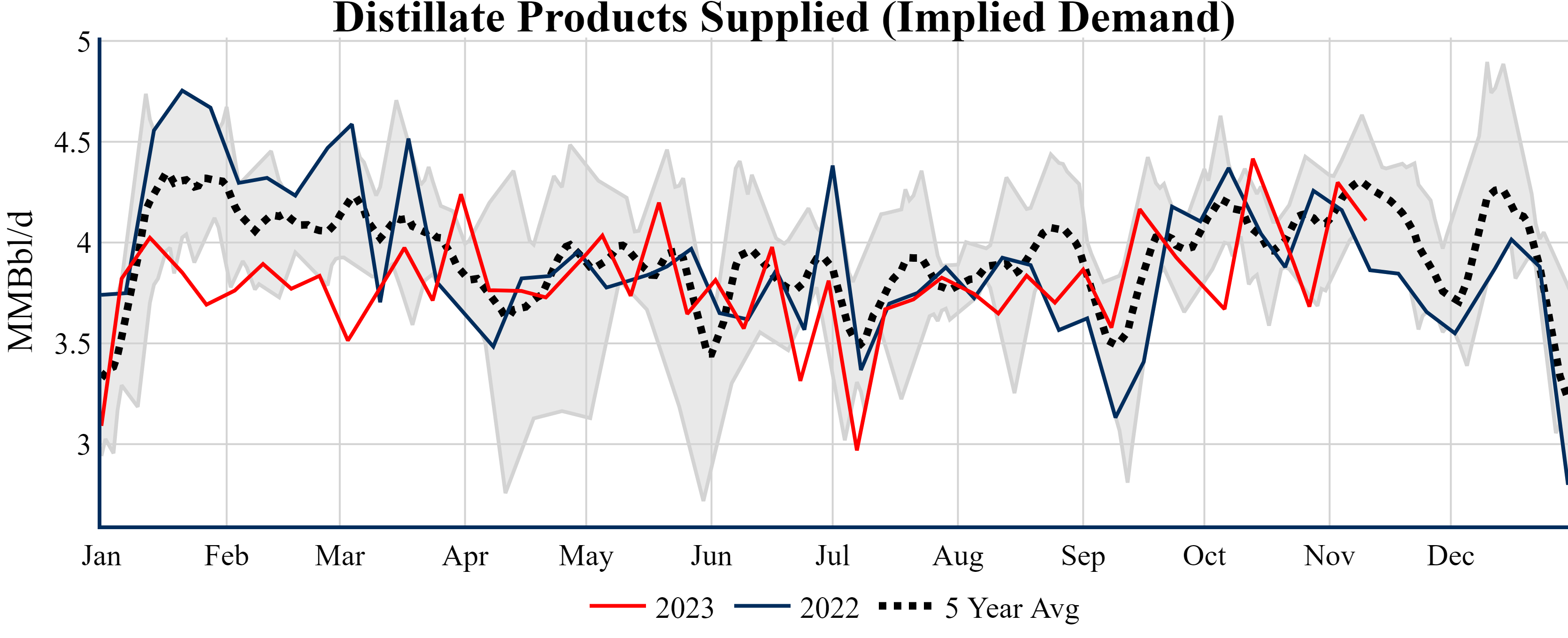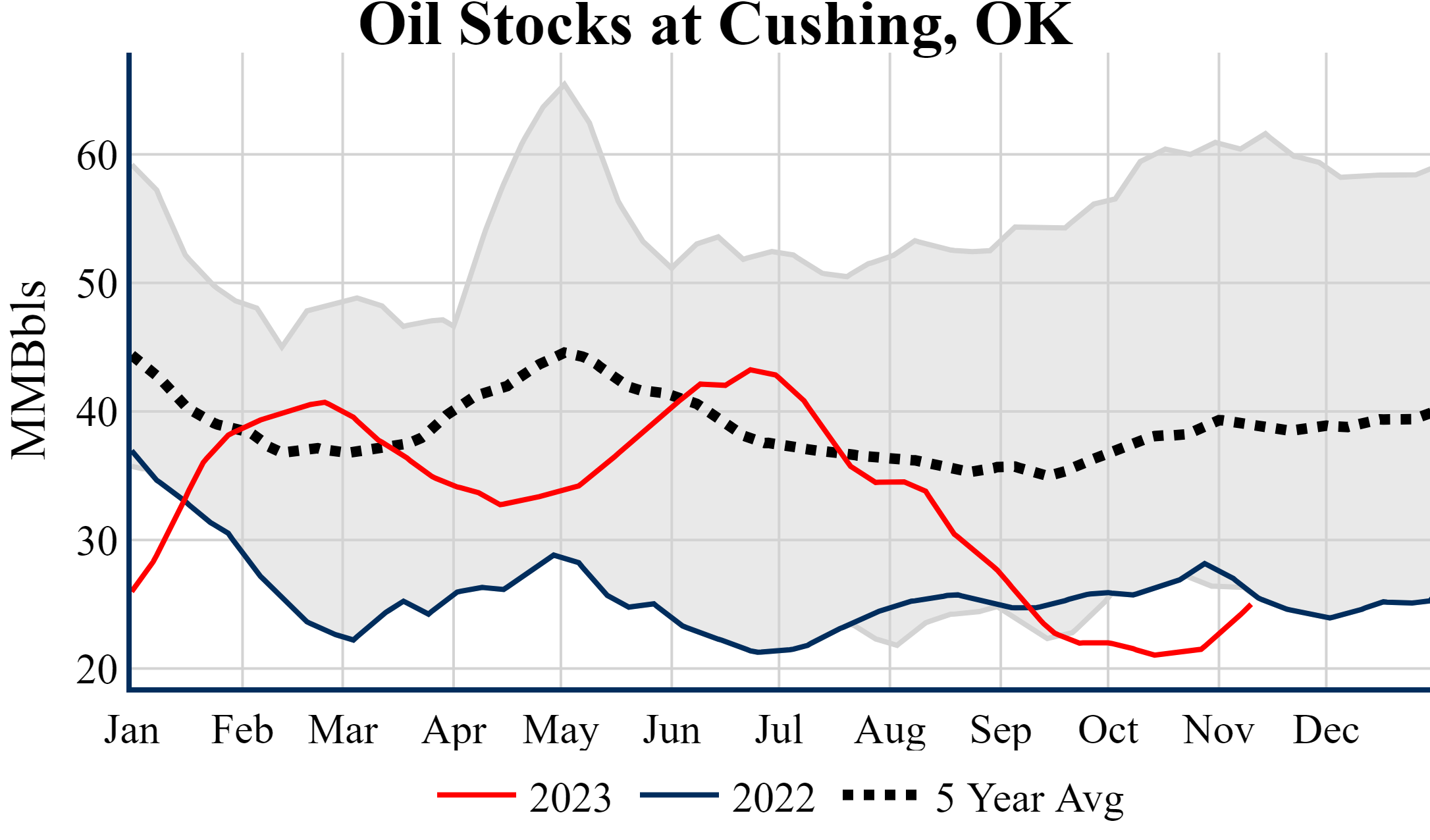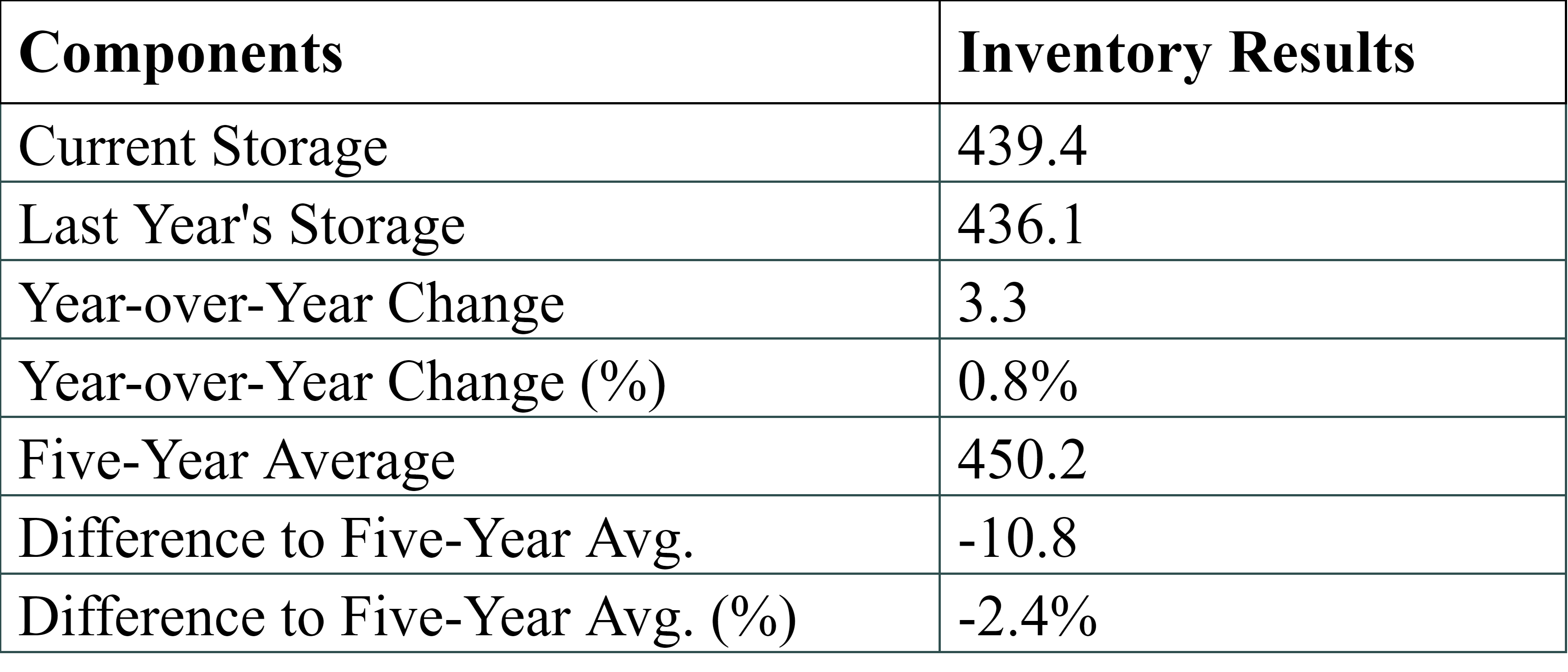 Inventories for the U.S. are now at a surplus of 3.30 MMBbls (0.8%) to last year, and a deficit of 10.80 MMBbls (-2.4%) to the five-year average.