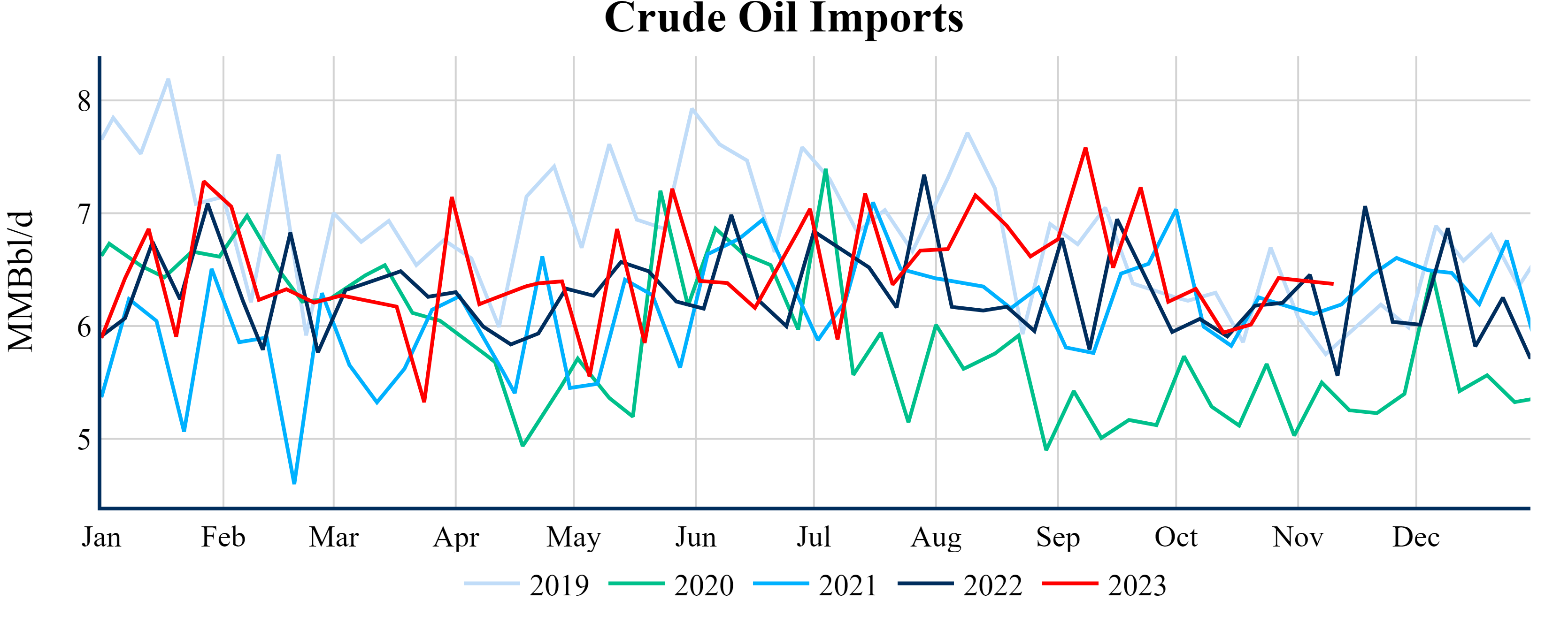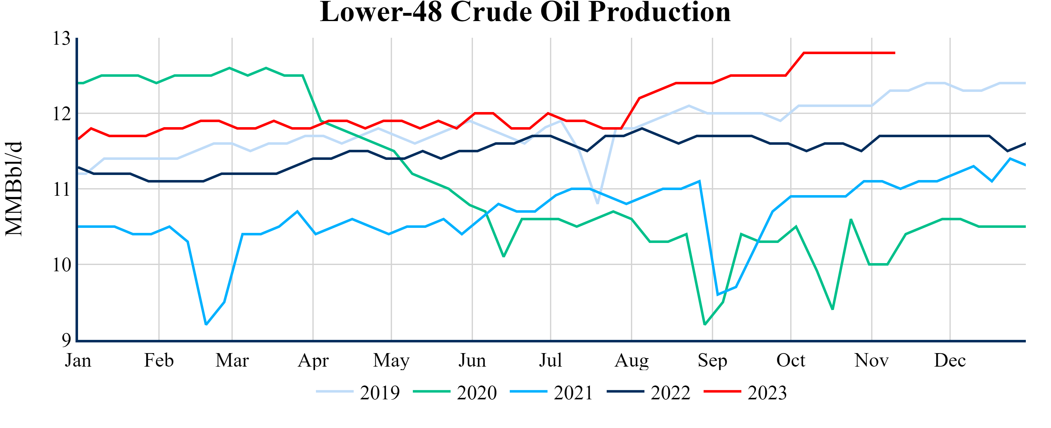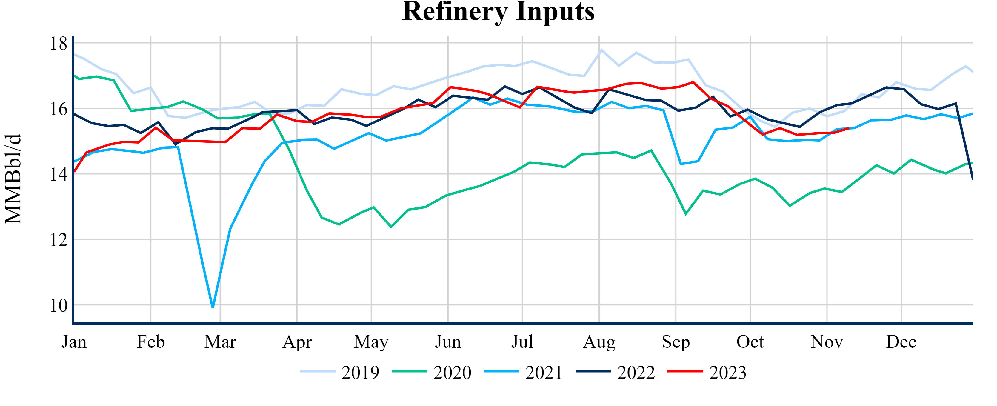 Inventories for the U.S. are now at a surplus of 3.30 MMBbls (0.8%) to last year, and a deficit of 10.80 MMBbls (-2.4%) to the five-year average.