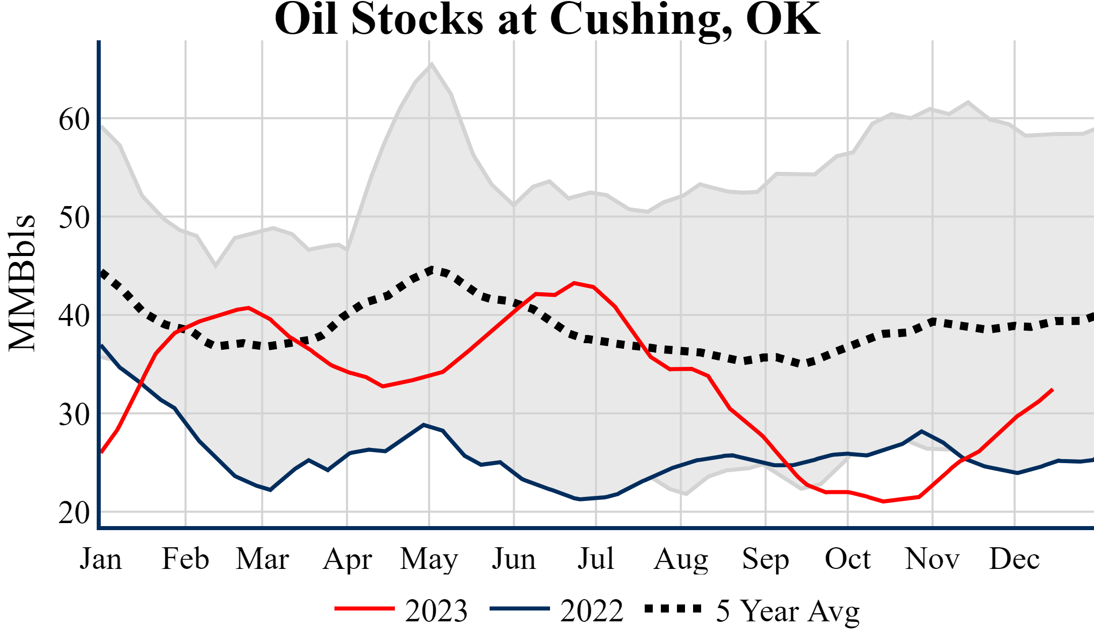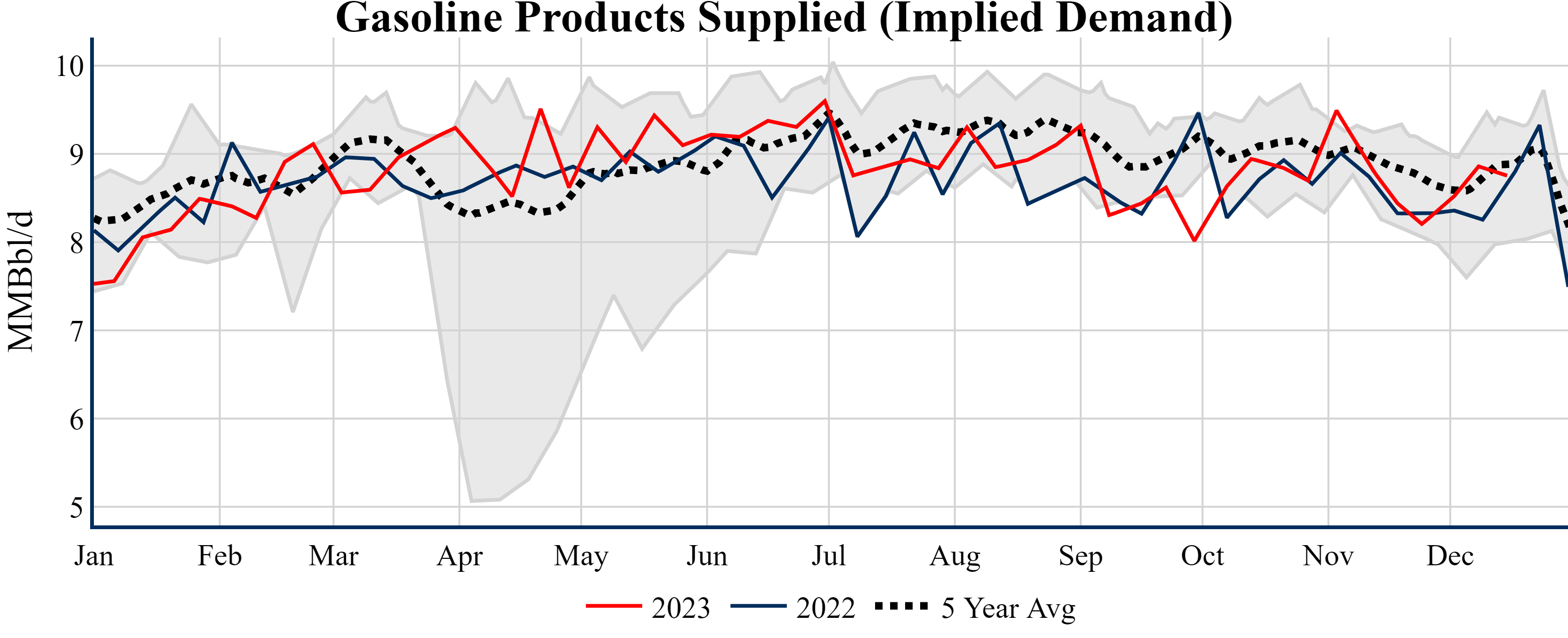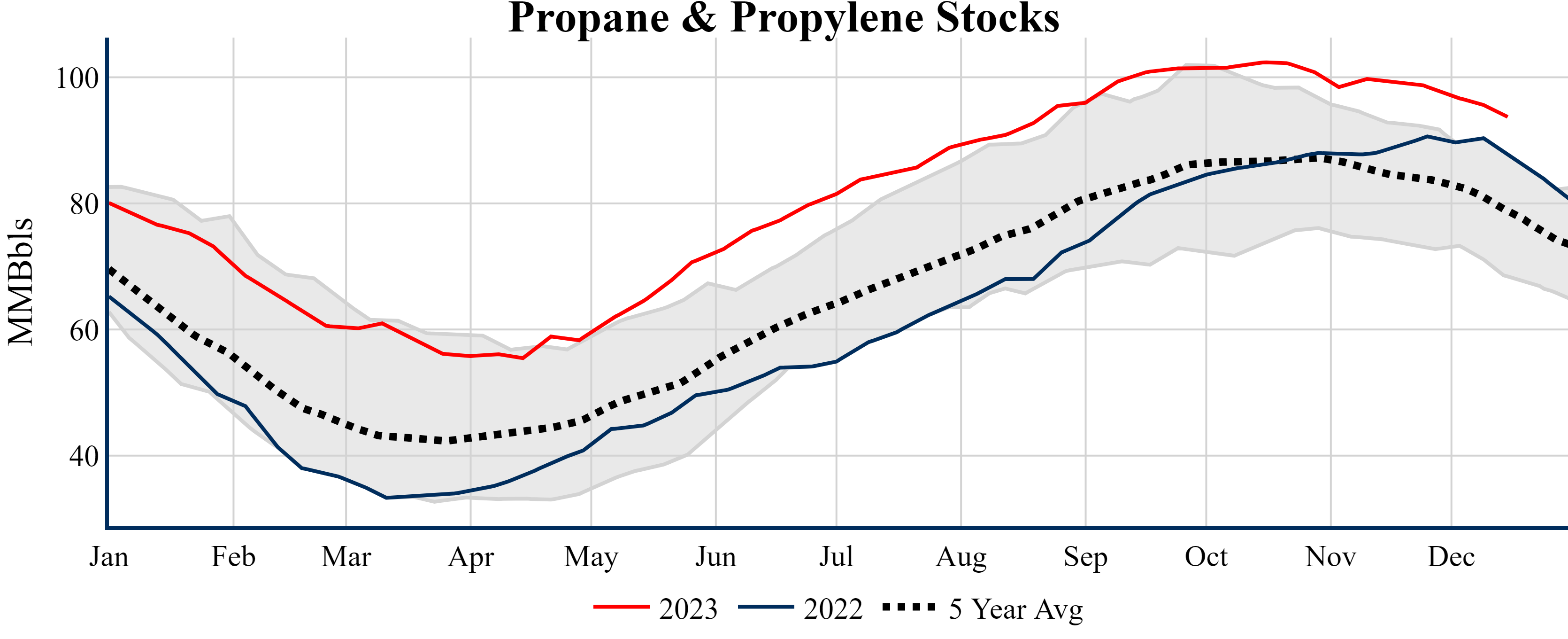 Inventories for the U.S. are now at a surplus of 24.60 MMBbls (5.9%) to last year, and a deficit of 2.40 MMBbls (-0.5%) to the five-year average.