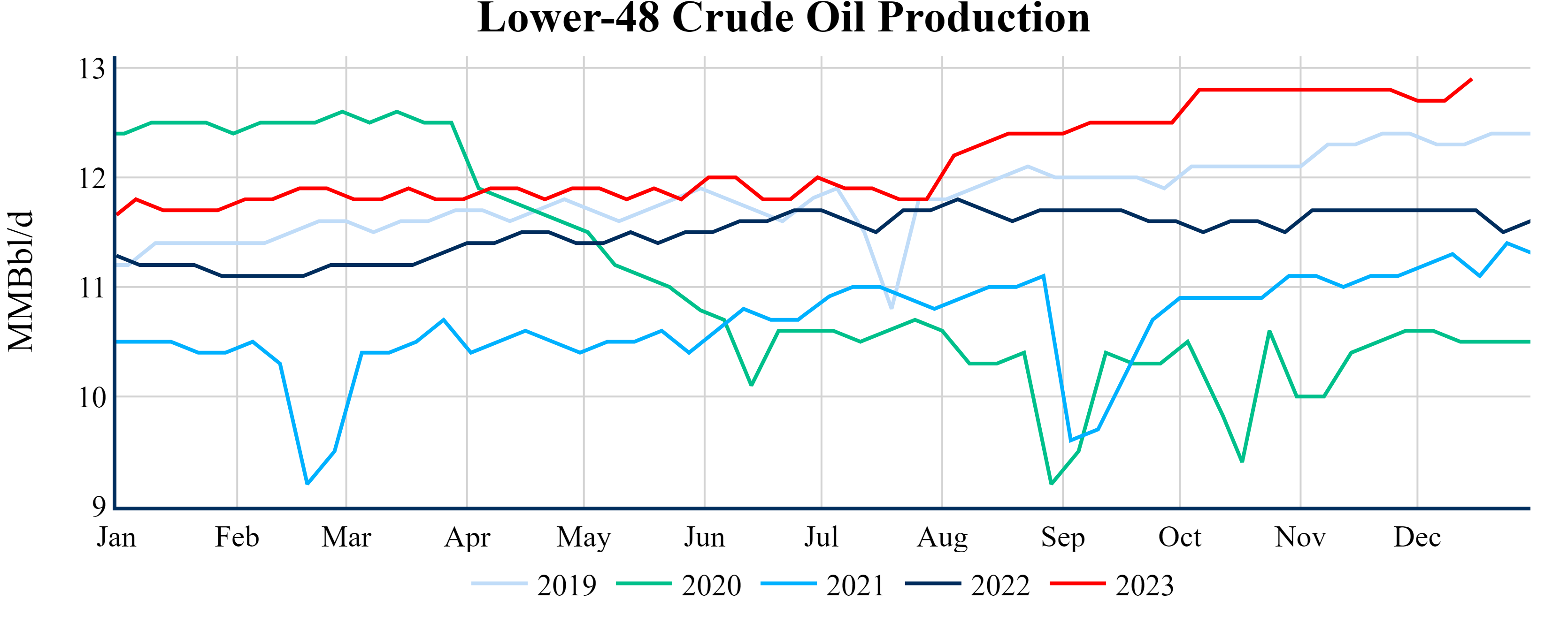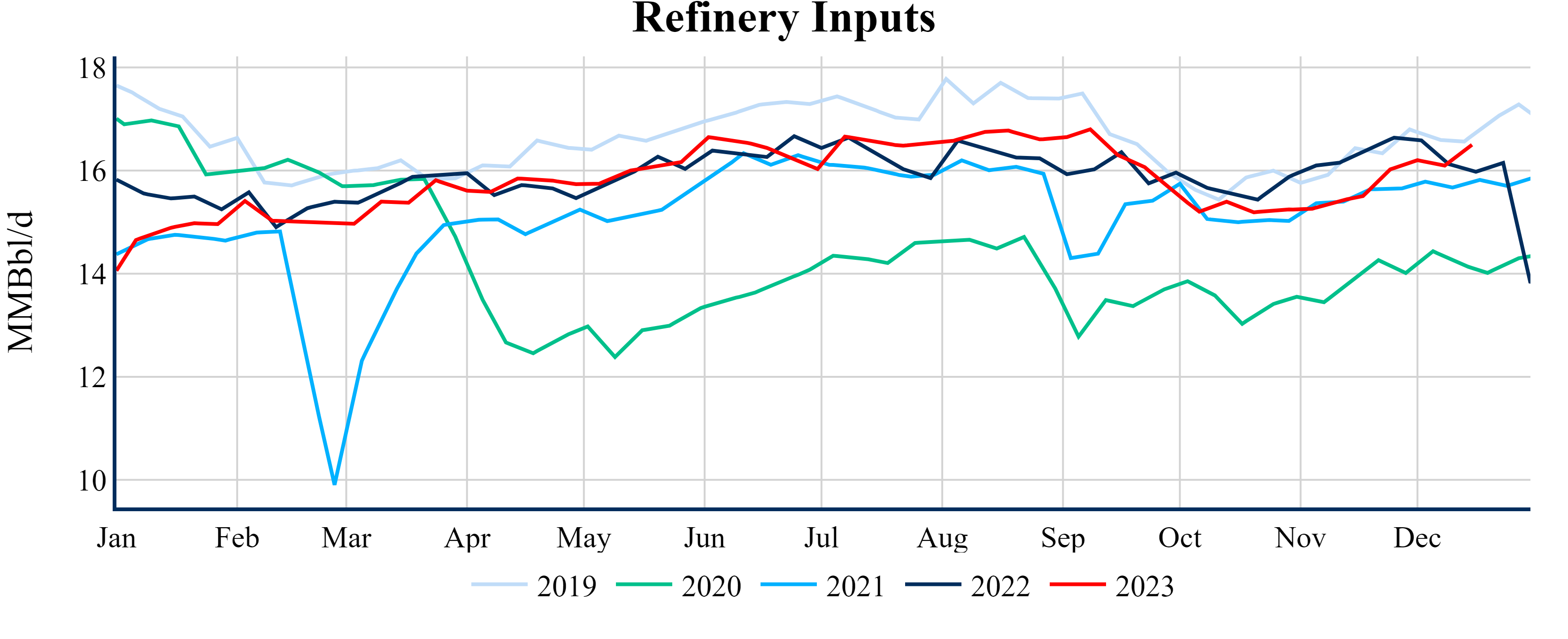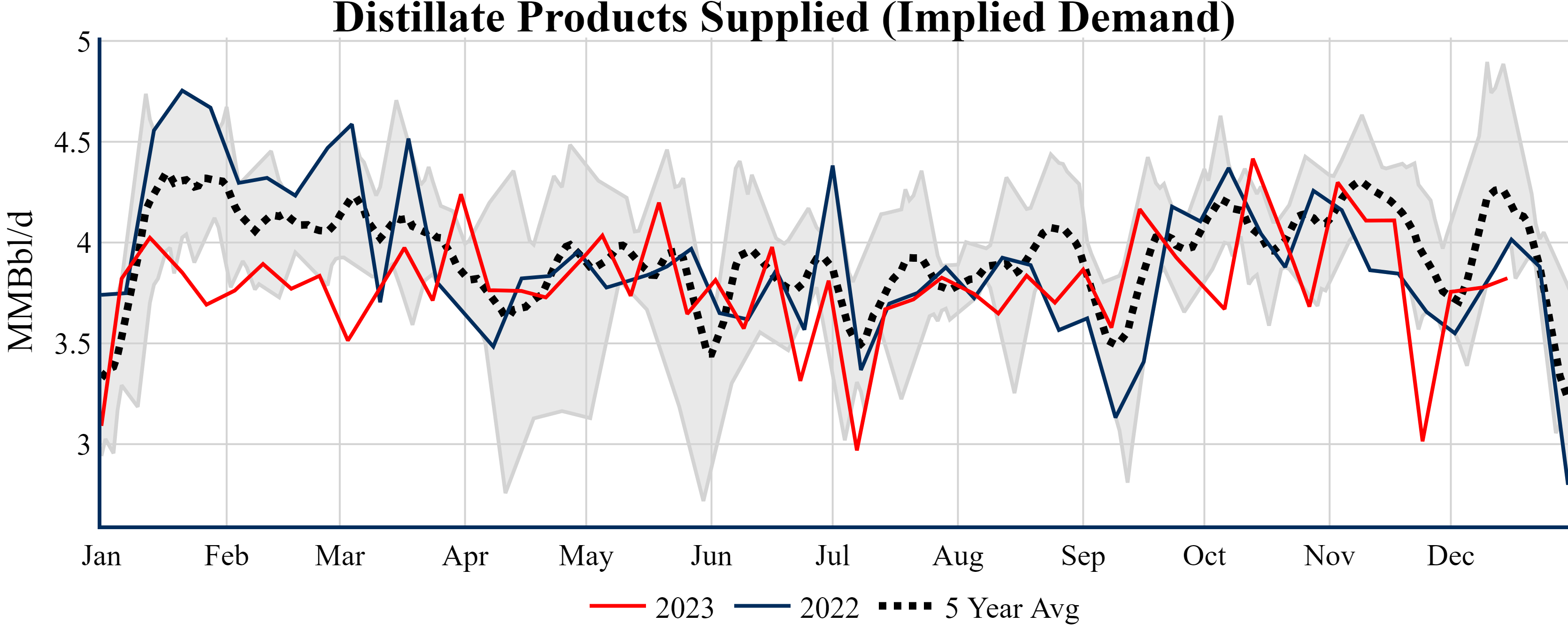 Inventories for the U.S. are now at a surplus of 24.60 MMBbls (5.9%) to last year, and a deficit of 2.40 MMBbls (-0.5%) to the five-year average.
