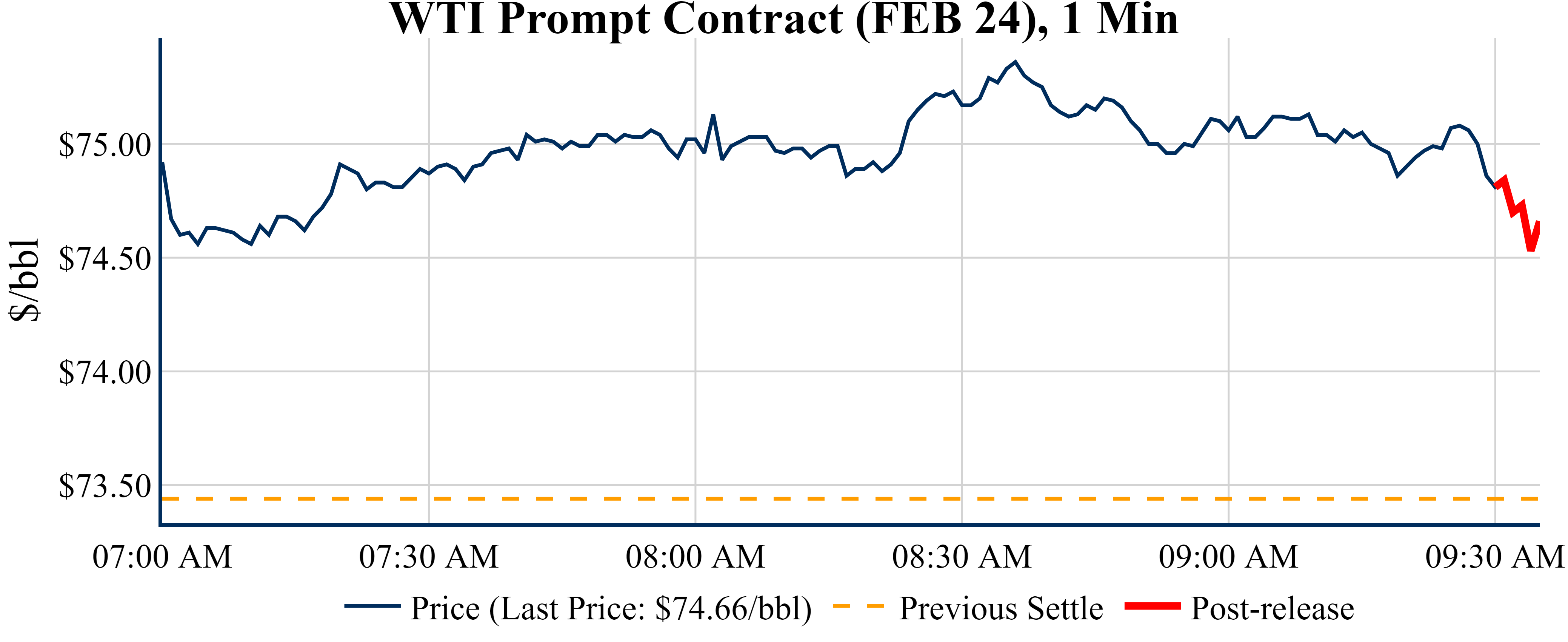 Prices were down in the five minutes following the announcement, to $74.66 from $74.81 just before 09:30 AM.
