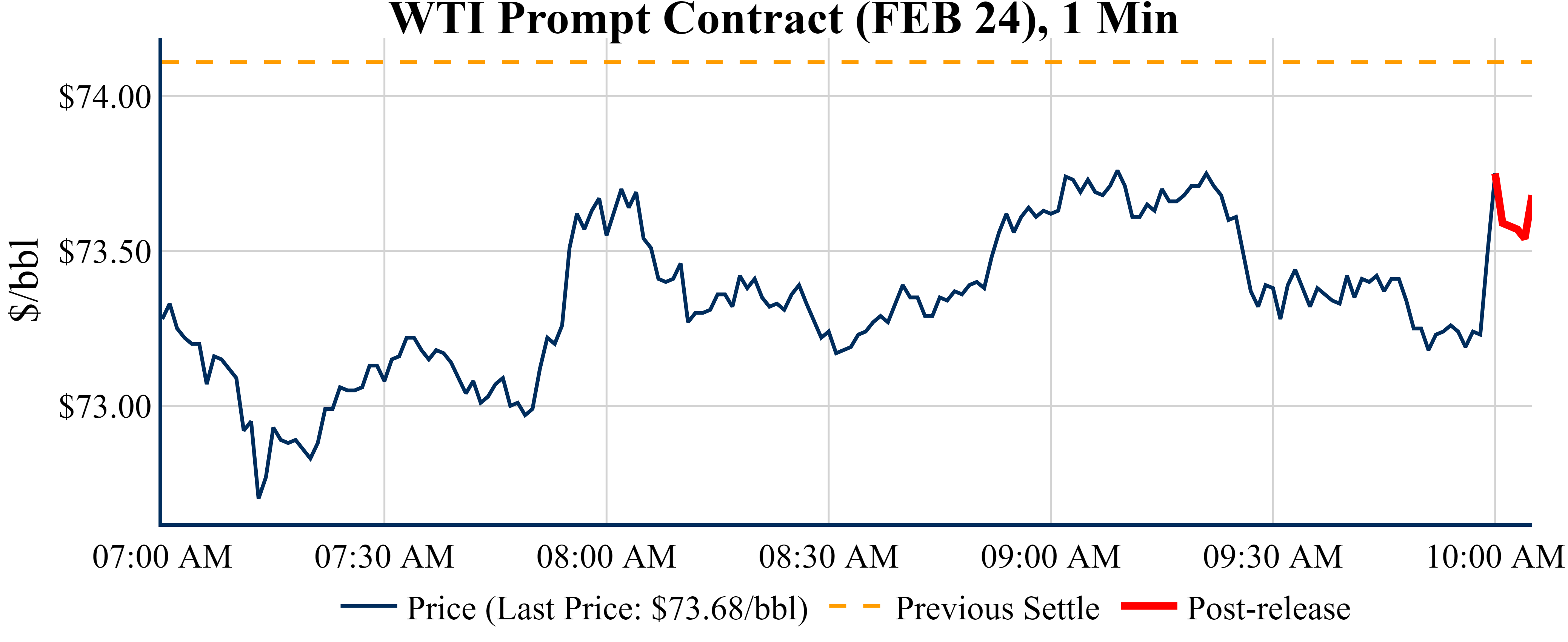 Prices were down in the five minutes following the announcement, to $73.68 from $73.75 just before 10:00 AM.