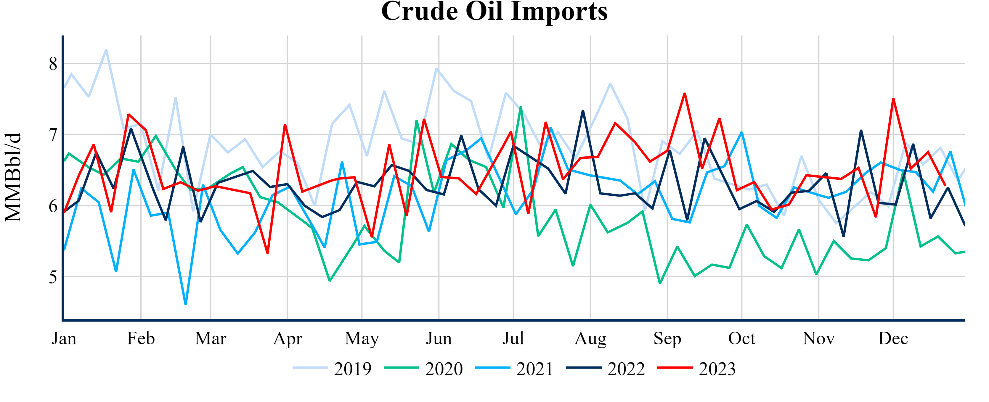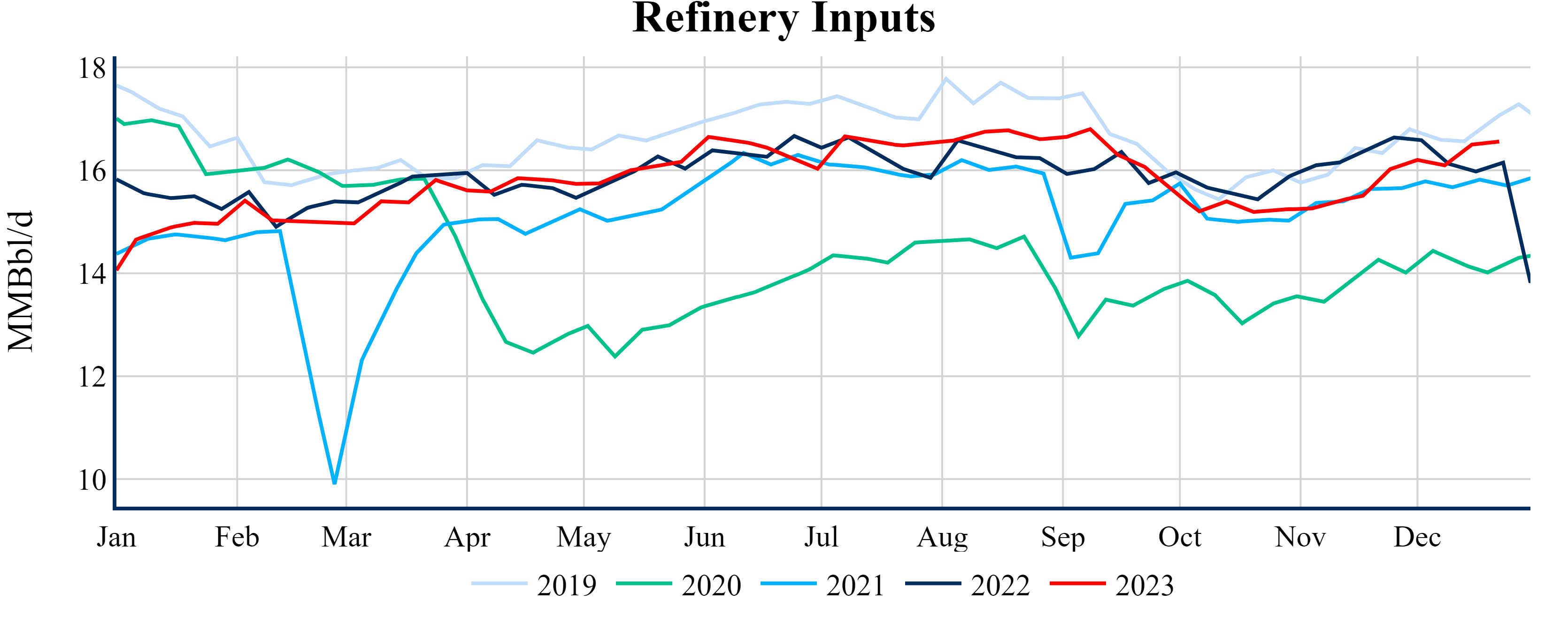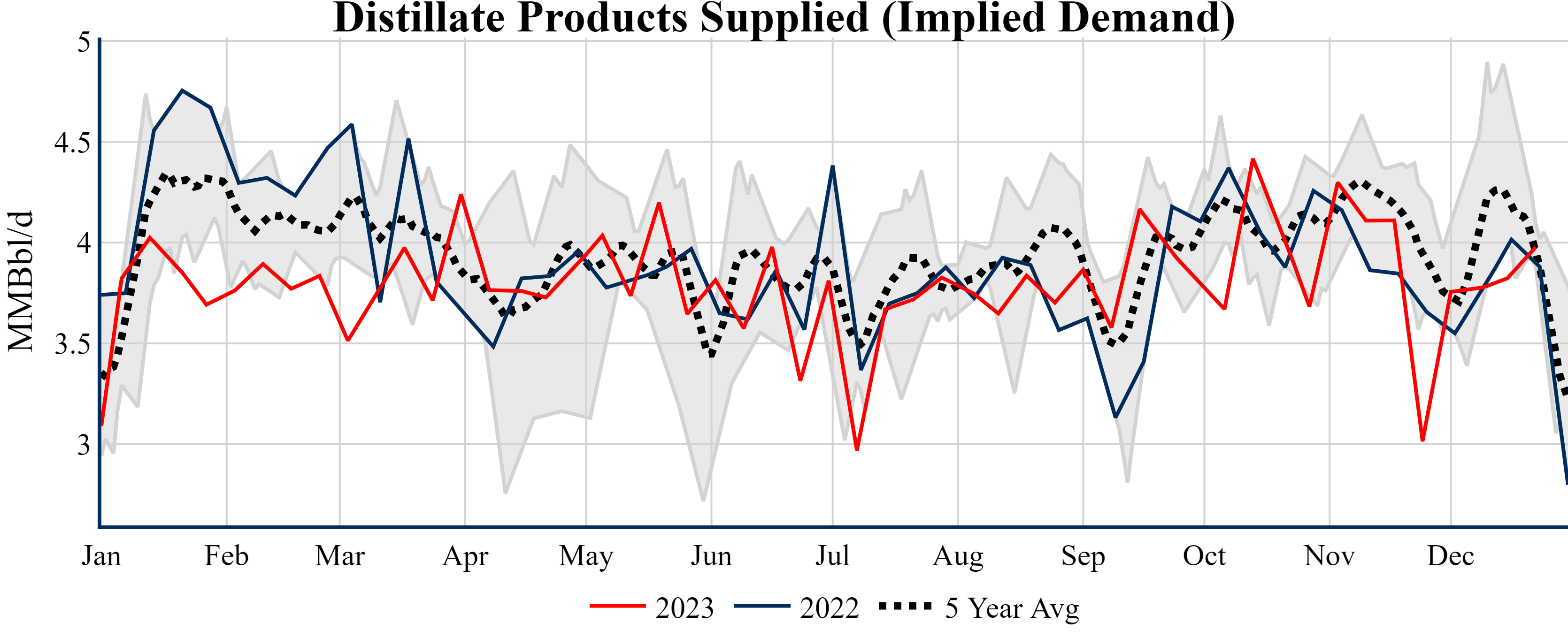 Inventories for the U.S. are now at a surplus of 17.70 MMBbls (4.2%) to last year, and a deficit of 6.70 MMBbls (-1.5%) to the five-year average.